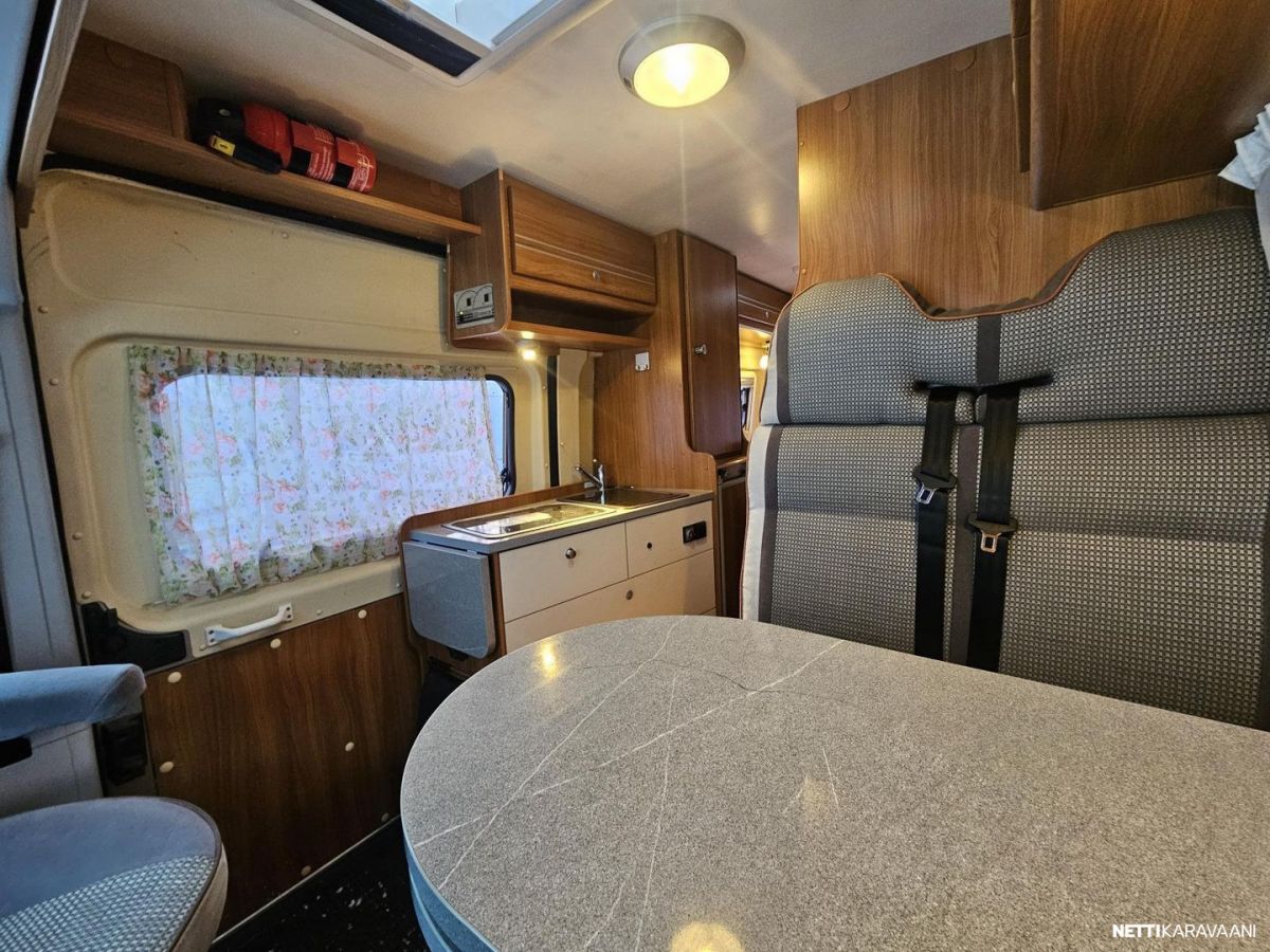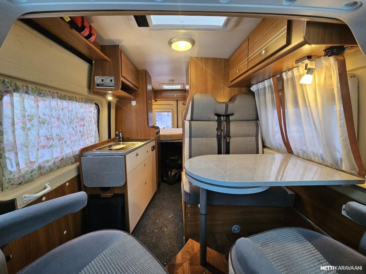 Ohjaustehostin, Sähkökäyttöiset ikkunat, Vetokoukku, Kahdet renkaat, Airbag, Huoltokirja, Käynnistyksenesto, Kattoluukku, Luistonesto, Polttoainekäyttöinen lisälämmitin, Sähköpeilit, Turbo, Trumatic, Kasetti WC, Suihku, Lämminvesiboileri, Markiisi, Liesi, Jääkaappi, Pakastelokero, Kasettiverhot, Sähkörappu, Pesuallas, Pysäköintikamera, Keskuslukitus: Kaukosäätöinen, Radio