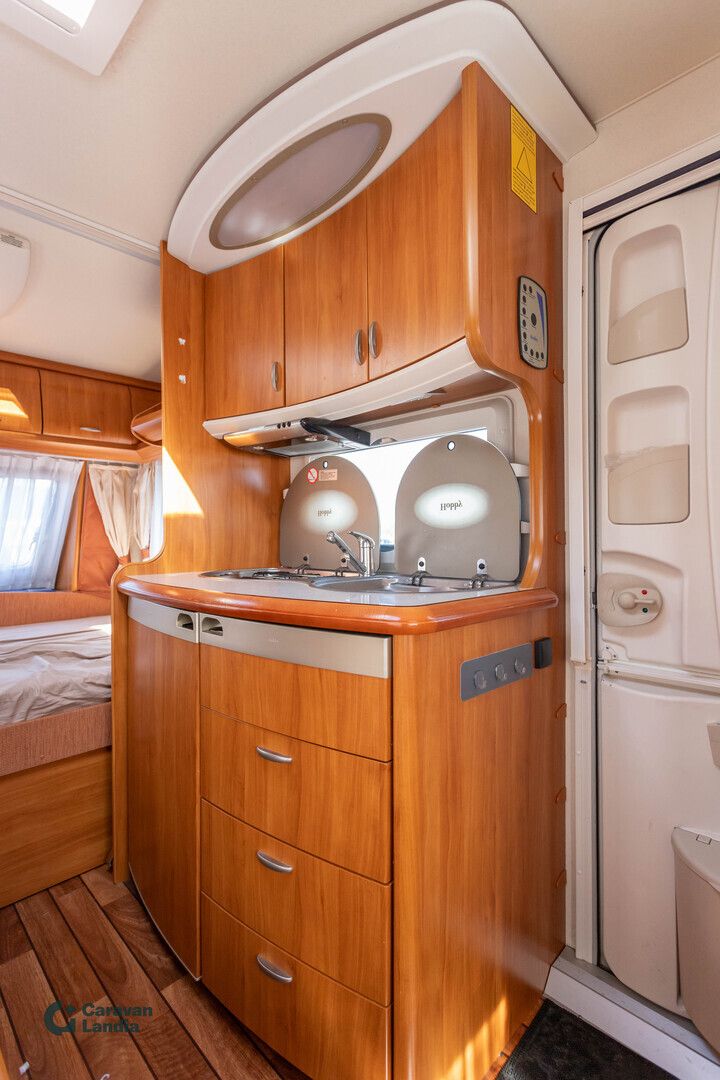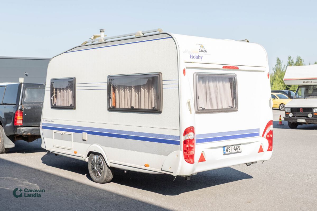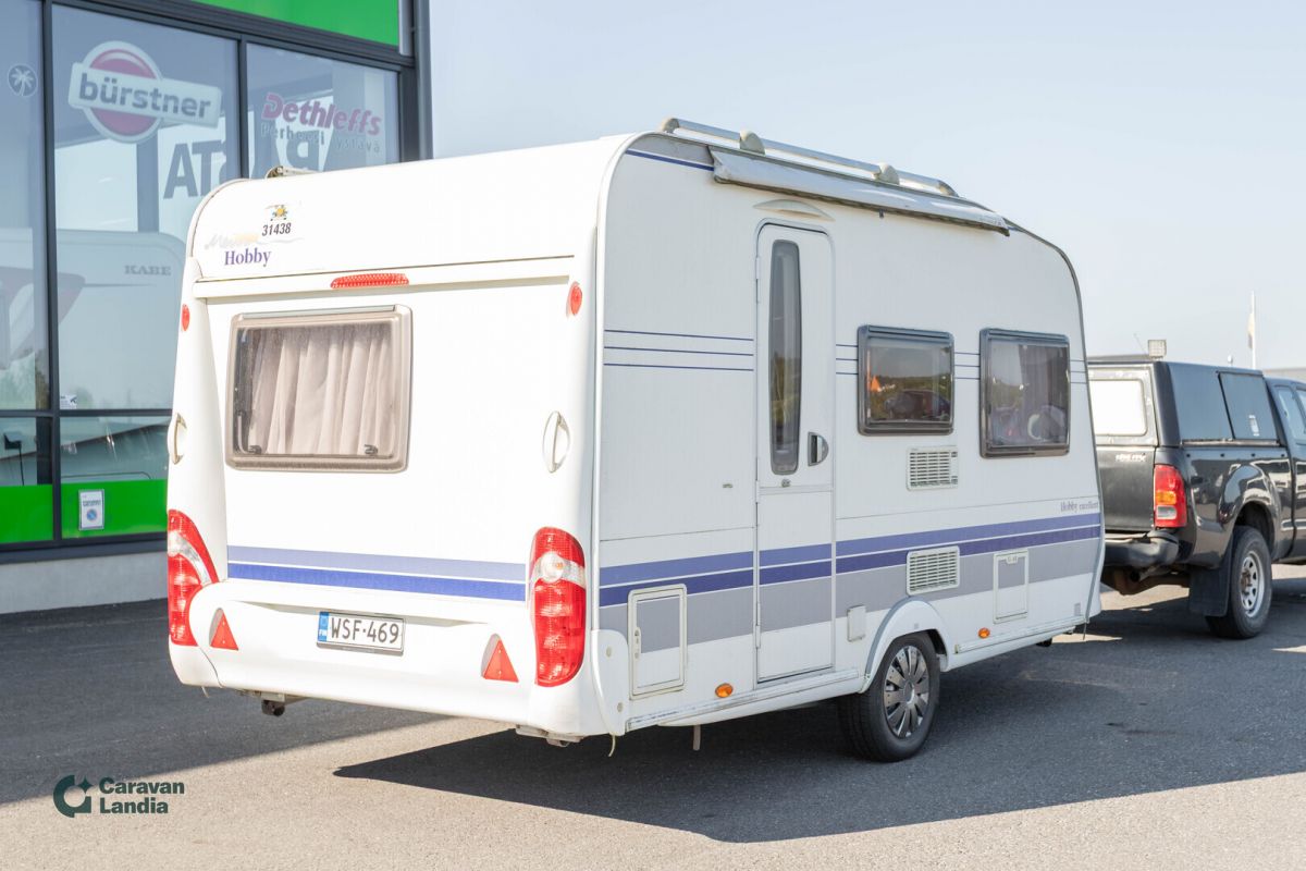 Näppärä ja kotoisa Hobbyn vaunu neljällä makuupaikalla. Markiisi Tukijalat Hyttysverkko ovi Kattoluukku Iso pöytäryhmä Keskuslämmitys Truma Sähköpatruuna Lämminvesiboileri kWh-mittari Liesituuletin Jääkaappi Pakastelokero Liesi Parivuode Kasetti WC Pesuallas Ota yhteyttä Jeremia Tokola 0504664593
