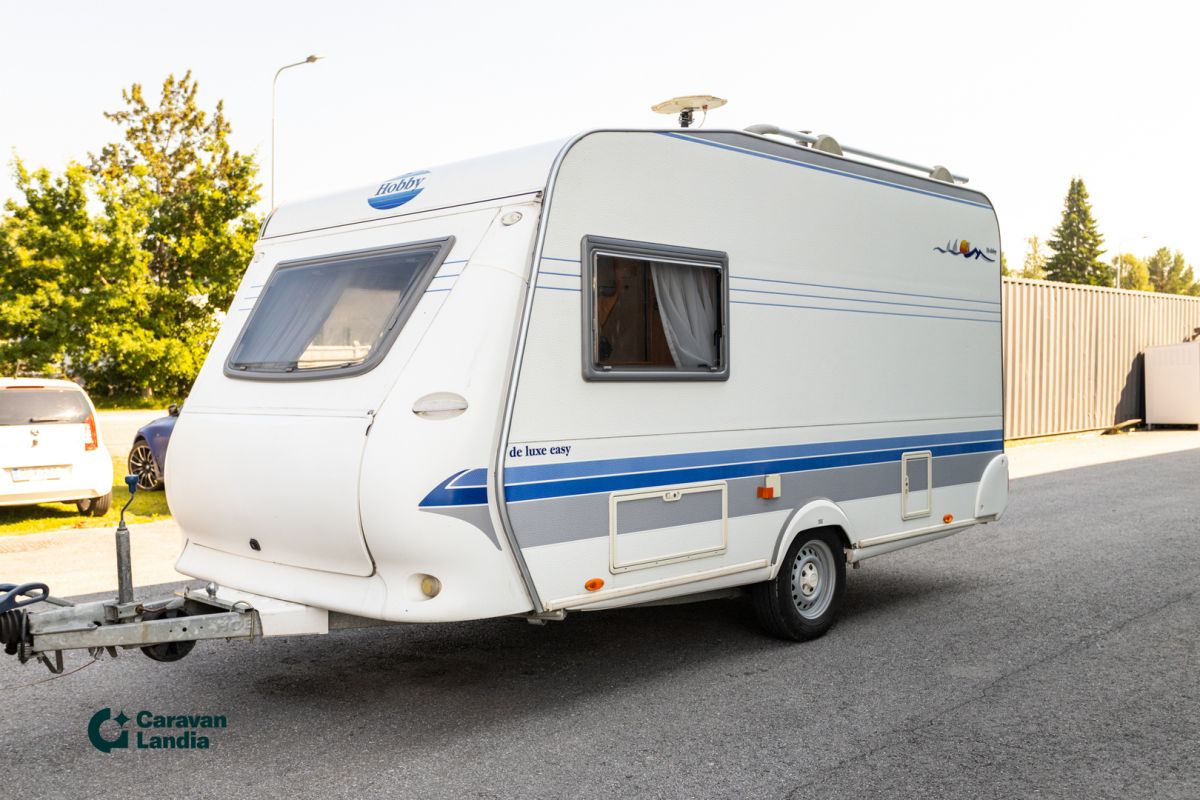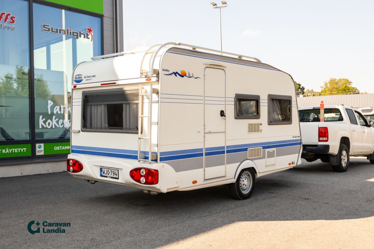 TÄHÄN AJONEUVOON KILPAILUKYKYINEN KORKO! - Hobby 400 KB De Luxe: Kompakti ja kätevä vaunu pieneen tarpeeseen kahdella istuinryhmällä! Tämä Hobby 400 KB De Luxe -malli on suunniteltu tarjoamaan toimivuutta ja kompakteja tilaratkaisuja. Se on hyvä valinta pienelle perheelle, joka arvostaa monipuolisuutta. Vaunussa on kaksi istuinryhmää, joista toinen on keulassa ja toinen perällä. Molemmat muuntuvat vuoteiksi. Näin ollen vaunussa on aina tilaa ruokailuun, vaikka toinen istuinryhmä olisi vuoteena. Keskellä vaunua on kätevä keittiö ja WC. Hobby 400 KB De Luxe on luotettava ja toimiva vaunu, joka sopii monenlaiseen käyttöön ja tarjoaa mukavat puitteet vapaa-ajan viettoon. Pariskunnille Retkeilijöille Tukijalat Vastakkainen istuinryhmä Iso pöytäryhmä Truma Sähköpatruuna Lämminvesiboileri kWh-mittari Sivukeittiö Jääkaappi Pakastelokero Lisävuode istuinryhmästä Kasetti WC Pesuallas TV-antenni tai lautasantenni