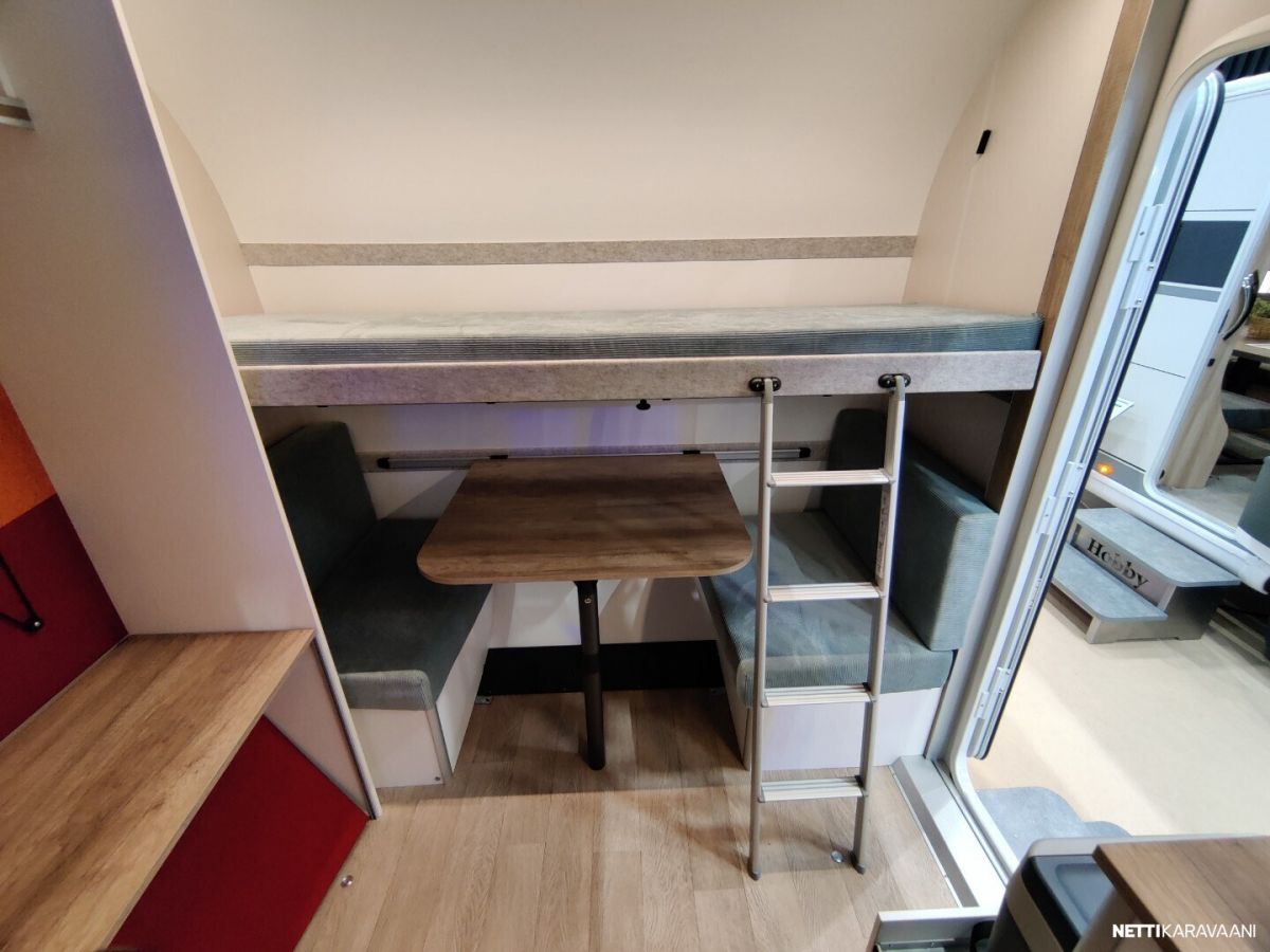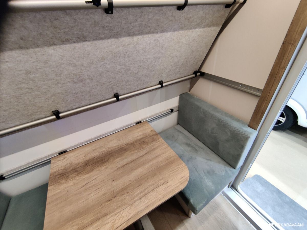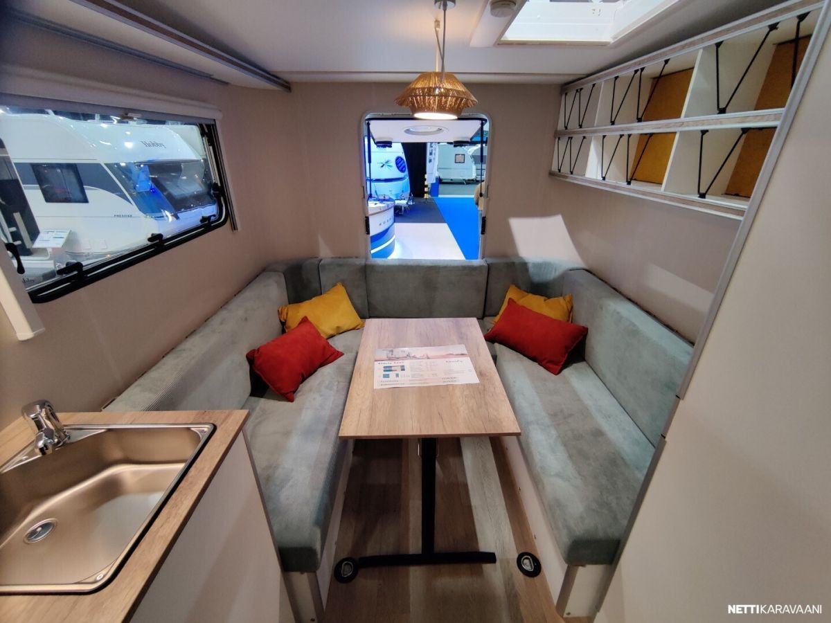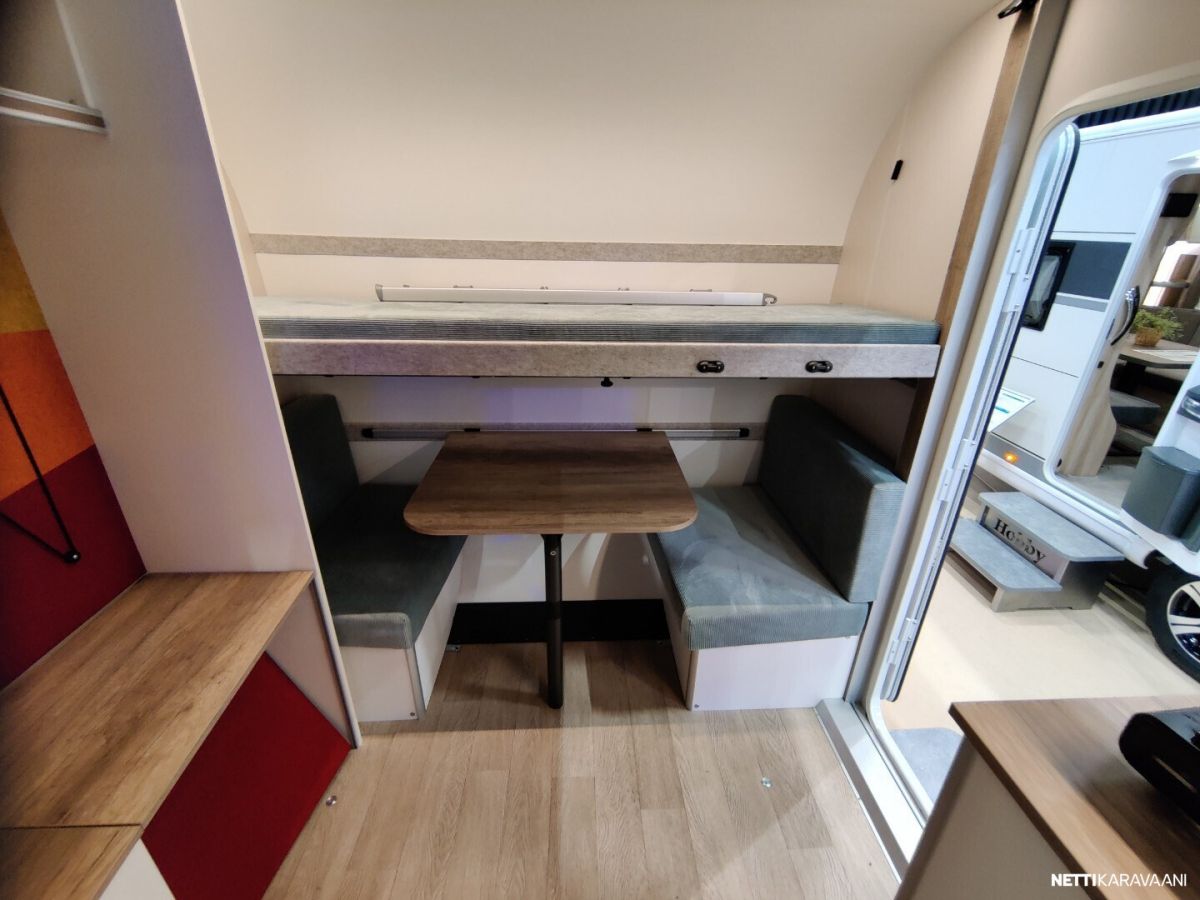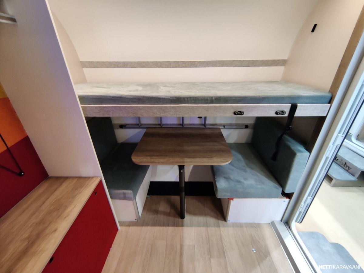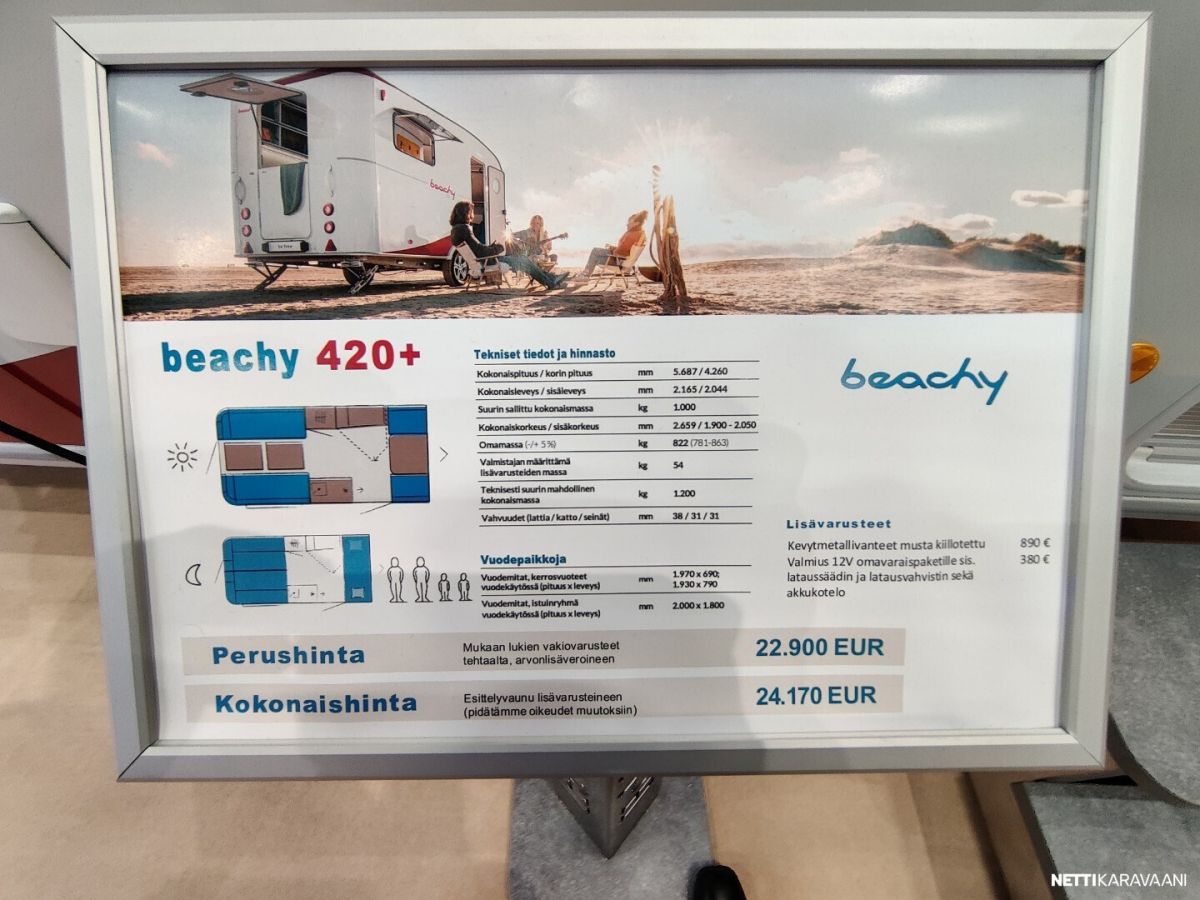 Uusi beachyn monikäyttöinen vaunu Vuoteet jopa 4 hlöä Etukerrosvuoteen saa käännettyä pois ja alla olevan sängyn pöytäryhmäksi Takaovesta saa isommankin tavaran sisään jopa polkupyörät tai surffilaudan Akku varustus Alumiini vanteet Kitkavetopää