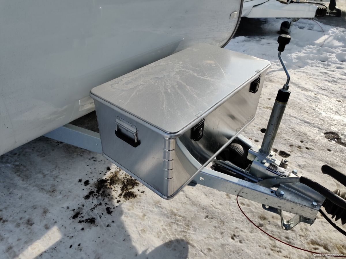 Aisasailytyskotelo alumiinia, DWt-etukatos, Eberchbächer diesel lämmitin, omavaraisuus akkupaketti, Kannettava WC thetford portapotti