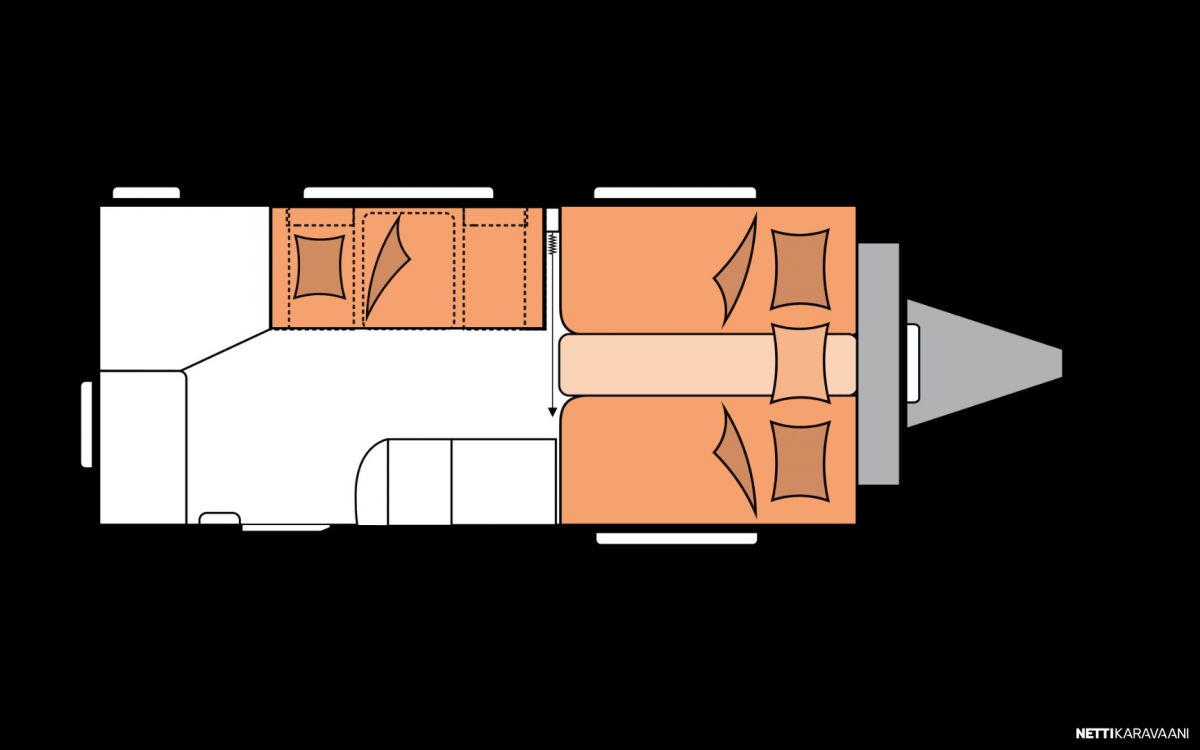 Tulossa meille 04/2026! Varusteina: Trumatic ilmakeskuslammitys kaasulla ja sähköllä Lämminvesi trumatic boiler 14 litraa Lattialämmitys Erillisvuoteiden yhdistämispaketti parivuoteeksi Vesipumppu katkasijalla Ohjauspaneeli kosketusnäytöllä Tupla USB pistoke Massa korotus 1400kg =>1500kg TV teline Liesituuletin Akku varustus Epäsuora lisävalaistus Voit myös itse vaikuttaa lisävarusteisiin