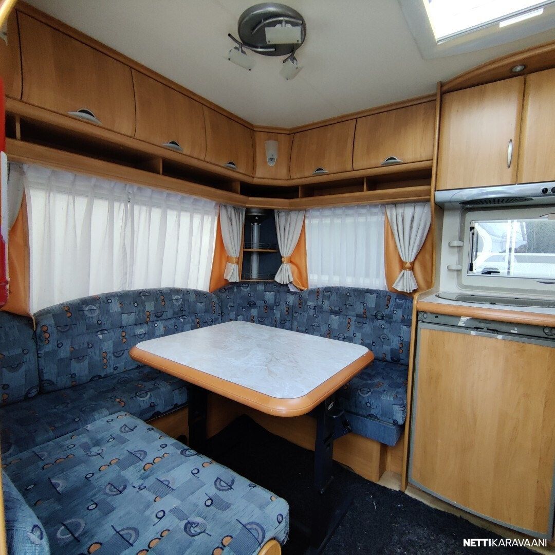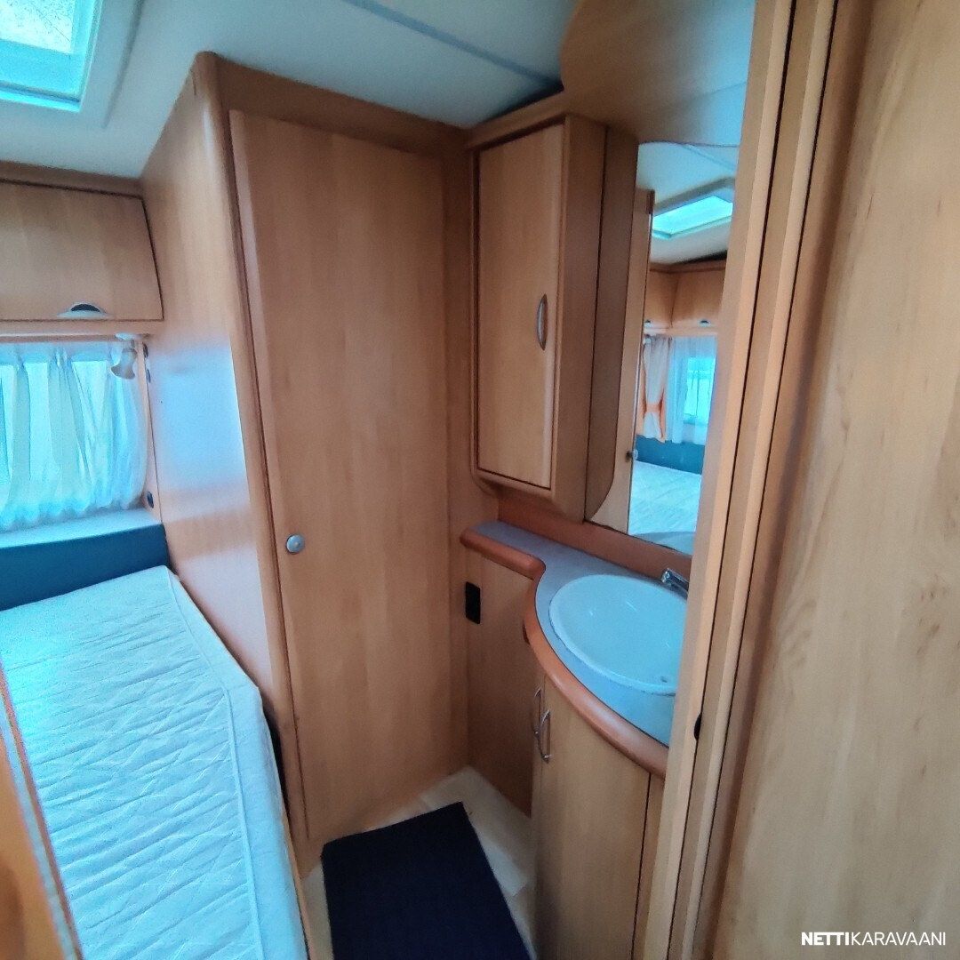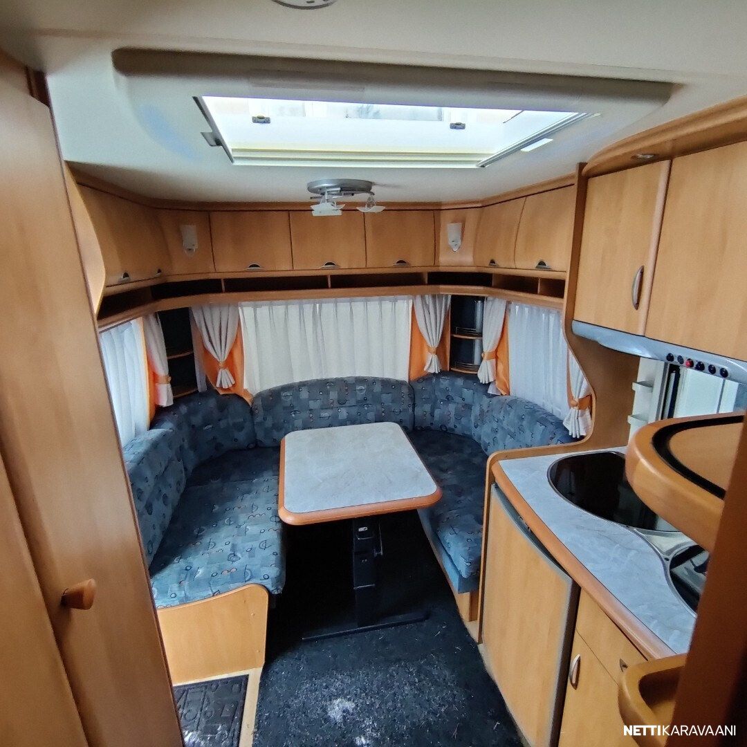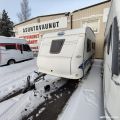 Kevyt vetää pienemmallakin autolla Trumatic ilmakeskuslammtys kaasulla Iso valoisa kattoluukku Akku ja laturi TV antenni vahvistimella Tavara luukku vuoteen alle Kitkavetopää Lämmin vesi Suihku Mikro Lattialämmitys Katto tikkaat ja kaiteet Katsastettu 12/2025 Seuraava katsastus 12/2027