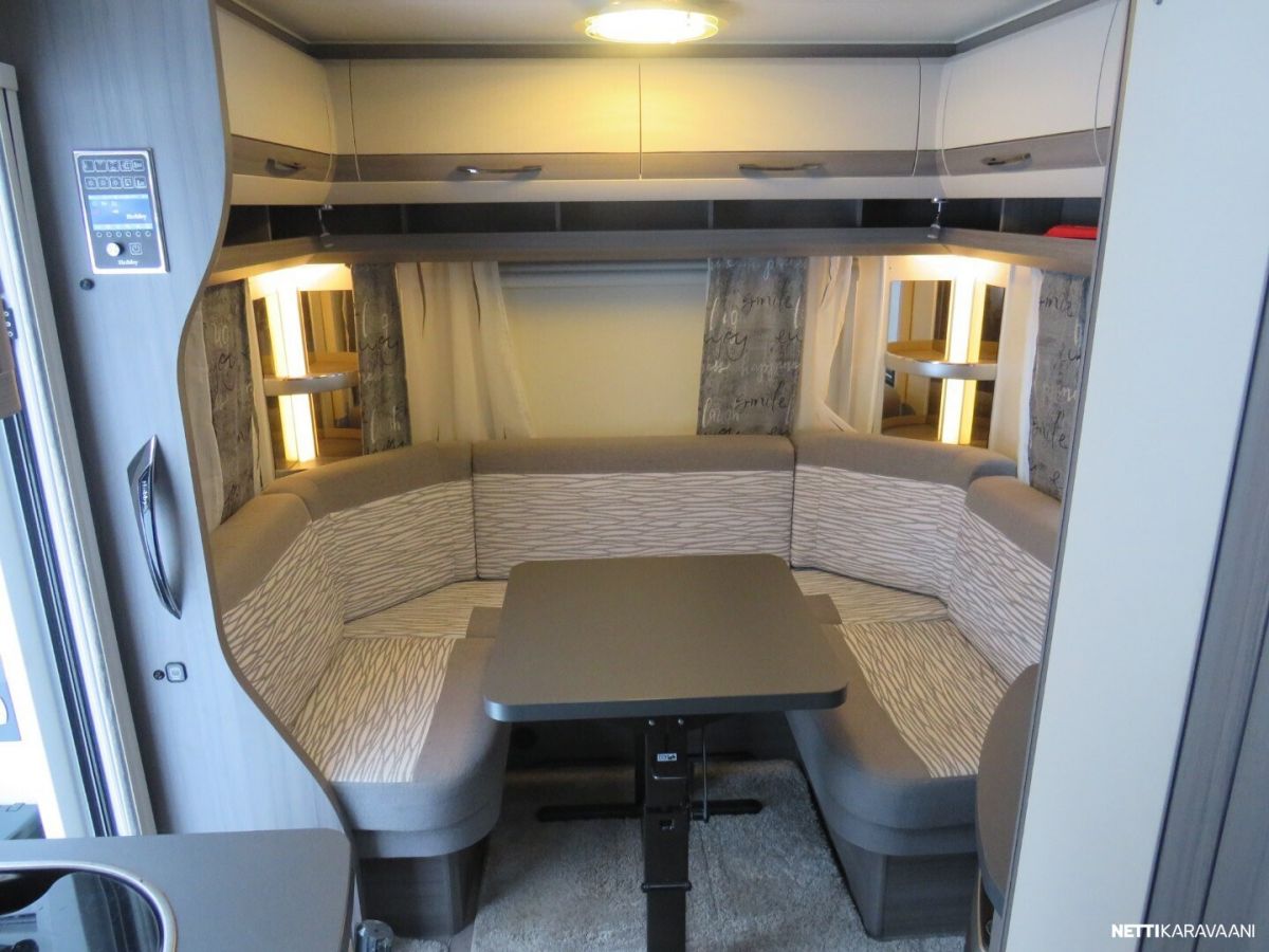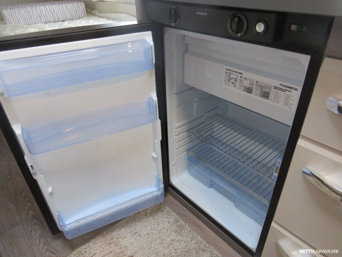 Jääkaappi, Kasetti WC, Kasettiverhot, Lattiamatot asunto-osassa, Liesi, Lämminvesiboileri, Pakastelokero, Pesuallas, Etuteltta, Kattoluukku, Lattialämmitys, Sähköpatruuna, Trumatic, Tukijalat