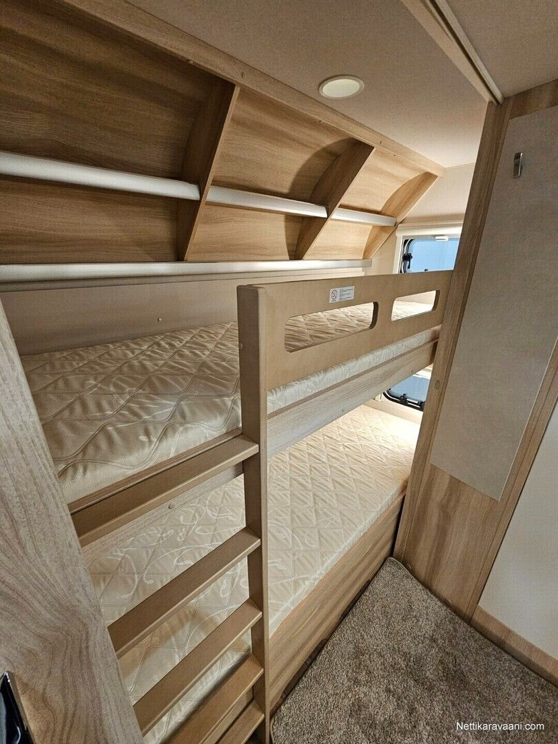 Erittäin tarkkaan harkittu pohjaratkaisu ja yksityiskohdat yhdistettynä vaaleaan designiin takaavat että kaikki ihastuvat tähän vaunuun joka tarjoaa täydellistä kodin tuntua.
