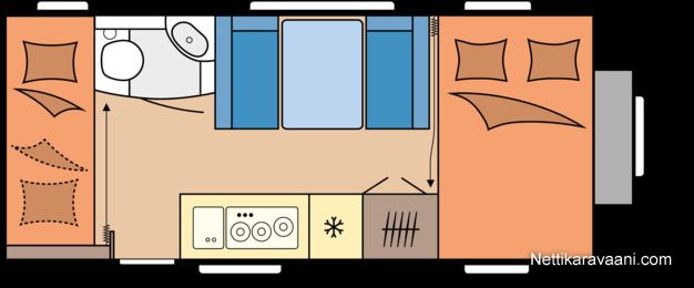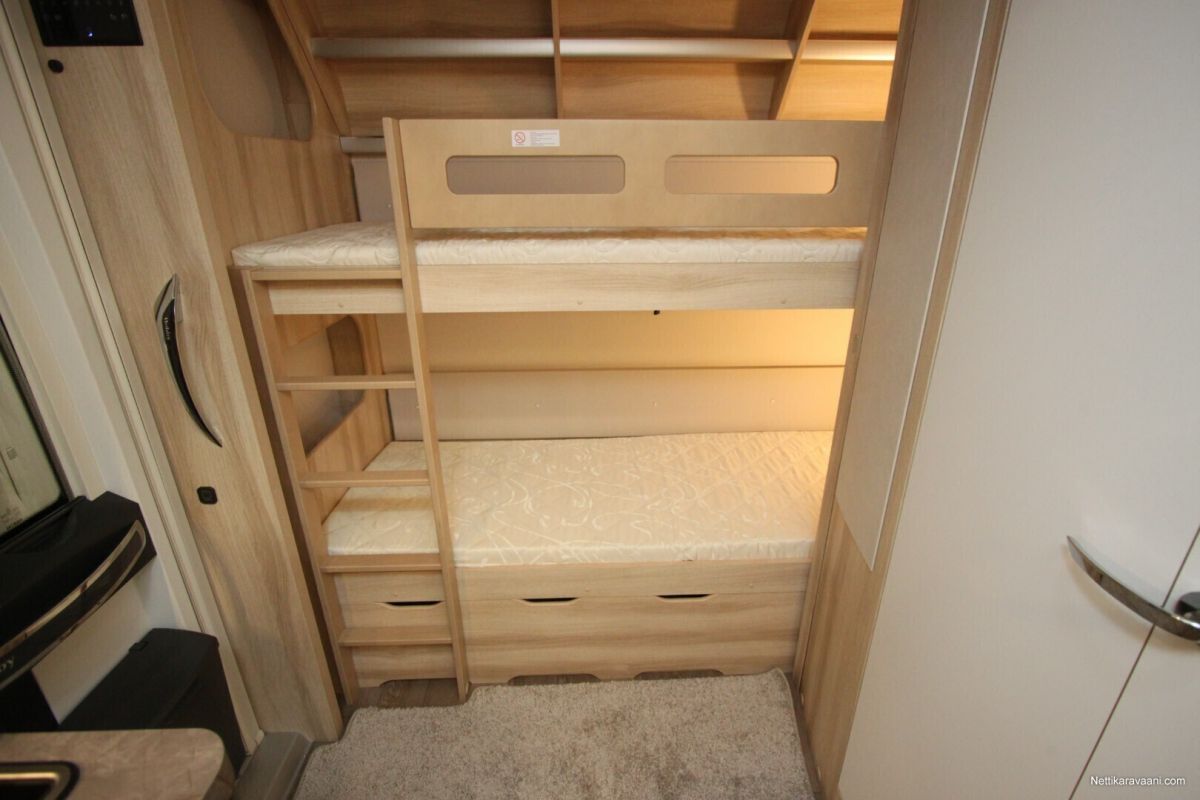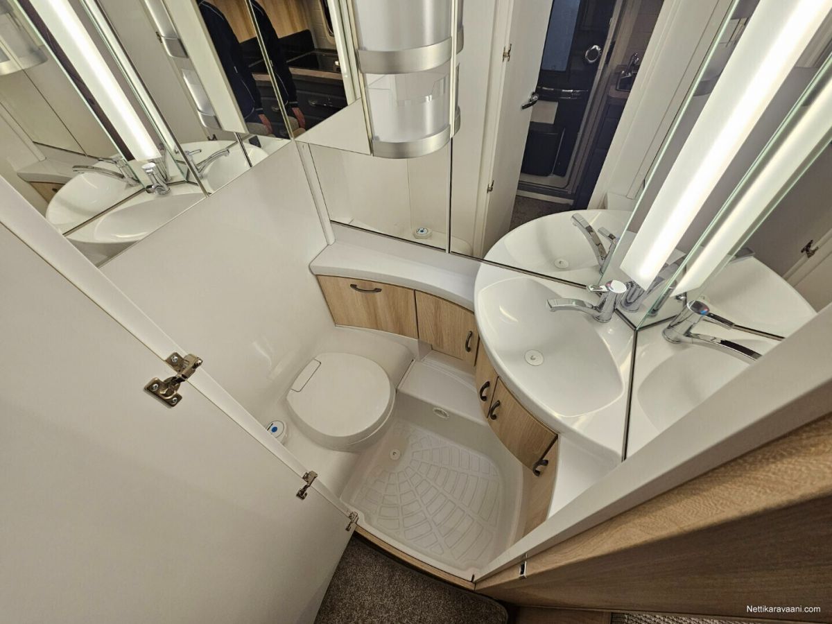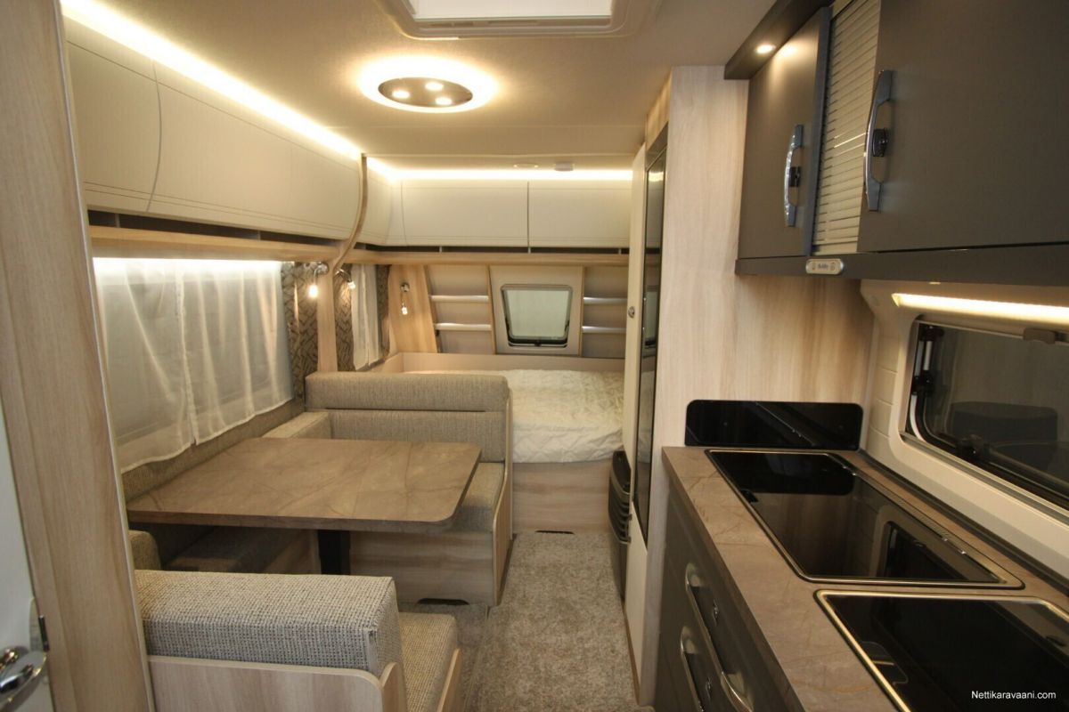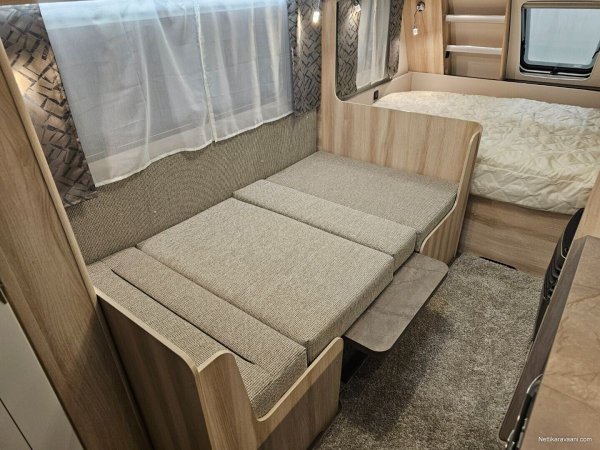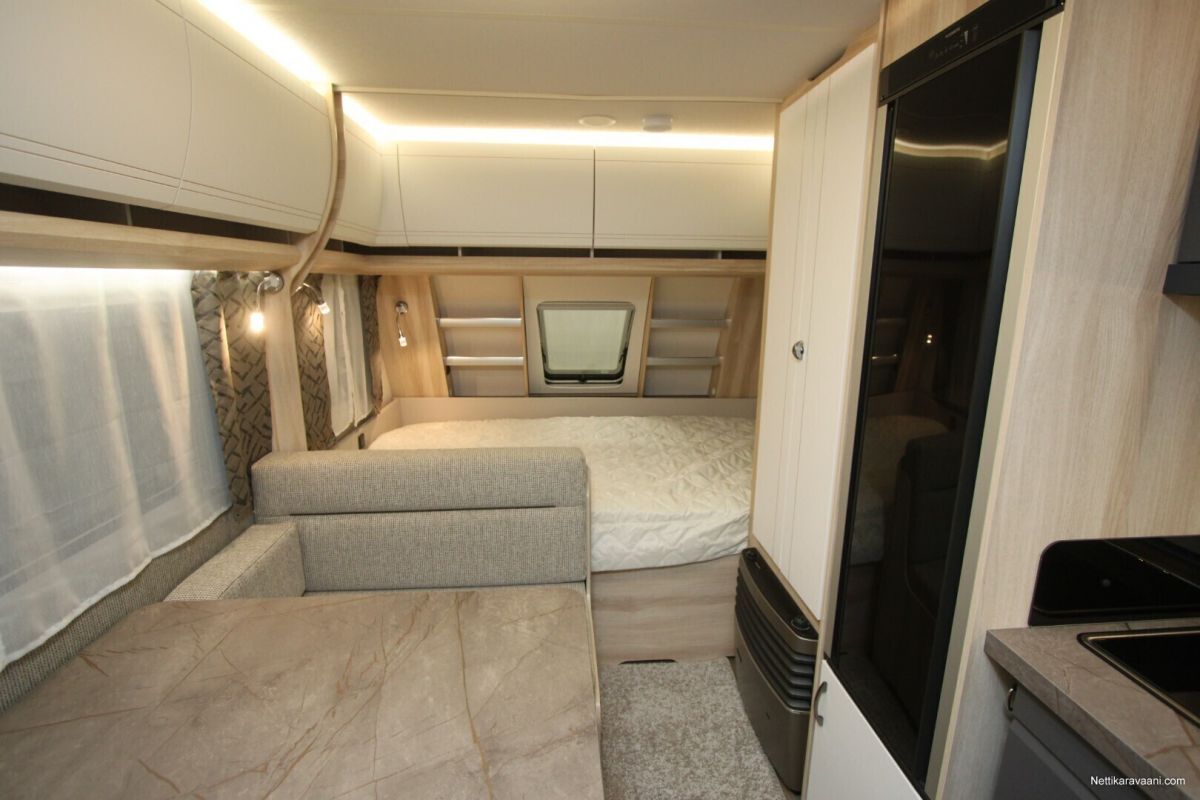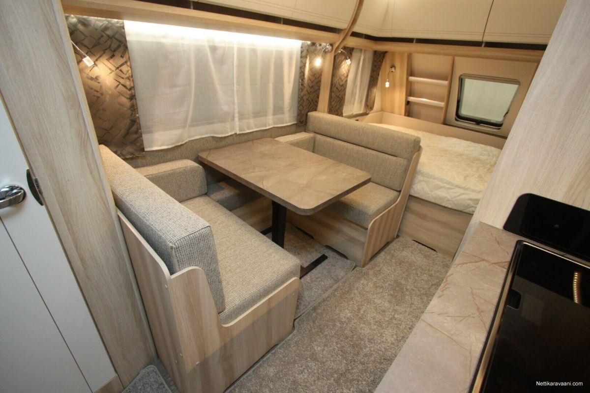 Erittäin tarkkaan harkittu pohjaratkaisu ja yksityiskohdat yhdistettynä vaaleaan designiin takaavat että kaikki ihastuvat tähän vaunuun joka tarjoaa täydellistä kodin tuntua.