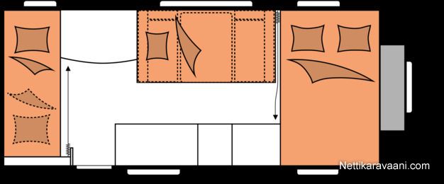 Unelmavaunu 4 hengen perheelle mutta tarvittaessa reissaamaan mahtuu jopa 5-6 henkeä!