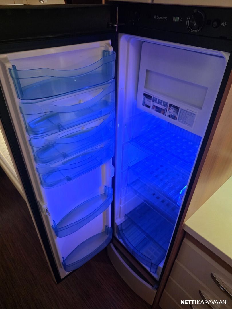 Kasetti WC, Kasettiverhot, Liesi, Pakastelokero, Kattoluukku, Lattialämmitys, Trumatic, Tukijalat, Jääkaappi, Lämminvesiboileri, Pesuallas