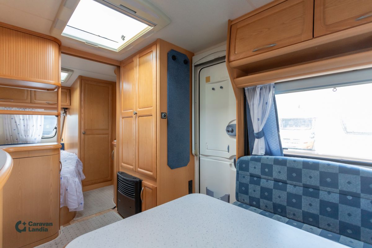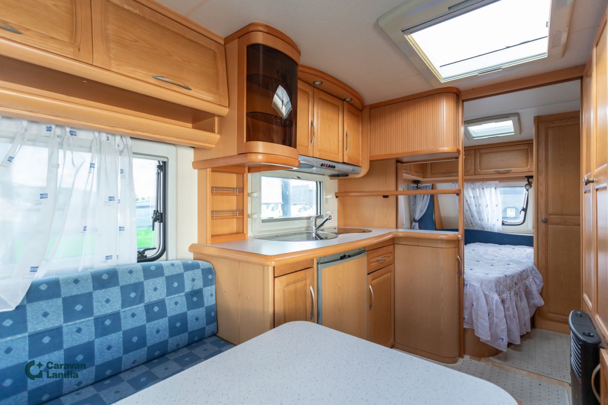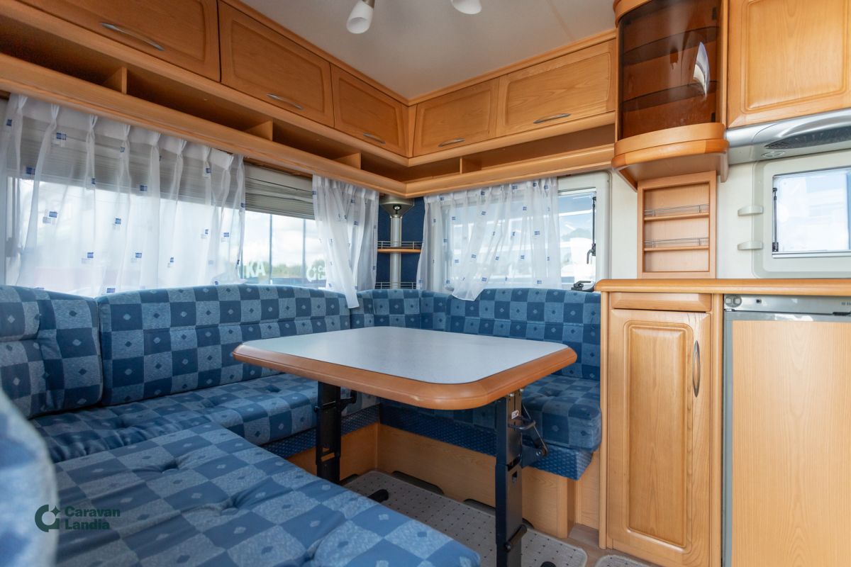TÄHÄN AJONEUVOON 1,99 % KORKOTARJOUS - Valoisa näppäränkokoinen vaunu Truma-lämmityksellä valmiina matkaan. Kattokaiteet/tikkaat Tukijalat Hyttysverkko ovi Kattoluukku Iso kattoikkuna Iso pöytäryhmä Keskuslämmitys Truma Sähköpatruuna Lämminvesiboileri kWh-mittari Liesituuletin Jääkaappi Pakastelokero Liesi Lattiamatot asunto-osassa Parivuode pitkittäin Kasetti WC Pesuallas Suihku
