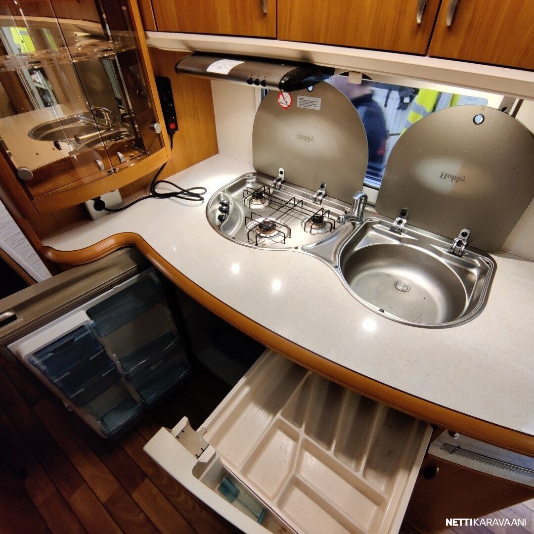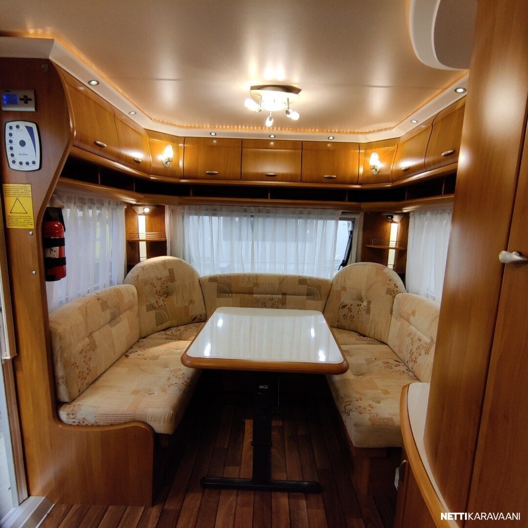 Siisti hyvin varusteltu vaunu Alden nestekeskuslämmitys kaasulla ja sähköllä Lämmin vesi Mower vaunun siirtojarjestelma Pussimarkiisi Kaasu uuni Erilliset vuoteet muuttuvat tarvittaessa isoksi parivuoteeksi Akku ja laturi kWh mittari Tv antenni Sähkön ulosotto Kitkavetopää