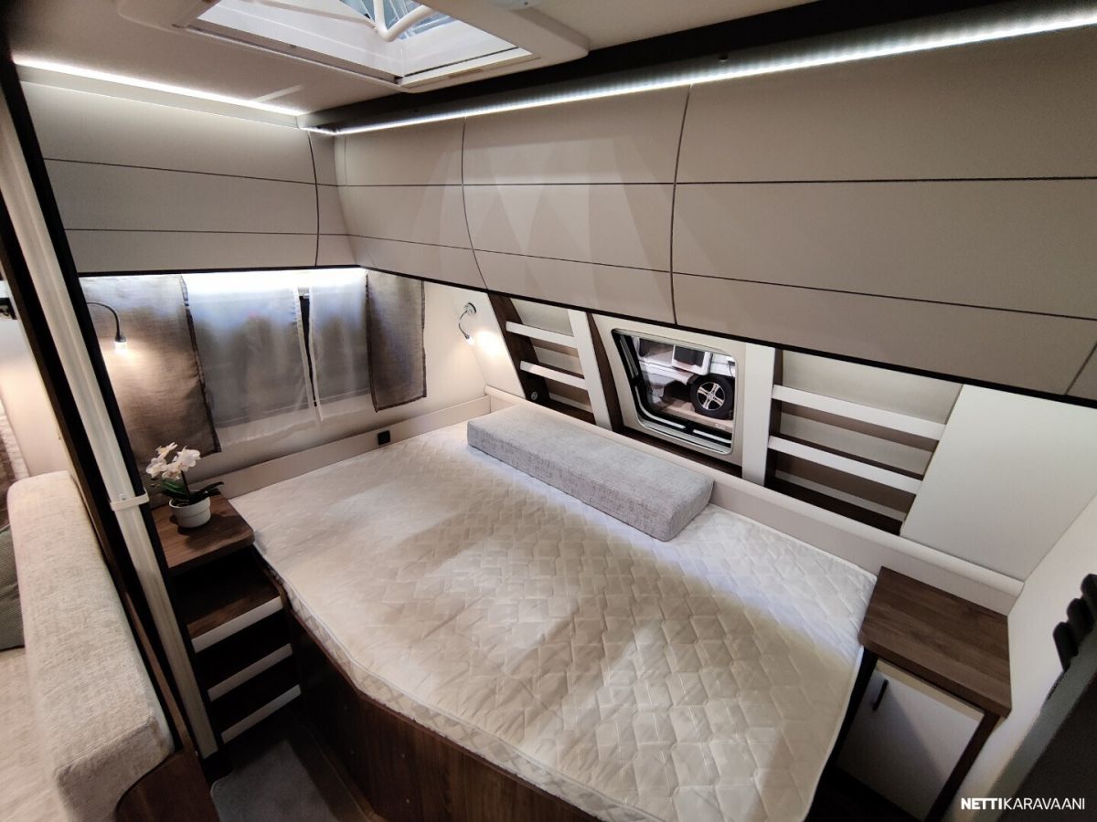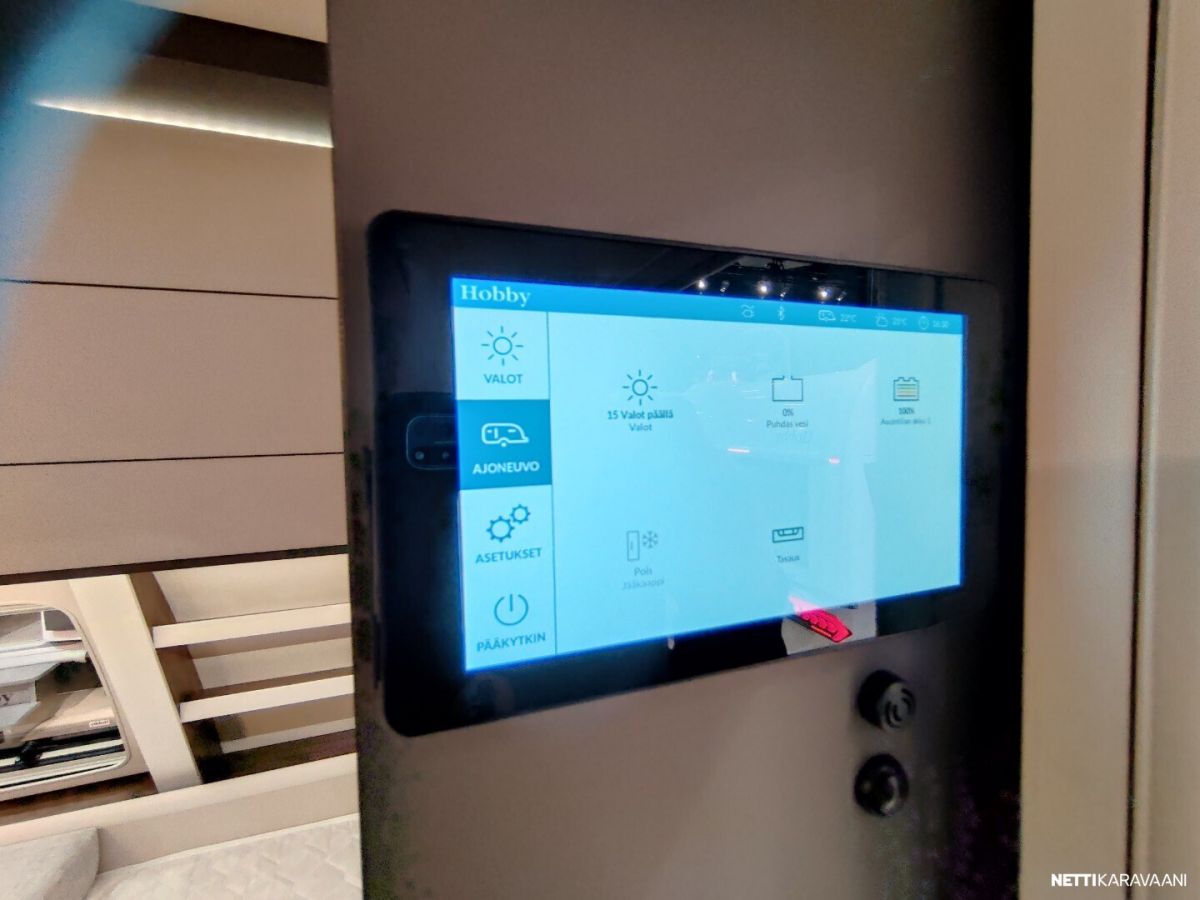 Upea Hobby 2026 Alden nestekeskuslämmitys kaasulla ja sähköllä Lattialämmitys Mattosarja Kaasu uuni Korkea jääkaappi Tilava kylpyhuone erillisellä suihku kopilla Lämmin vesi Valojen ohjaus uudella kosketusnäytöllä Akku ja laturi Mattosarja