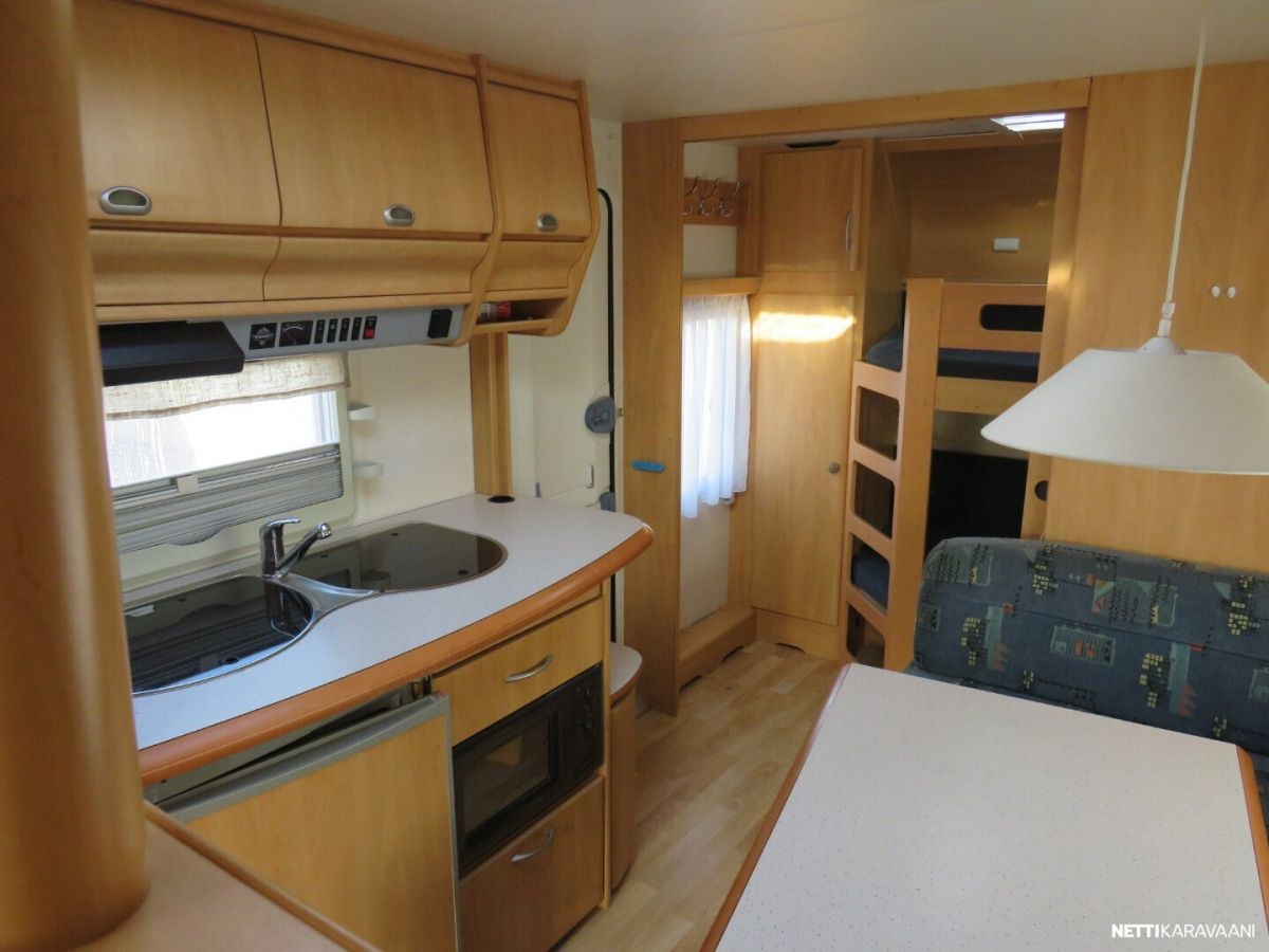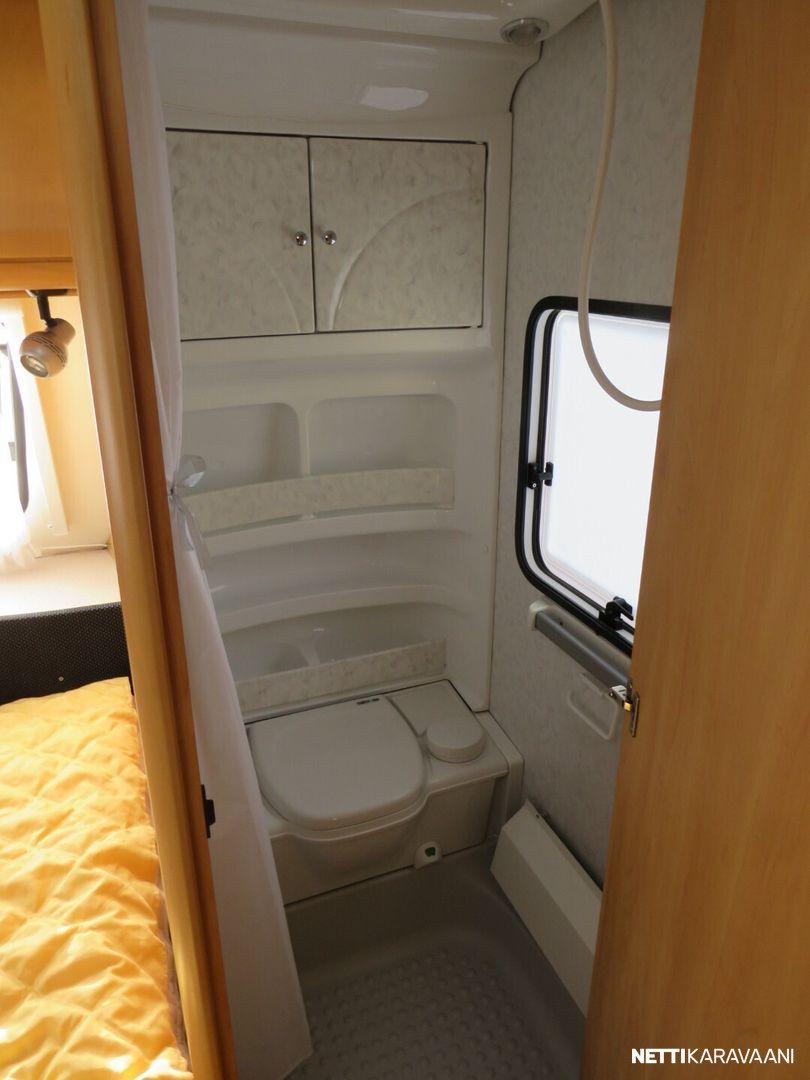 Jääkaappi, Kasetti WC, Liesi, Lämminvesiboileri, Pakastelokero, Pesuallas, TV-antenni tai lautasantenni, Alde, Kattokaiteet/tikkaat, Kattoluukku, Lattialämmitys, Pyöräteline, Sähköpatruuna, Tukijalat