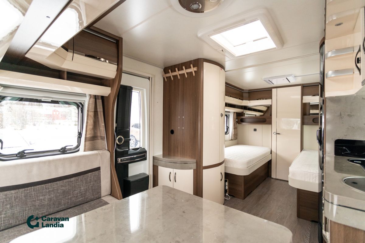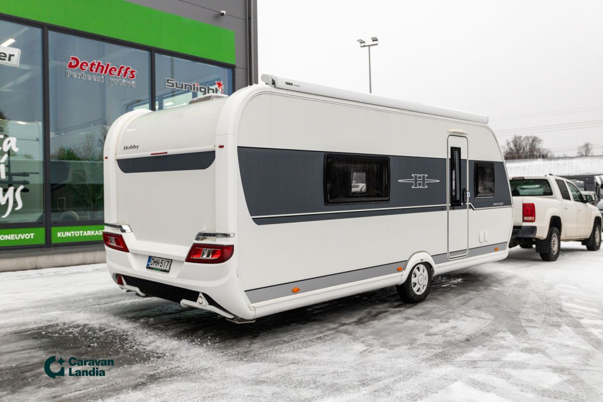 Tyyliä ja mukavuutta matkantekoon! Nauti avarasta tunnelmasta ja ensiluokkaisesta varustelusta. Tämä vaunu on tehty laadukkaaseen vapaa-aikaan! Hobby 560 WLU Prestige tarjoaa luksusta takakylpyhuoneella ja erillisvuoteilla. Mukavuuden kruunaavat ALDE-lämmitys ja ilmastointi. Tilaa jopa neljälle – täydellinen vaunu vaativaan makuun! KORIN VARUSTEET: Aurinkopaneeli (100-150W) Markiisi Tukijalat POHJARATKAISU: Kylpyhuone takana poikittain Erillisvuoteet Kasetti WC Pesuallas Suihku Sivukeittiö U-istuinryhmä Lisävuode istuinryhmästä LÄMMITYSJÄRJESTELMÄ: Nestekiertolämmitys ALDE Sähköpatruuna Lämminvesiboileri ASUINOSAN VARUSTEET: Iso kattoikkuna Liesituuletin Iso-jääkaappi Pakastelokero Kaasuliesi Ilmastointi asunto-osassa Invertteri (1500W) LED-sisävalaistus TV-antenni tai lautasantenni Lattiamatot asunto-osassa Kasettiverhot Hyttysverkko ovi Korkea vaatekaappi Meiltä voit ostaa etänä vaikka kotisohvaltasi! Kokeile kuinka helppoa ja vaivatonta matkailuajoneuvon ostaminen on.