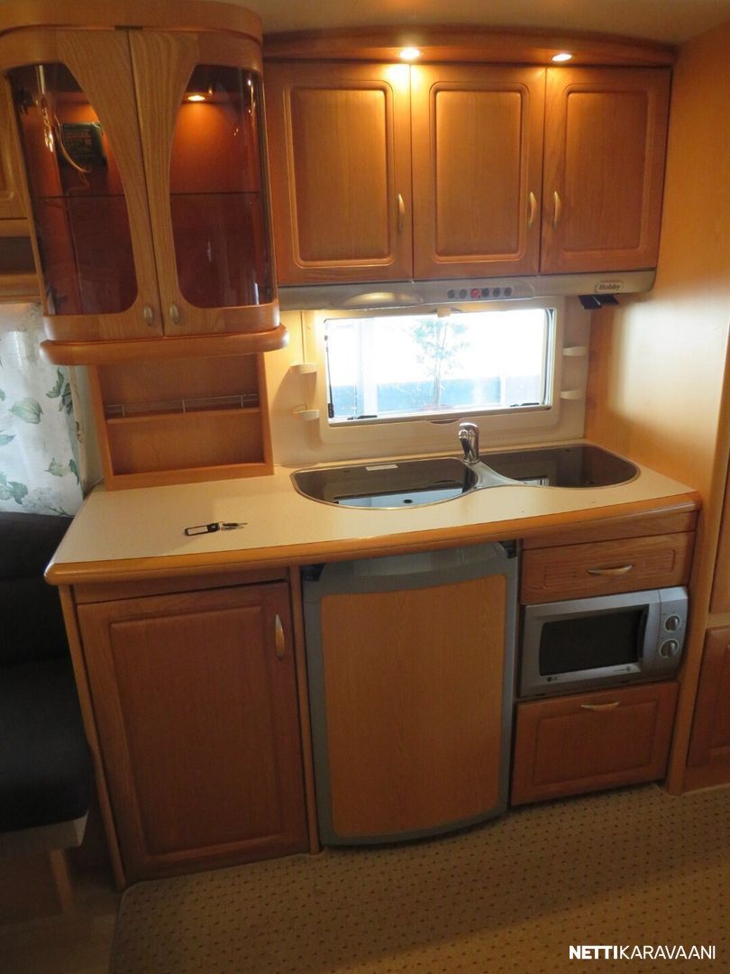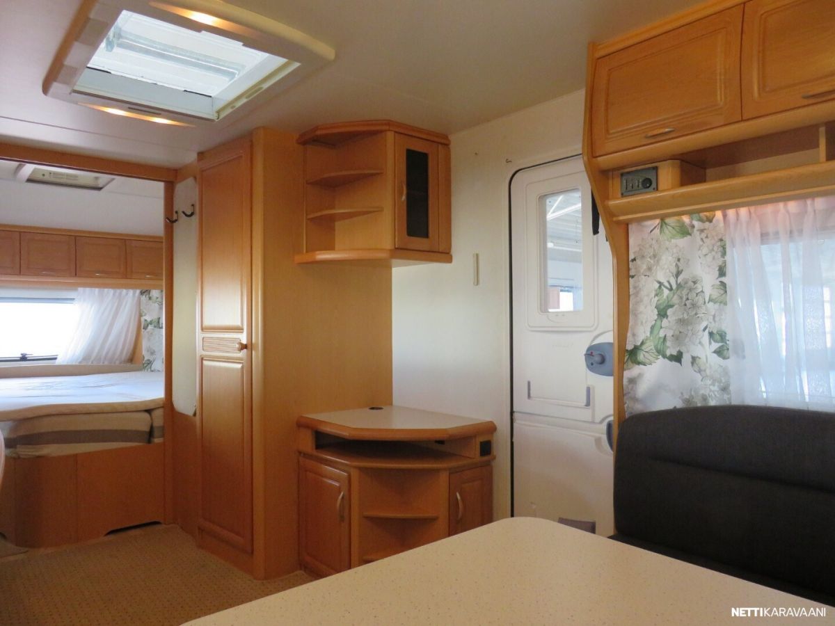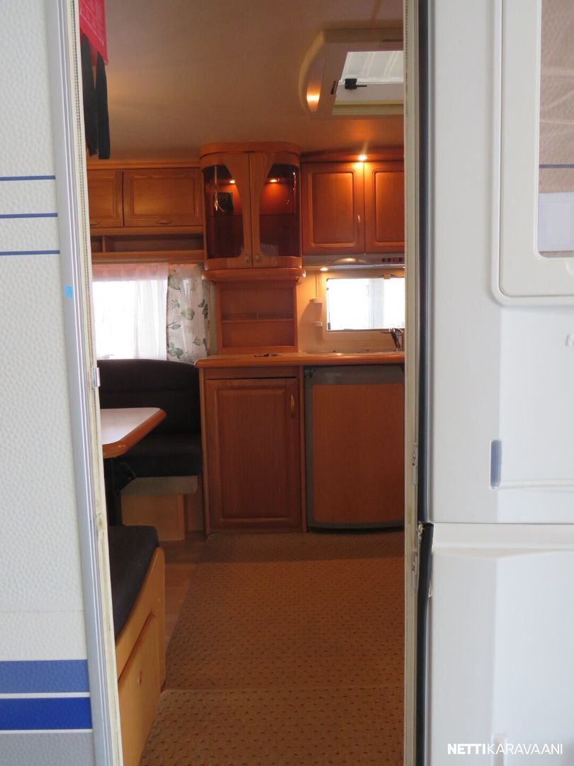 Jääkaappi, Kasetti WC, Kasettiverhot, Liesi, Lämminvesiboileri, Mikroaaltouuni, Pakastelokero, Pesuallas, Alde, Aurinkopaneeli, Kattoluukku, Lattialämmitys, Sähköpatruuna, Tukijalat