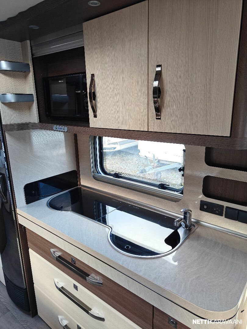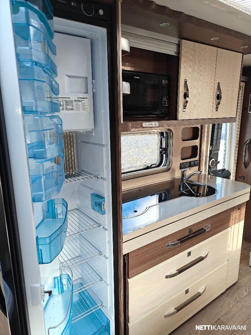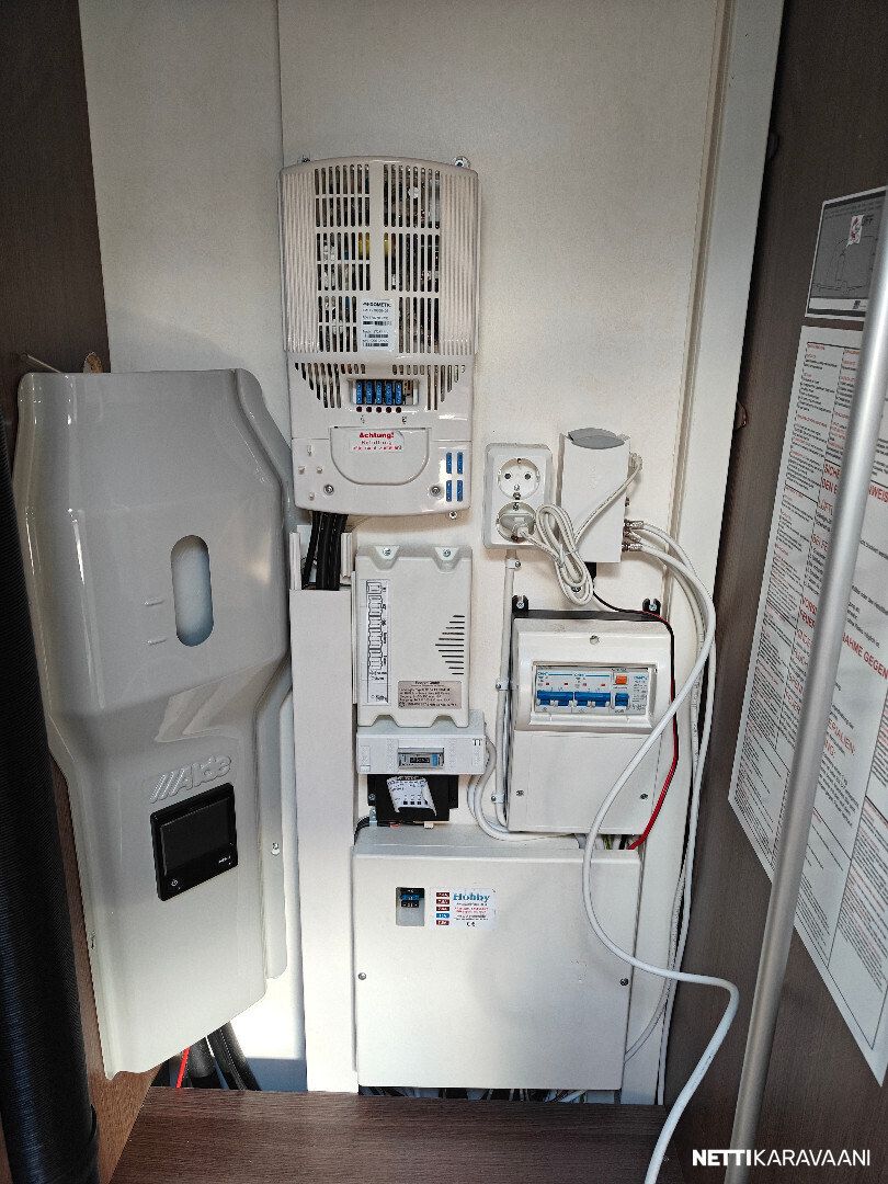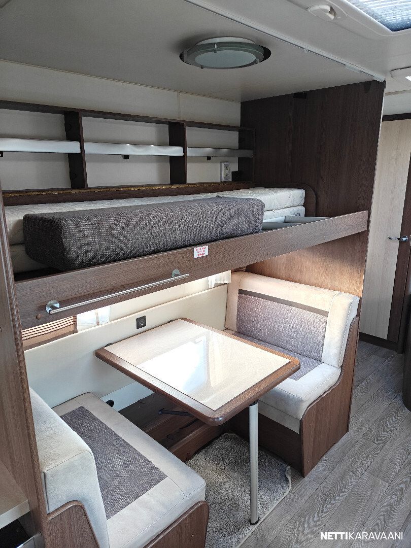 Ilmastointi, Alde-nestekeskuslämmitys, sähköpatruuna, sähkö lattialämmitys, lämmin vesi, iso jää-/pakastinkaappi, liesituuletin, mikro, kiinteä raikasvesisäiliö, kasettiverhot, kirkas kattoluukku, tv-antenni, tv-teline, akku-/laturivarustus, sähkömittari, telttapalvelu, kitkavetopää, hyttysovi, alu-vanteet, kaasupullo, ym...