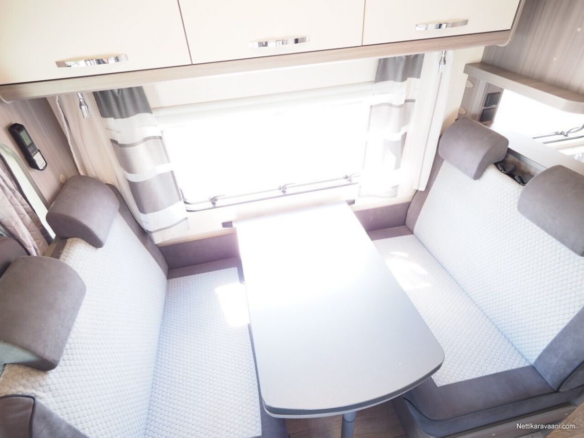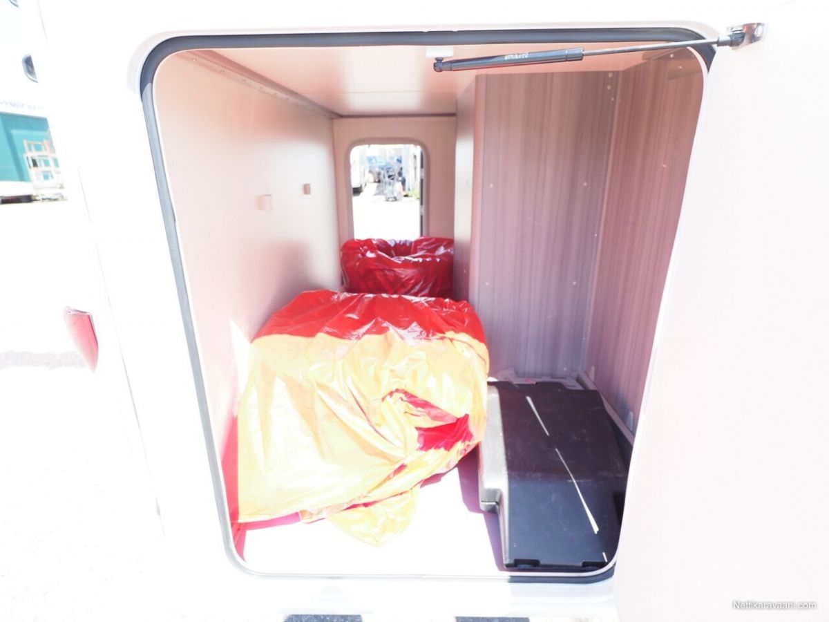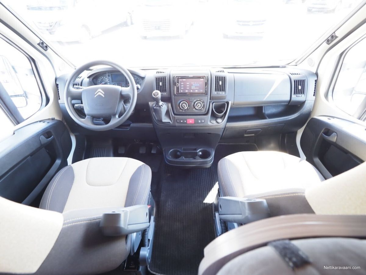 Ajotietokone, Jääkaappi, Kasetti WC, Kasettiverhot, Keskuslukitus: Kaukosäätöinen, Lattiamatot asunto-osassa, Liesi, Lämminvesiboileri, Markiisi, Navigaattori, Ohjaustehostin, Pakastelokero, Pesuallas, Pysäköintikamera, Suihku, Vakionopeudensäädin, ABS-jarrut, Airbag, Käynnistyksenesto, Luistonesto, Huoltokirja, Kattoluukku, Pyöräteline, Sähköpatruuna, Sähkörappu, Trumatic, Turbo