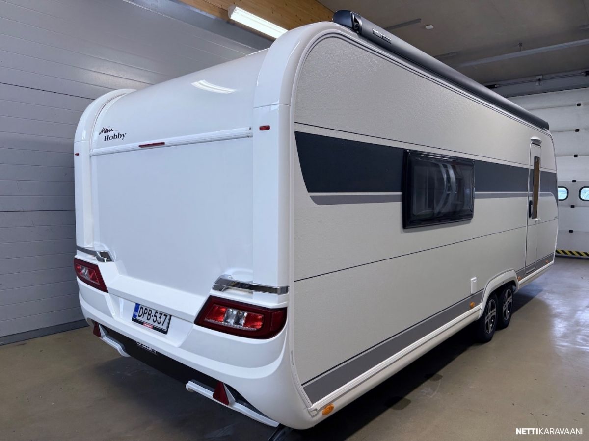 Tosi hieno, kodikas Hobby Maxia -matkailuvaunu hyvillä varusteilla!