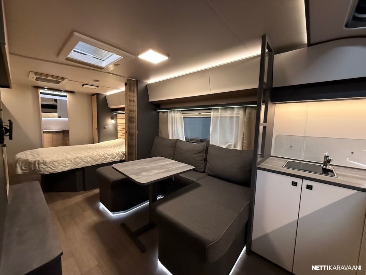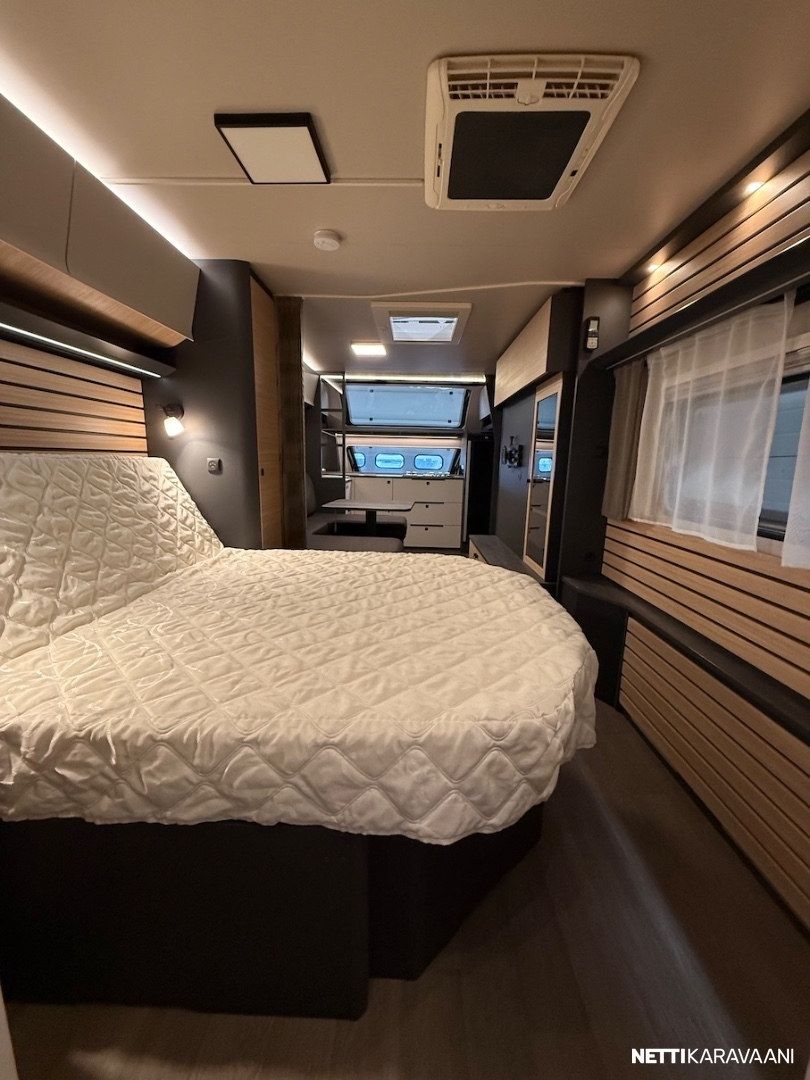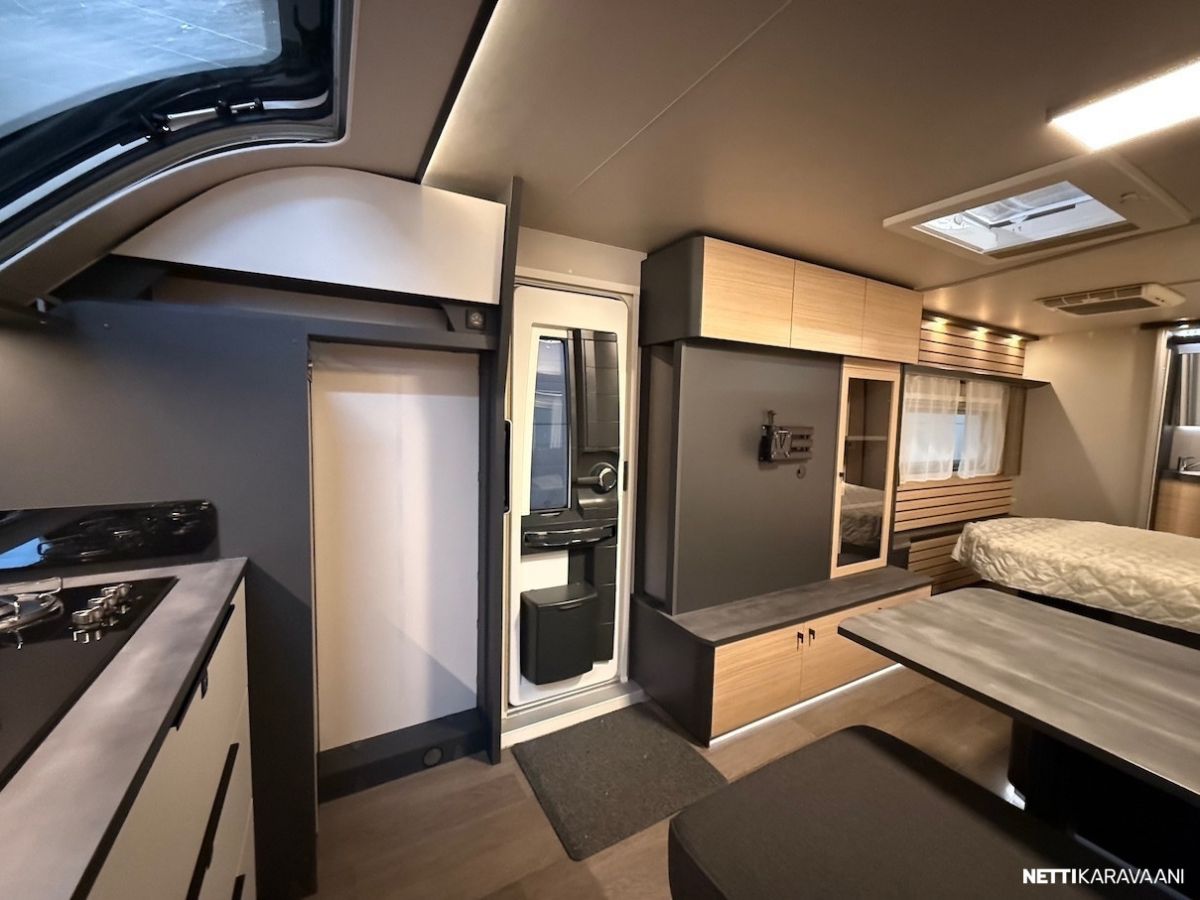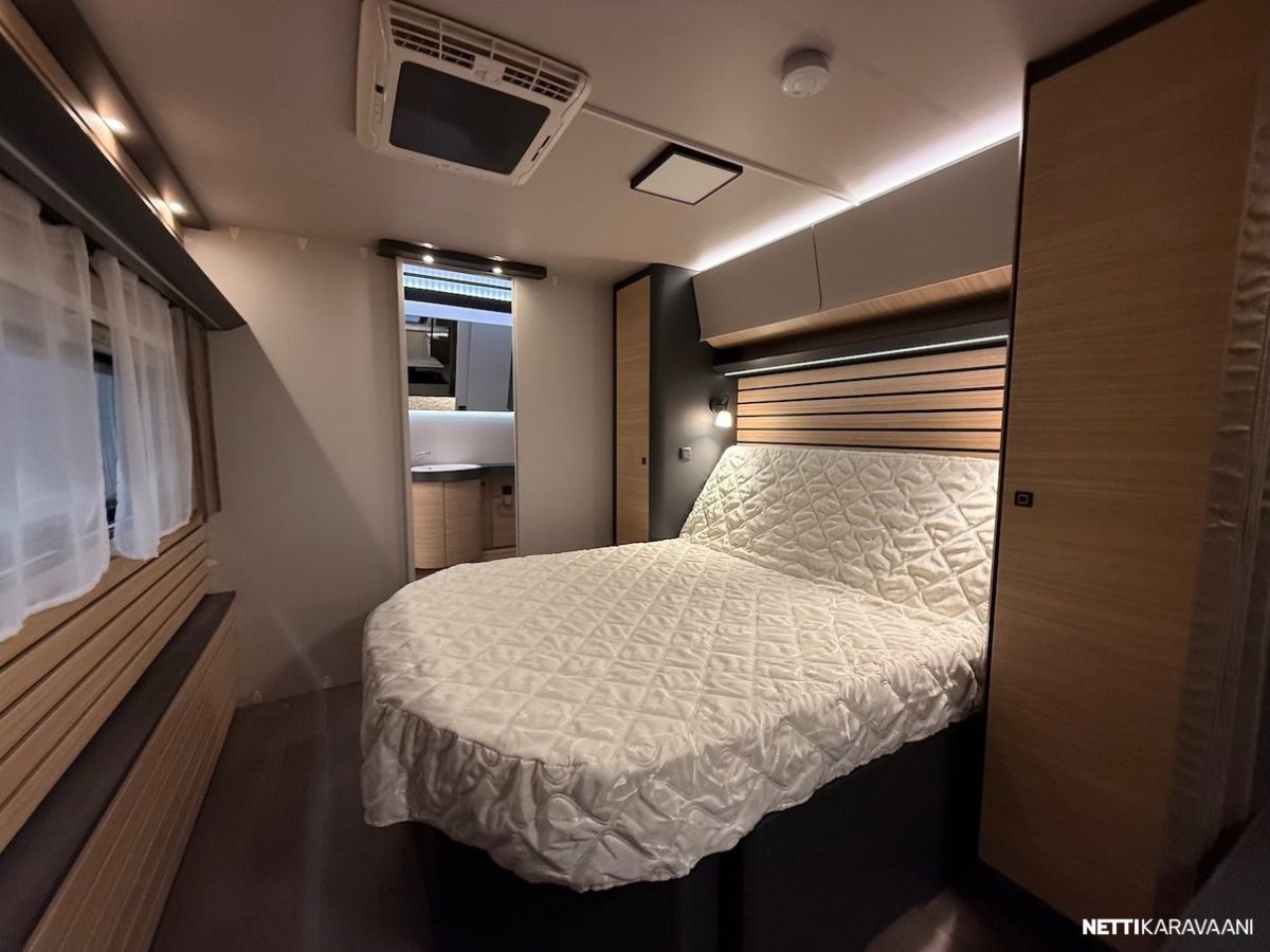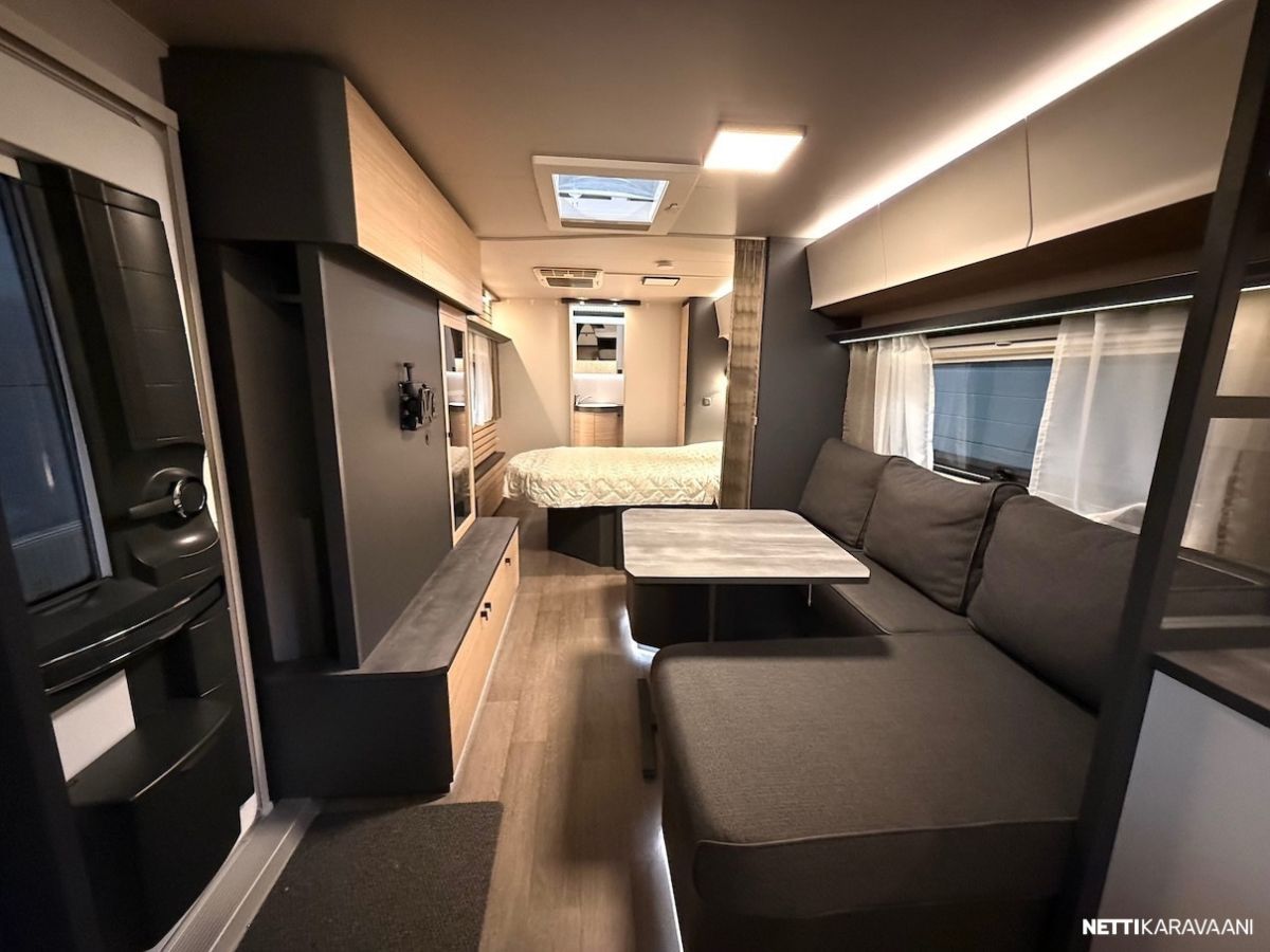 Dometic -asuinosan ilmastointi, musta Thule -kotelomarkiisi, Alde -nestekeskuslämmitys, nestekiertoinen lattialämmitys, tilava SlimTower -kompressorijääkaappi, ikkunallinen ulko-ovi, hyttysverkko-ovi, keulan panoraama kattoikkuna, LED-valaistus ja epäsuora tunnelmavalaistus, lepoasentoon työnnettävä saarekevuode, kitkavetopää, alumiinivanteet, näppärä kulmakaruselli keittiön kaapissa, TV-antenni, TV-teline ja paikka vaikka isollekin televisiolle, sähkön ulosottorasia.