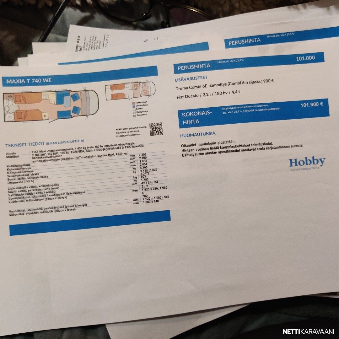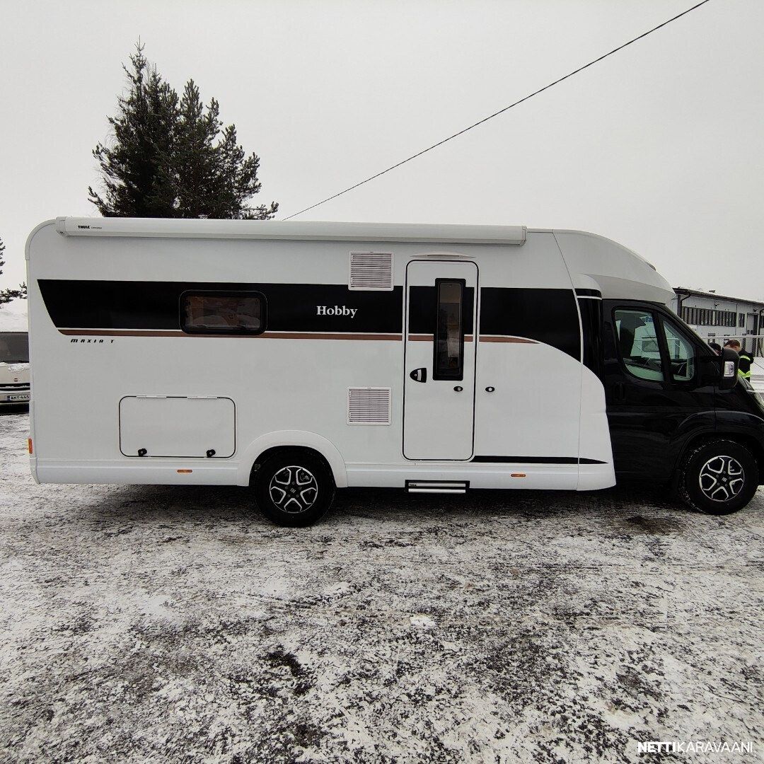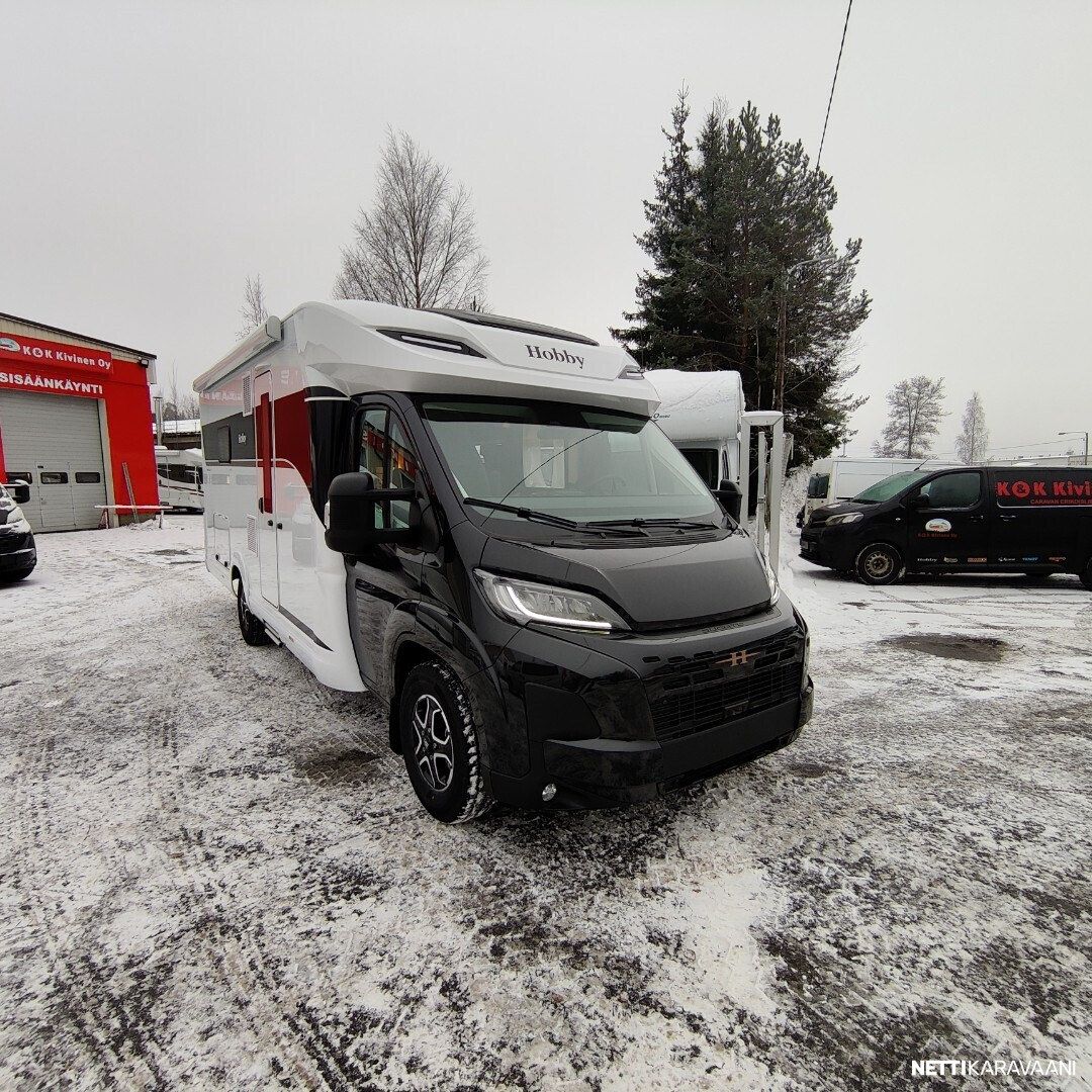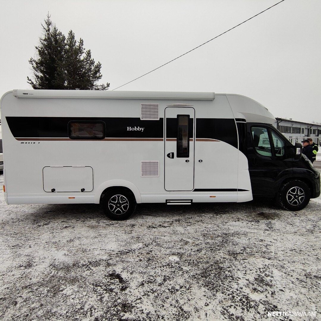 Uusi Tilava Hobbyn auto Automaattivaihteisto Sähkölasit ja sähköpeilit Peruutuskamera ja multimedia soitin Markiisi Erillisvuoteet Tilava oleskelu ryhmä isommillekin porukalle Iso takakylpyhuone kunnollisella suihkulla Trumatic Combi 6E ilmakeskuslammtys kaasulla ja sähköllä Lämmin vesi Tavara luukku vuoteen alle molemmin puolin Kulma keittiö Korkea jääkaappi Vaatii C1 ajokortin, kokonaismassa 4400kg