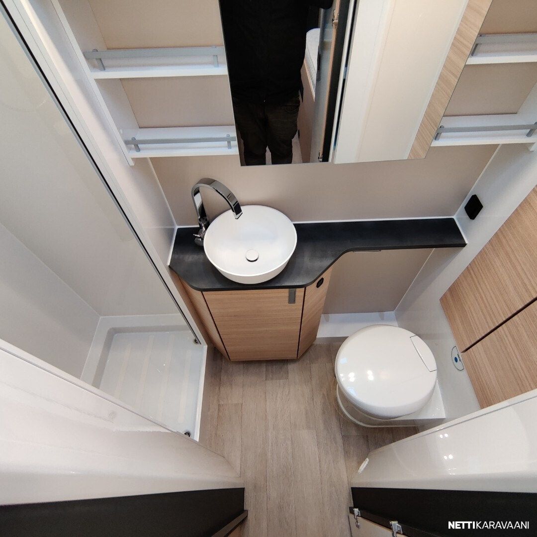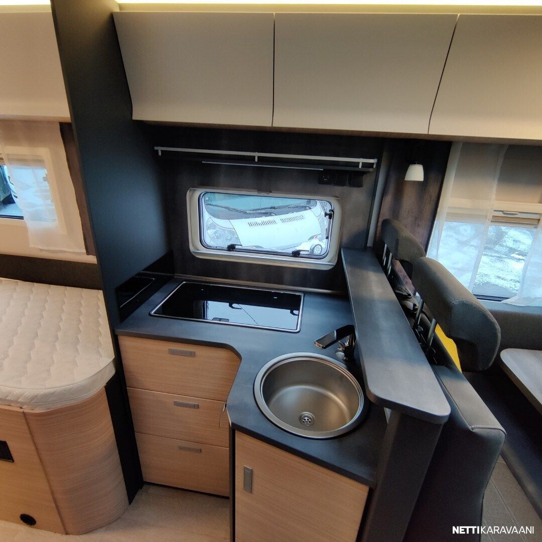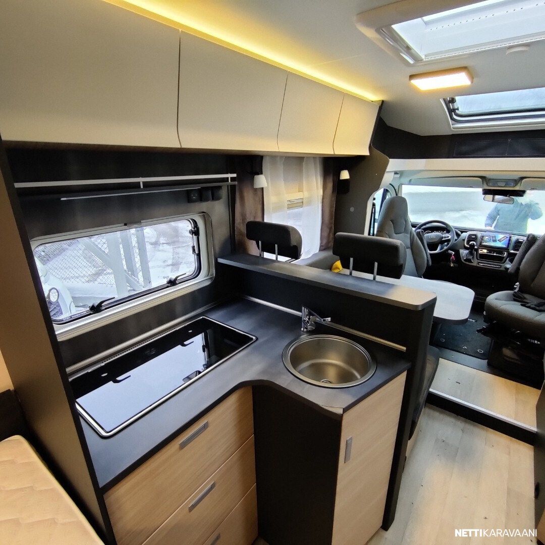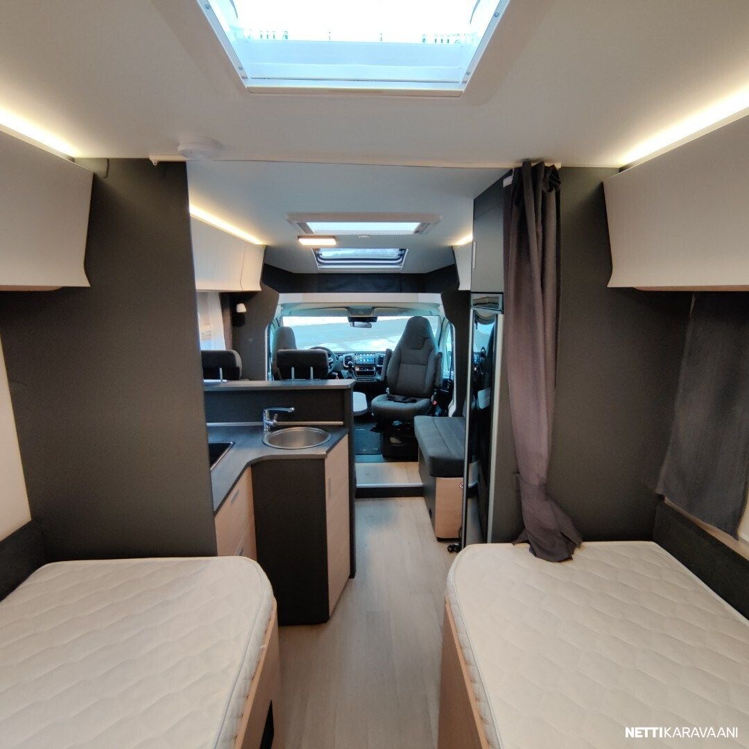Uusi Tilava Hobbyn auto Automaattivaihteisto Sähkölasit ja sähköpeilit Peruutuskamera ja multimedia soitin Markiisi Erillisvuoteet Tilava oleskelu ryhmä isommillekin porukalle Iso takakylpyhuone kunnollisella suihkulla Trumatic Combi 6E ilmakeskuslammtys kaasulla ja sähköllä Lämmin vesi Tavara luukku vuoteen alle molemmin puolin Kulma keittiö Korkea jääkaappi Vaatii C1 ajokortin, kokonaismassa 4400kg