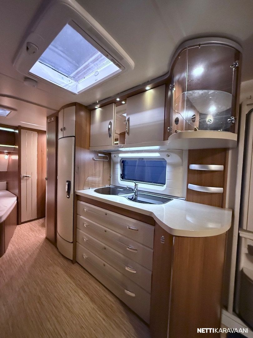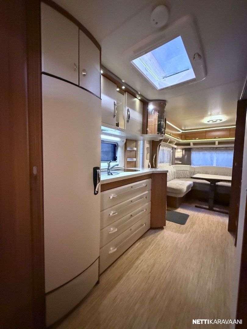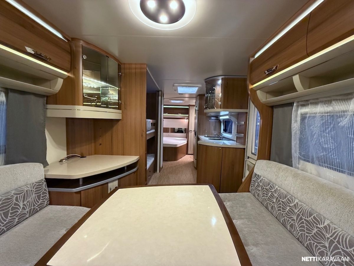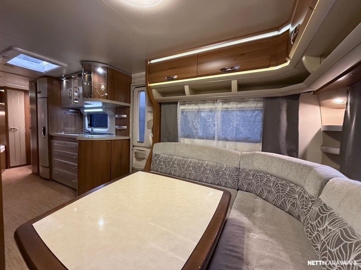 Alde -nestekeskuslämmitys kaasulla ja sähköllä, lattialämmitys, Thule -kotelomarkiisi, kitkavetopää, aluvanteet, kahdet renkaat, tilava SlimTower -jääkaappi, liesituuletin, ikkunallinen ulko-ovi, LED-valaistus ja epäsuora tunnelmavalaistus, kerrosvuoteet, pussimarkiisi, TV-antenni ja teline, kirkkaat Heki -kattoikkunat, CD-radio, aurinkopaneelit.