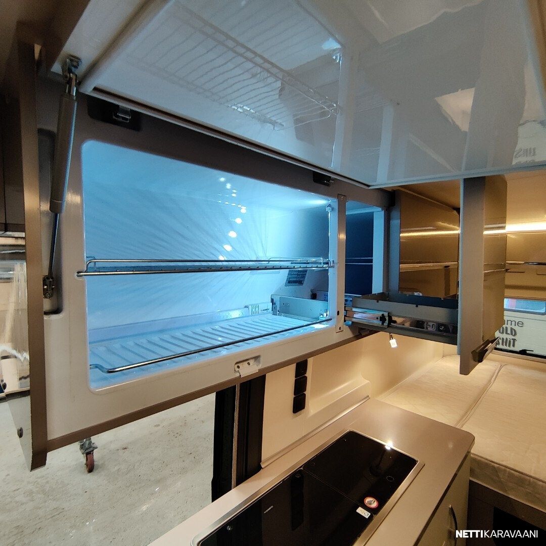 Jääkaappi, Kasetti WC, Kasettiverhot, Kattoluukku, Keskuslukitus: Kaukosäätöinen, Liesi, Lämminvesiboileri, Markiisi, Ohjaustehostin, Pesuallas, Pysäköintikamera, Sisätilanpistoke, Suihku, Sähkökäyttöiset ikkunat, Sähköpeilit, Kattoluukku, Polttoainekäyttöinen lisälämmitin, Sähkörappu, Trumatic, Turbo, Vetokoukku