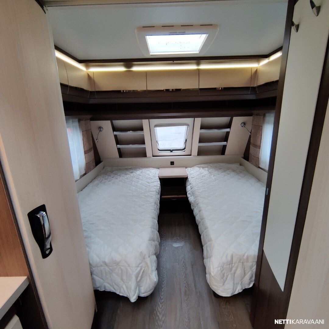 Siisti ja hyvin varusteltu vaunu Erilliset vuoteet muuttuvat tarvittaessa isoksi parivuoteeksi Trumatic ilmakeskuslammtys kaasulla ja sähköllä Lattialämmitys Lämmin vesi Mattosarja Markiisi Kaasun ja sähkön ulosotto Kiinteä astin Akku ja laturi Mikroaaltouuni Korkea jääkaappi Tilava L-keittio kWh mittari TV antenni ja teline Kitkavetopää Tavara luukku vuoteen alle Meidän uutenakin myymä yksilö Vain kaksi omistajaa uudesta saakka Juuri katsastettu 12/2025 Seuraava katsastus 12/2027