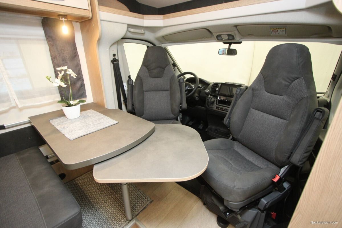 Ajotietokone, Jääkaappi, Kasetti WC, Kasettiverhot, Keskuslukitus: Kaukosäätöinen, Liesi, Lämminvesiboileri, Markiisi, Navigaattori, Ohjaustehostin, Pakastelokero, Pesuallas, Pysäköintikamera, Suihku, Sähkökäyttöiset ikkunat, Sähköpeilit, Vakionopeudensäädin, ABS-jarrut, Airbag, Käynnistyksenesto, Erikoisvanteet, Huoltokirja, Kattoluukku, Sähkörappu, Trumatic, Turbo, Sumuvalot