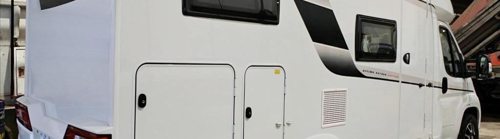 Normaalia kapeampi, erittäin näppärän kokoinen matkailuauto.