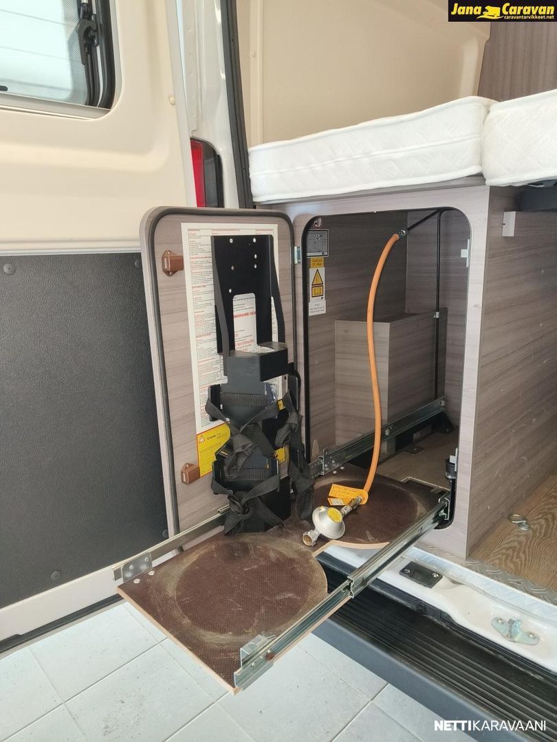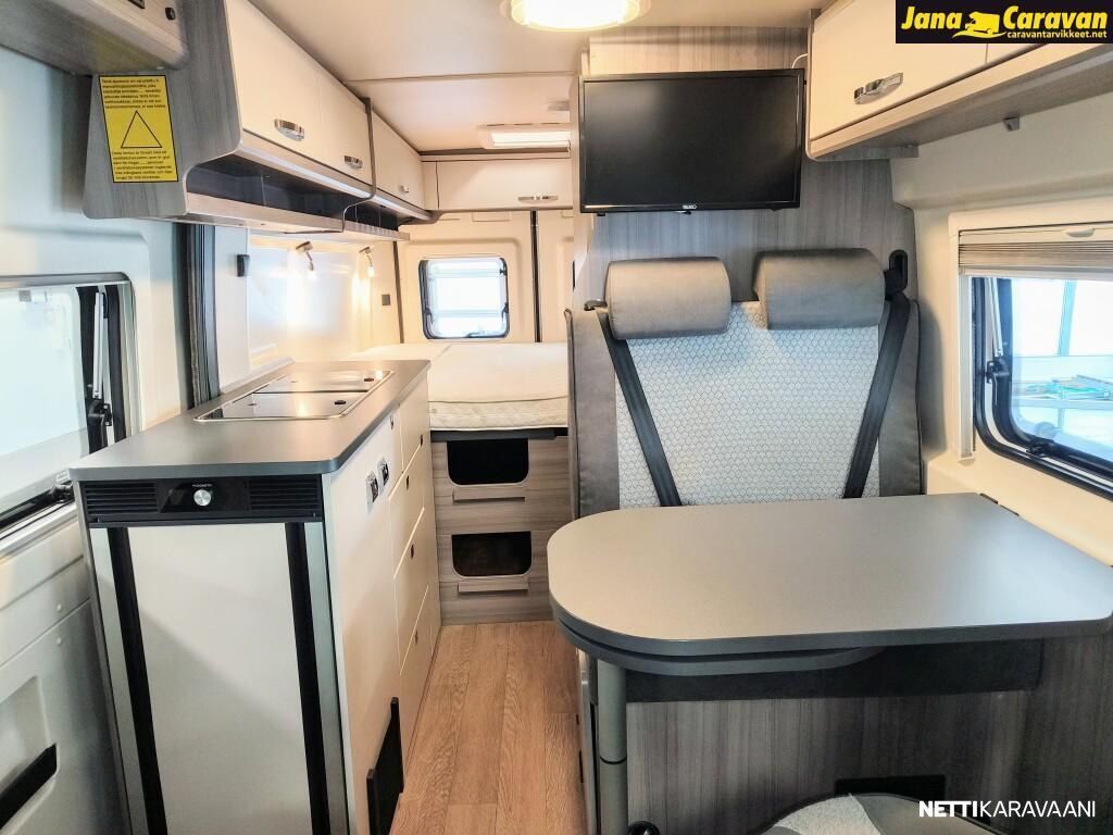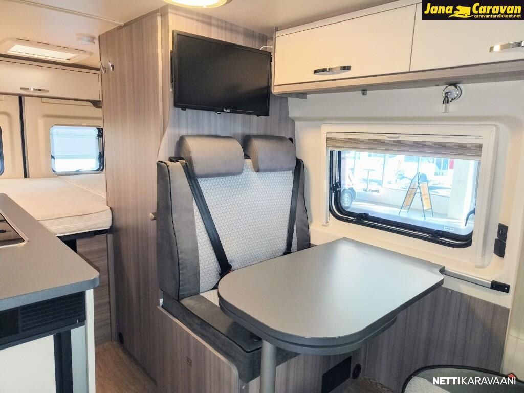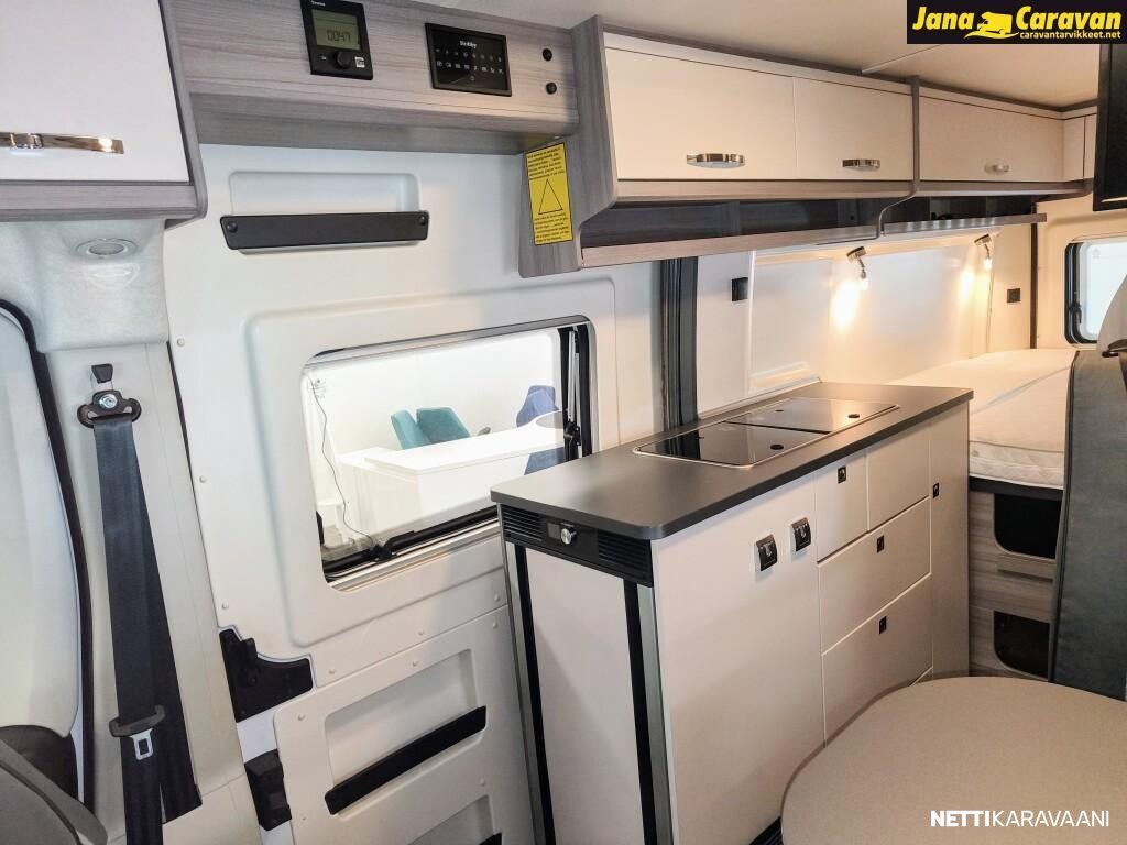 Erittäin hienokuntoinen, todella vähän ajettu Saksalaisen suosikkimerkin retkiauto hyvillä varusteilla. Tästä hieno vaihtoehto uudelle. Takana parivuode, jonka alla runsaasti tavaratilaa. Sängyn saa nostettua ylös, jolloin käytävän saa auki isojen tavaroiden ym. kuljetusta varten. Siisti keittiö tilavalla jääkaapilla, jossa myös pakastelokero. Tilava wc/suihkutila. Pöytäryhmästä saa vuoteen. Suomiversion tehokas ja nopea 6.6KW ilmakeskuslämmitys kaasulla ,1.4KW sähköllä, lämminvesivaraaja ja eristetty ja lämmitettävä harmaavesisäiliö. Varusteet ja tehdastilauslisävarusteet: Vantana K60 FT ONTOUR EDITION Moottori start-stop-järjestelmällä ABS, lukkiutumattomat jarrut Sähköpeilit ja -ikkunat Ajotietokone ESP sis. ASR, mäkilähtöavustin ja älykäs luistonesto Turvatyynyt Ohjaamon ilmastointi Kevytmetallivanteet 16, Original CITROËN Ohjauspyörä ja vaihdevivun nuppi nahkapäällysteiset Antenni Radio Latausvahvistin 25 A Vakionopeudensäädin USB-latauspistoke ohjaamossa Ohjaamoistuimet "Captain's chair" Ohjaamoistuimet asuinosan kangasmateriaalia REMIS-pimennysverhojärjestelmä ohjaamon etu- ja sivuikkunoissa Avattavat ikkunat, tuplalasitetut ja sävytetyt Laskostyyppiset kombi-kasettiverhot, joissa pimennys ja hyönteissuoja kaikissa asuinosan ikkonoissa B6-tehoeristys ja XPS-vaahto Lasikuitulattia, XPS-lämpöeristys DOMETIC SEITZ Midi-Heki-kattoikkuna oleskelutilassa, 700 x 500 mm, pimennys- ja hyttyssuojaverho DOMETIC-SEITZ Mini-Heki-kattoikkuna vuodetilassa, 400 x 400 mm, pimennys- ja hyönteissuojaverho Markiisi Hyttysverhot Sähkötoiminen ulkoporras Ulosvedettävä kaasupulloteline Kiinnityssilmukat tavaratilassa Jääkaappi (AES) DOMETIC, 90 litraa, kaksoiskahvalla, absorbtiotekniikka Keittiön pistorasia Valaistuksen ohjaus vuodetilasta Käännettävä THETFORD wc-istuin Harmaavesisäiliö 95 l, eristetty ja lämmitettävä Käyttövesisäiliö 95 ltr, suojattu jäätymiseltä Asuinosan akku AGM 12 V / 95 Ah Kaasuventtiili ylipainesuojalla (DIN EN 12 864) ja kaasuletku Sähköjärjestelmä 12 V / 230 V Tandem-uppopumppu Savuhälytin Aurinkopaneelin asennusvalmius HOBBY CONNECT TRUMA Combi CP Plus LCD-ohjauspaneeli Mediakeskus, navi, kosketusnäyttö, peruutuskamera, leiripaikkatiedot, Apple CarPlay, Android Auto Antennivalmius, TV-liitin, sis 12 V / 230 V sähköpistorasian ja antennipistorasian Lisävarustus: Harmaavesisäiliö 90 l, lämmitettävä USB-kaksoispistorasiat asuin- ja vuodetilassa TRUMA Combi 6 E-lämmitys USB-kaksoispistorasiat asuin- ja vuodetilassa Hinta sis. alv.25,5% Myydään TC Vehicle / Touringcars Finland Oy:n lukuun. Olemme TC Vehicle / Touringcars Finland Oy:n jälleenmyyjäliike Meiltä myös vaihto ja rahoitus!