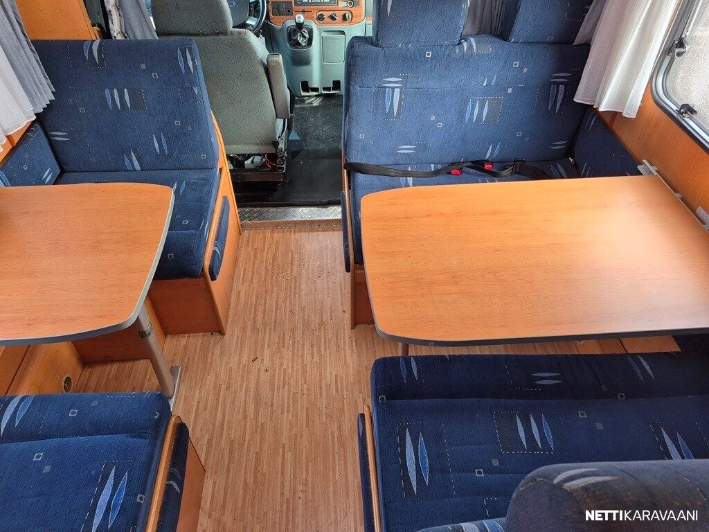 Vaihteisto: Manuaali Polttoaine: Diesel Vetotapa: Etuveto Leveys: 235 cm Pituus: 692 cm Rekisteröity: 01.06.2007 Katsastettu: 01.09.2025 Matkustajat: 5 Kokonaismassa: 3 500 kg Oma massa: 3 050 kg Makuupaikat: 6 Ajokortti: B Lämmitys: Ilmakeskuslämmitys