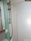 Takana parivuode, jonka alla iso tavaratila. Vieressä wc- ja suihkutilat.