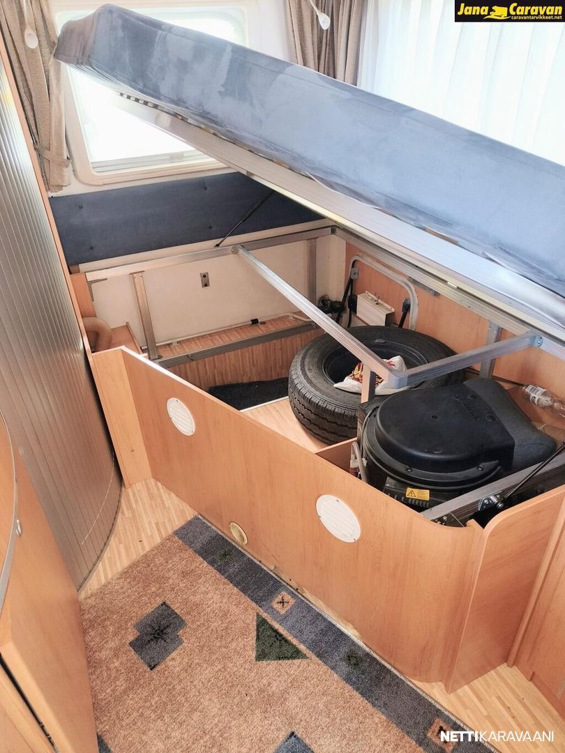 Ohjaustehostin, Vetokoukku, Kahdet renkaat, ABS-jarrut, Airbag, Huoltokirja, Käynnistyksenesto, Luistonesto, Ajotietokone, Turbo, Kasetti WC, Suihku, Lämminvesiboileri, Pyöräteline, Markiisi, Liesi, Jääkaappi, Pakastelokero, Eristetty harmaavesisäiliö, Kasettiverhot, Lattiamatot asunto-osassa, Pesuallas, Sähköpatruuna, Pysäköintikamera
