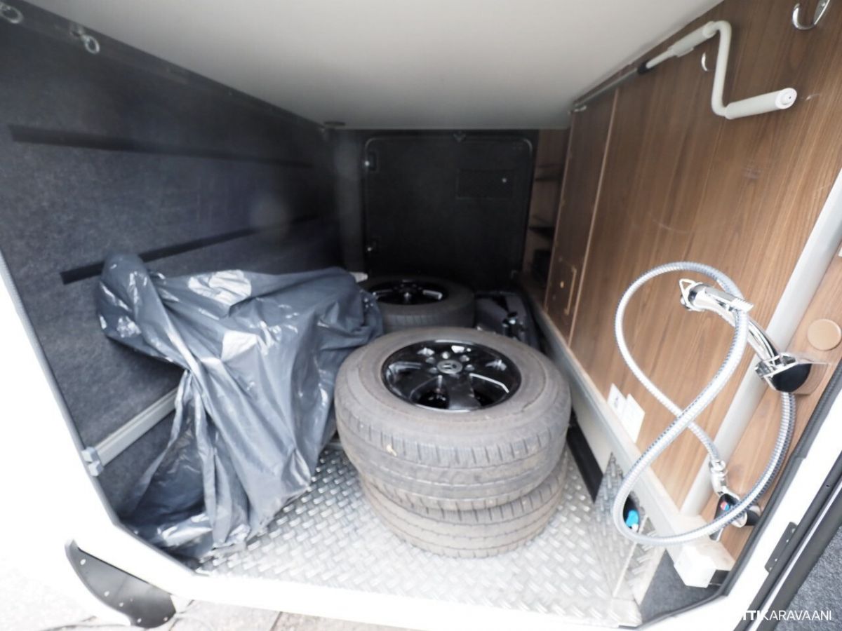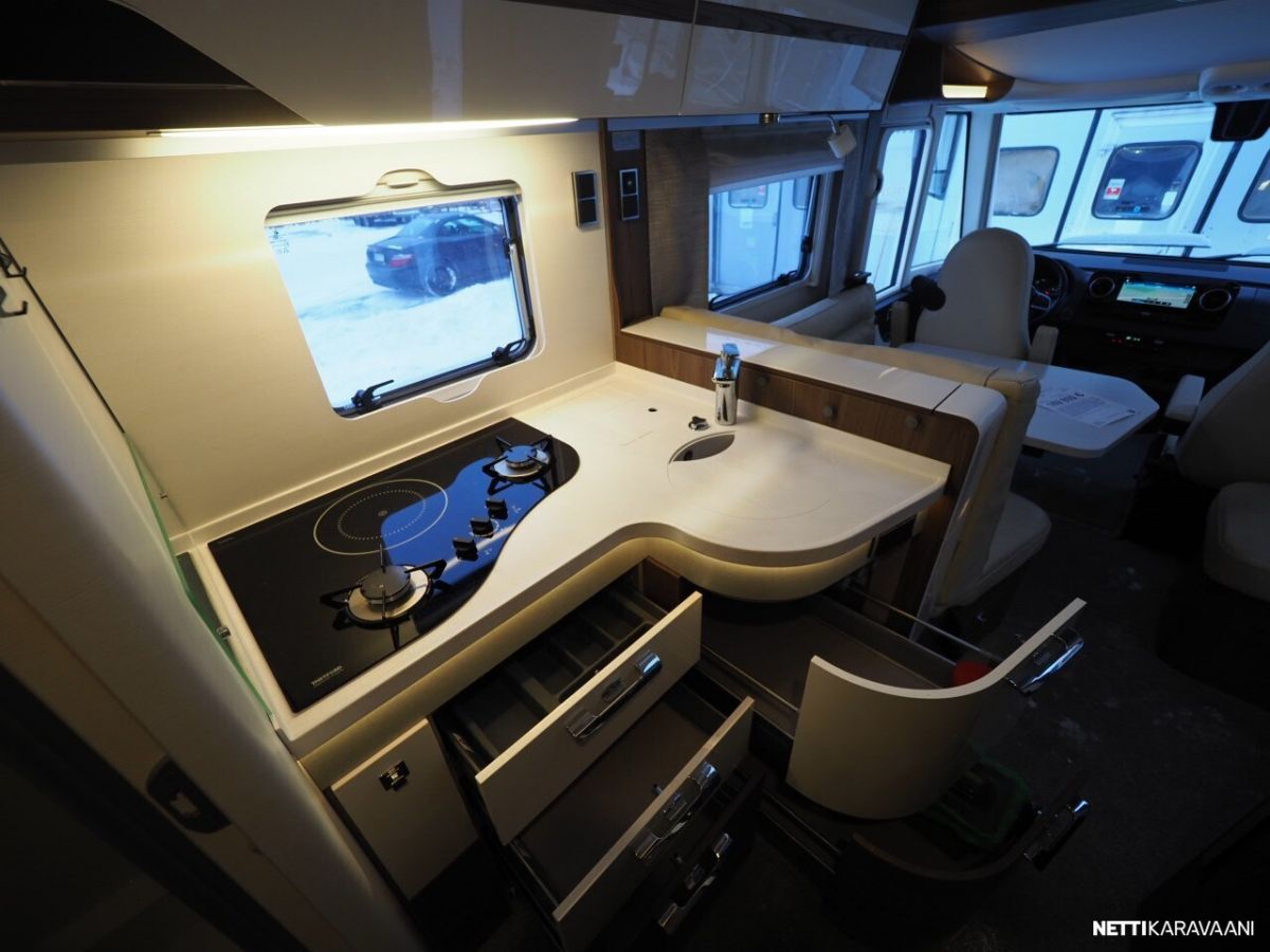 Ajotietokone, Ilmastointi: Manuaalinen, Jääkaappi, Kaasu-uuni, Kasetti WC, Kasettiverhot, Keskuslukitus: Kaukosäätöinen, Lattiamatot asunto-osassa, Liesi, Lämminvesiboileri, Markiisi, Nahkasisusta, Navigaattori, Ohjaustehostin, Pakastelokero, Penkinlämmittimet, Pesuallas, Pysäköintikamera, Suihku, Sähkökäyttöiset ikkunat, TV-antenni tai lautasantenni, Vakionopeudensäädin, ABS-jarrut, Airbag, Käynnistyksenesto, Sumuvalot, Alde, Erikoisvanteet, Eristetty harmaavesisäiliö, Huoltokirja, Kattoluukku, Sähköpatruuna, Sähkörappu, Tuplapohja, Turbo, Aurinkopaneeli, Kahdet renkaat