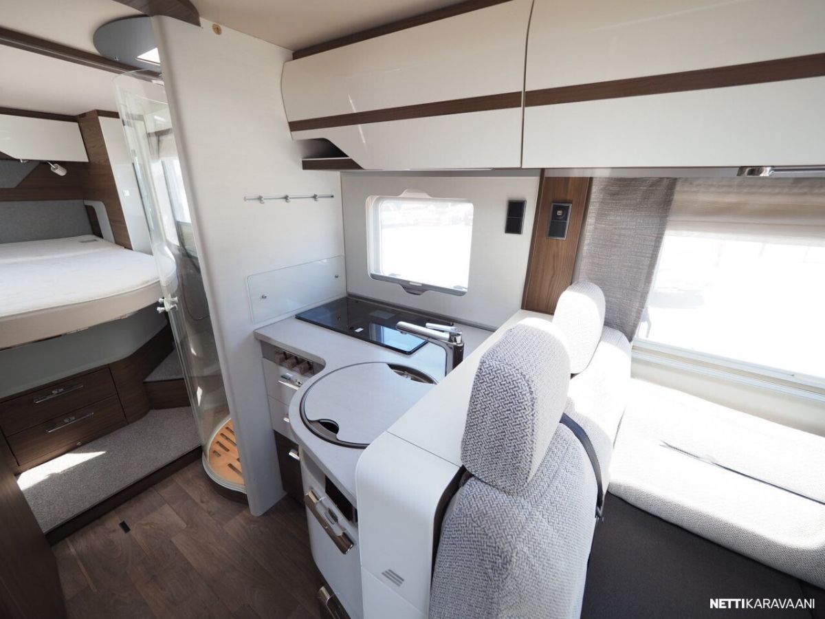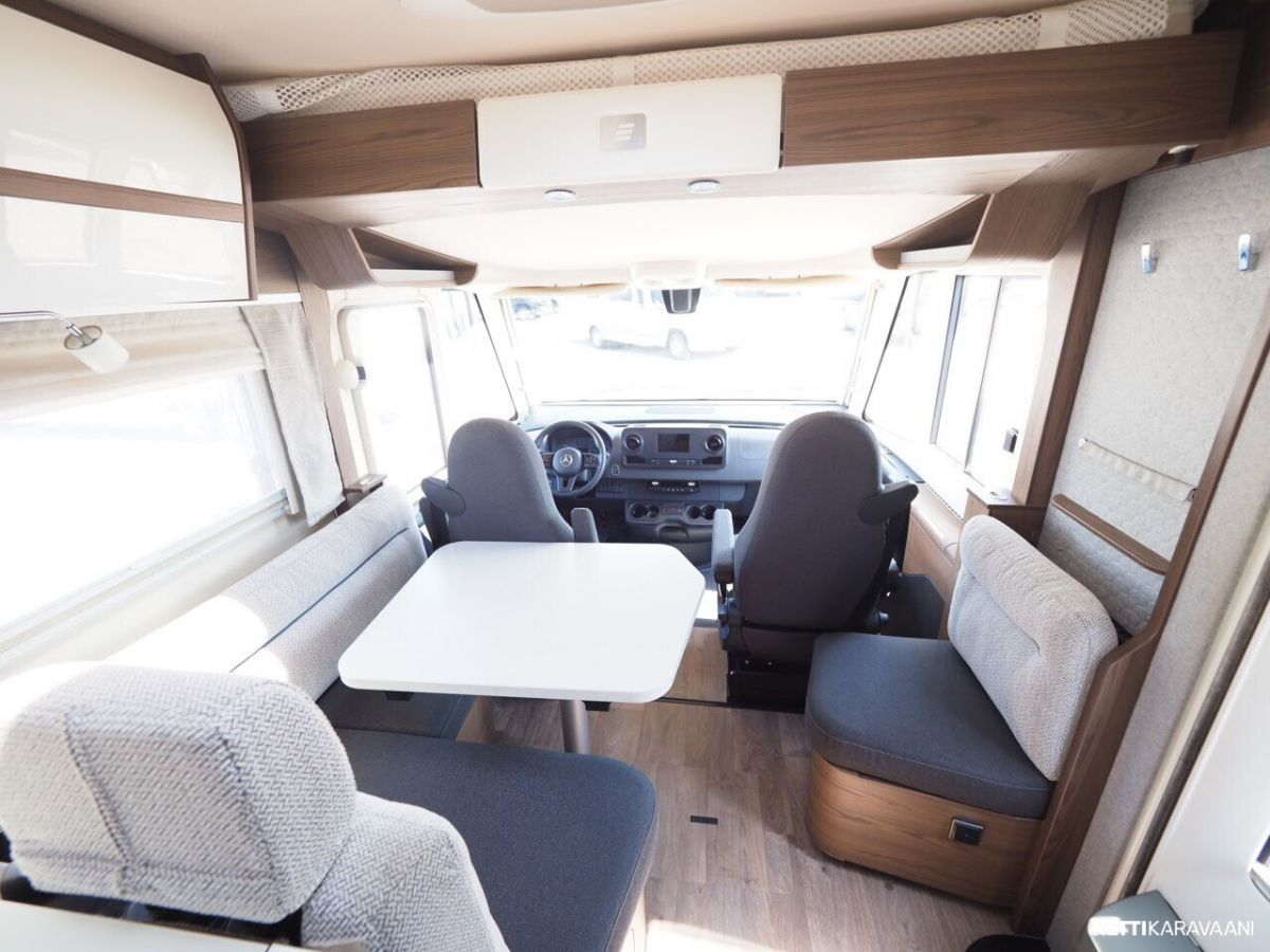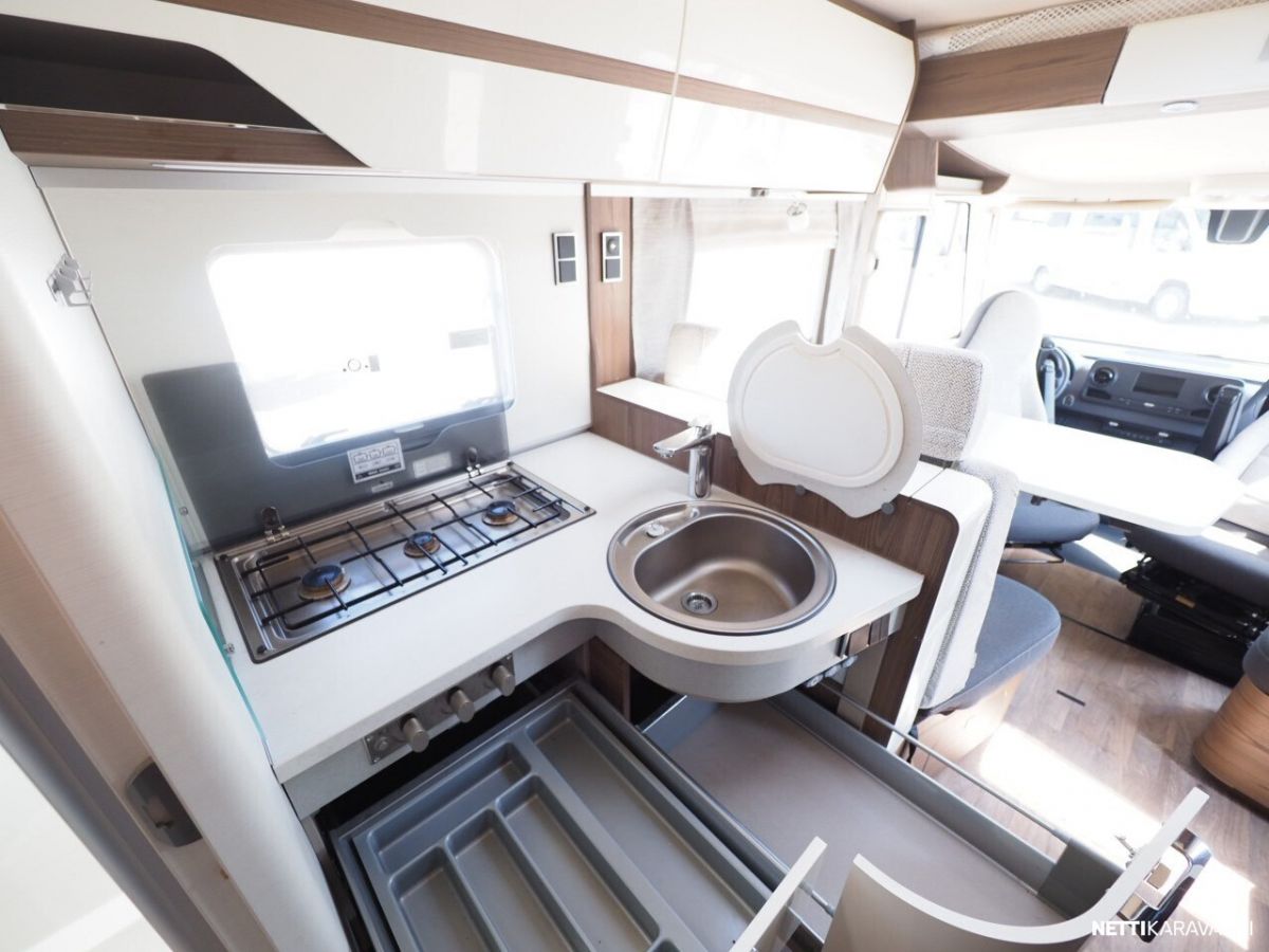 Ajotietokone, Jääkaappi, Kaasu-uuni, Kasetti WC, Kasettiverhot, Keskuslukitus: Kaukosäätöinen, Lattiamatot asunto-osassa, Liesi, Lämminvesiboileri, Markiisi, Ohjaustehostin, Pakastelokero, Penkinlämmittimet, Pesuallas, Pysäköintikamera, Stereot, Suihku, Sähkökäyttöiset ikkunat, Sähköpeilit, TV-antenni tai lautasantenni, Vakionopeudensäädin, ABS-jarrut, Airbag, Käynnistyksenesto, Alde, Erikoisvanteet, Eristetty harmaavesisäiliö, Huoltokirja, Kattoluukku, Sähköpatruuna, Sähkörappu, Tuplapohja, Turbo