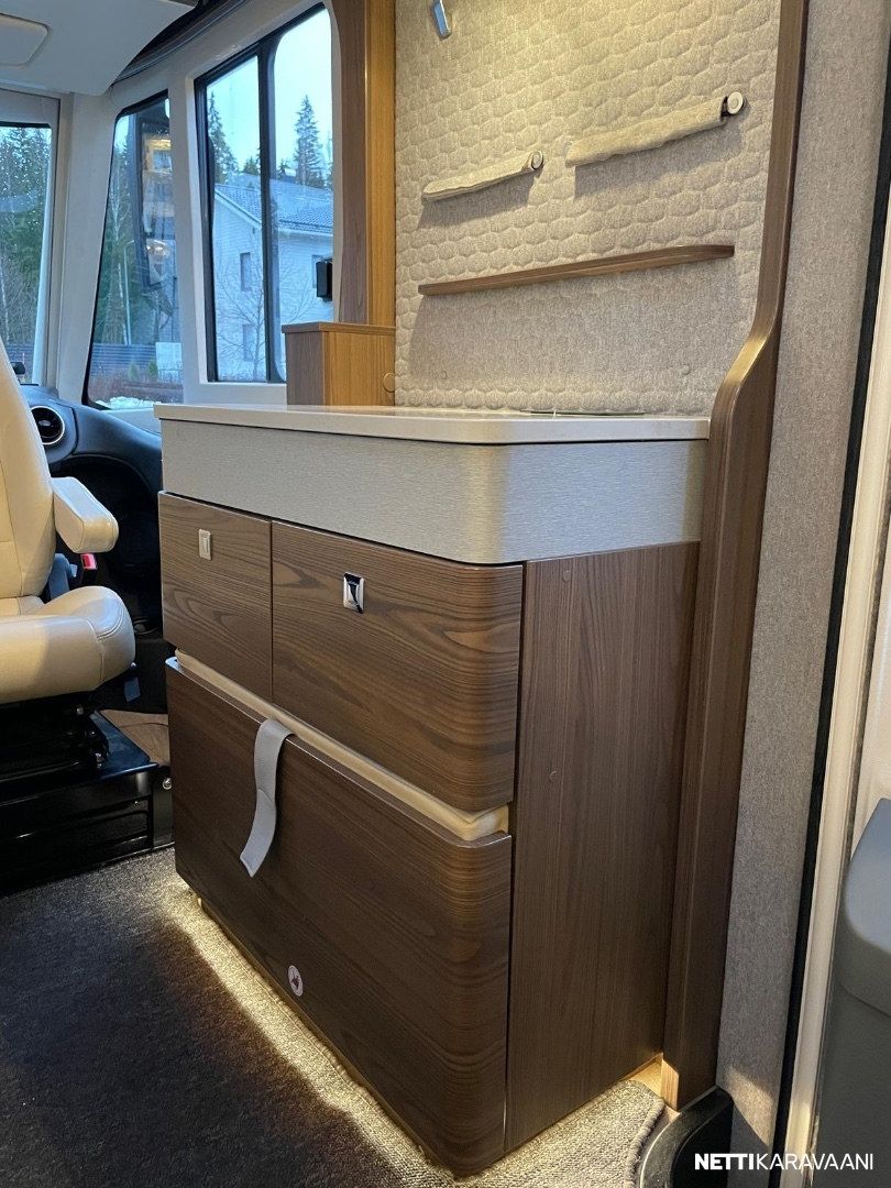 Ajotietokone, Jääkaappi, Kasetti WC, Kasettiverhot, Keskuslukitus: Kaukosäätöinen, Lattiamatot asunto-osassa, Liesi, Lämminvesiboileri, Markiisi, Mikroaaltouuni, Nahkasisusta, Navigaattori, Ohjaustehostin, Pakastelokero, Penkinlämmittimet, Pysäköintikamera, Suihku, Sähkökäyttöiset ikkunat, Sähköpeilit, TV-antenni tai lautasantenni, Vakionopeudensäädin, ABS-jarrut, Airbag, Käynnistyksenesto, Sumuvalot, Alde, Aurinkopaneeli, Erikoisvanteet, Eristetty harmaavesisäiliö, Etukatos, Sähköpatruuna, Sähkörappu, Tukijalat, Tuplapohja, Turbo, Vetokoukku