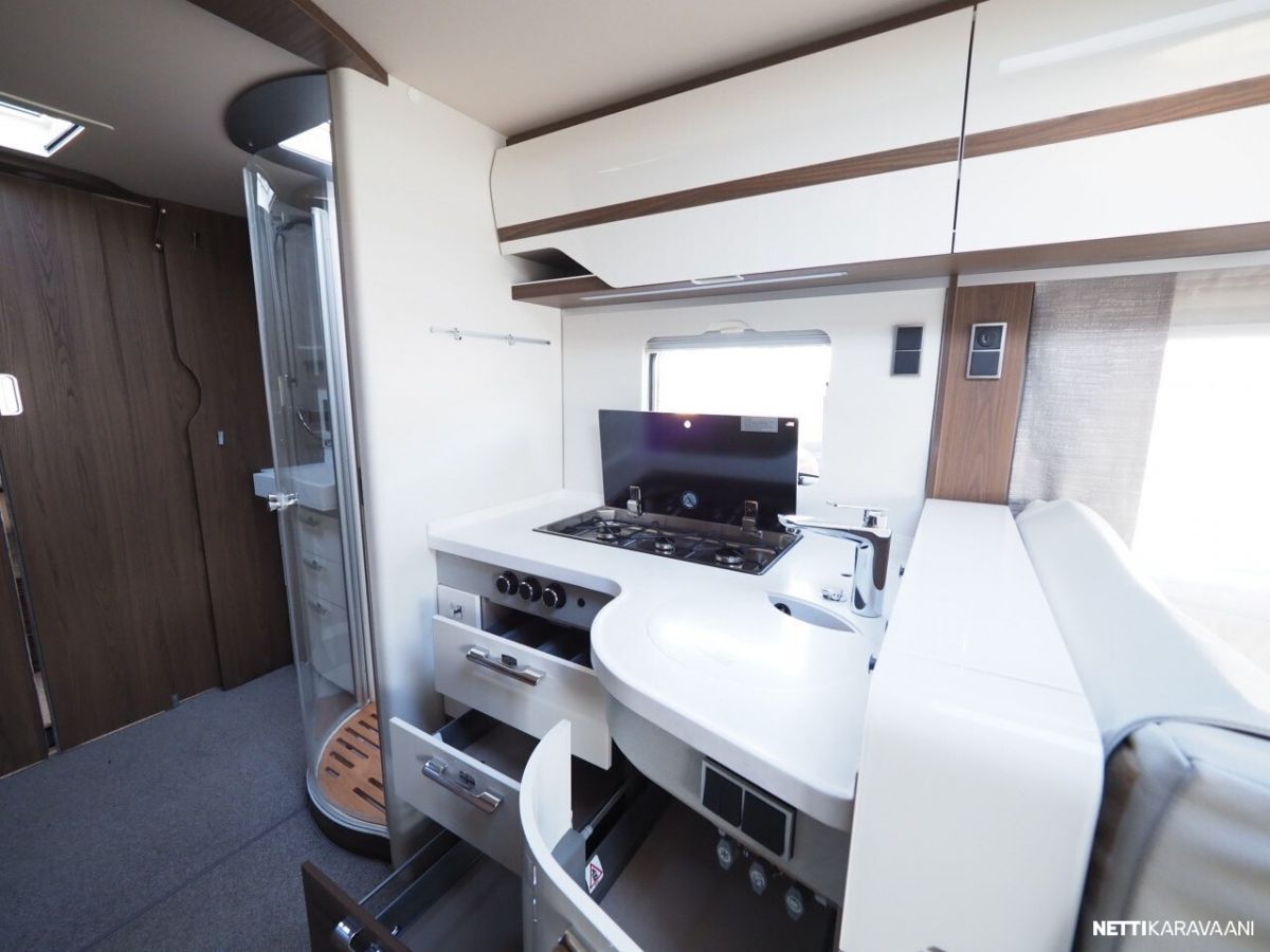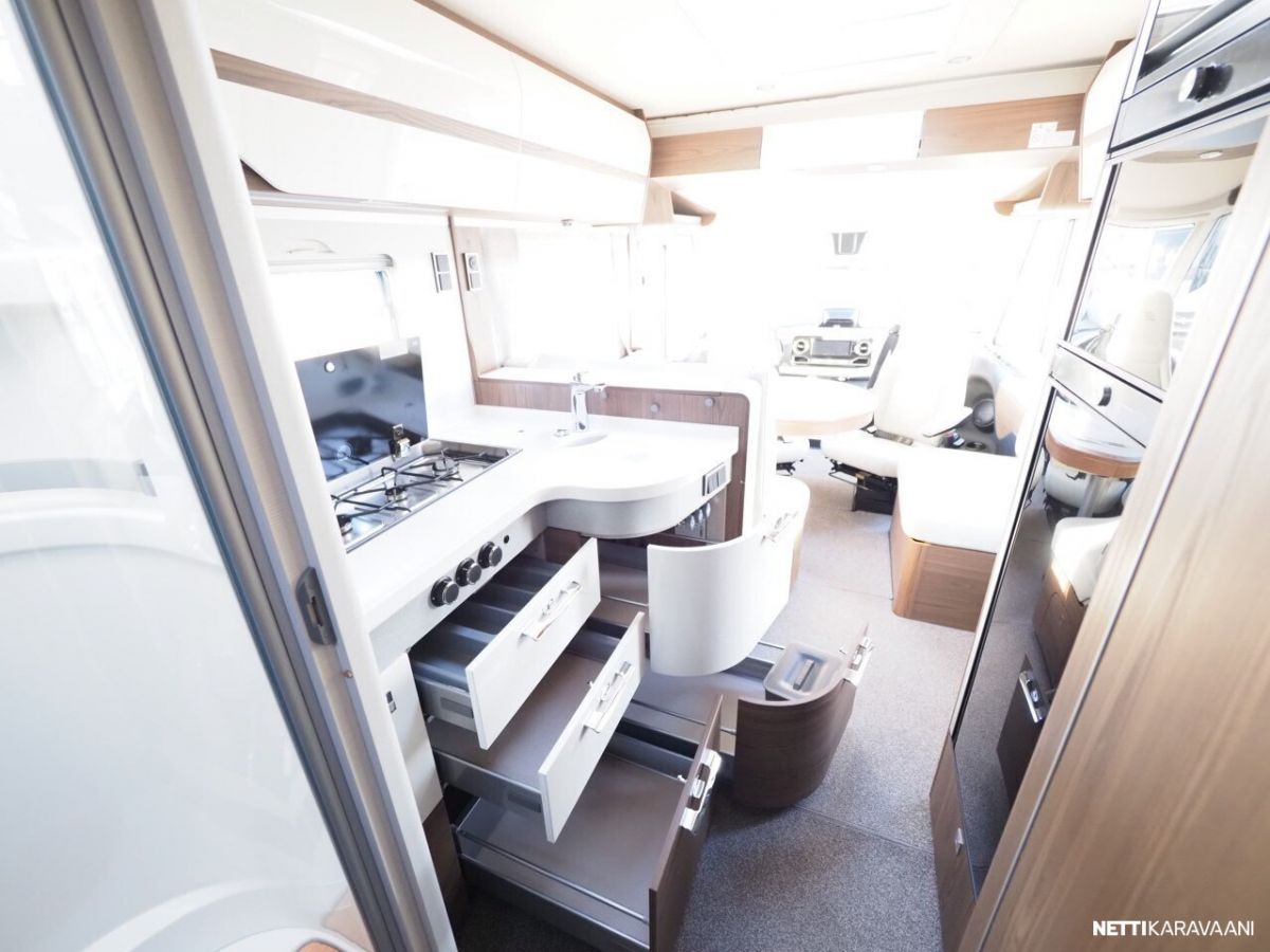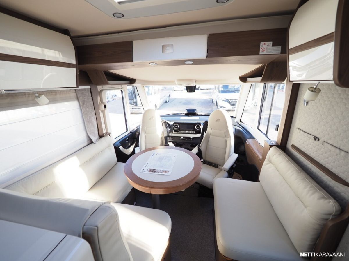 Ajotietokone, Jääkaappi, Kaasu-uuni, Kasetti WC, Kasettiverhot, Keskuslukitus: Kaukosäätöinen, Lattiamatot asunto-osassa, Liesi, Markiisi, Nahkasisusta, Navigaattori, Ohjaustehostin, Pakastelokero, Penkinlämmittimet, Pesuallas, Pysäköintikamera, Suihku, Sähkökäyttöiset ikkunat, Sähköpeilit, Vakionopeudensäädin, ABS-jarrut, Airbag, Käynnistyksenesto, Luistonesto, Sumuvalot, Alde, Aurinkopaneeli, Erikoisvanteet, Eristetty harmaavesisäiliö, Etukatos, Sähkörappu, Tuplapohja, Turbo, Huoltokirja, Kattoluukku, Sähköpatruuna