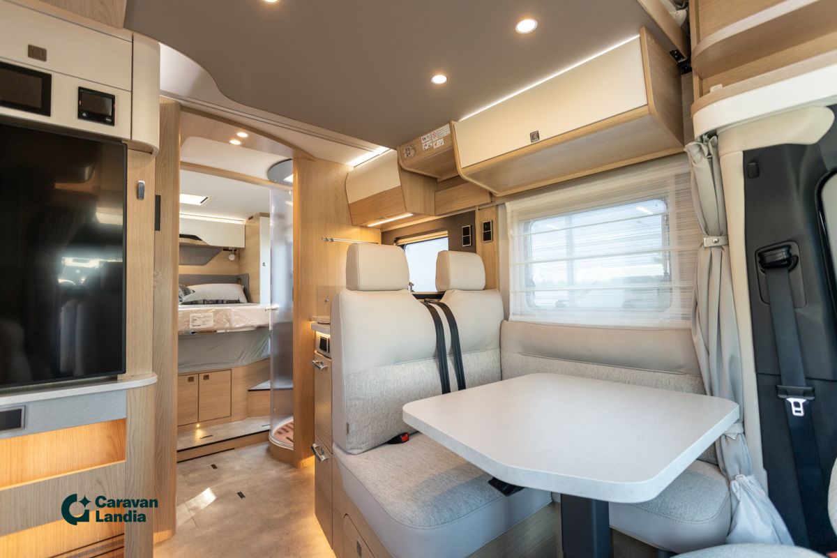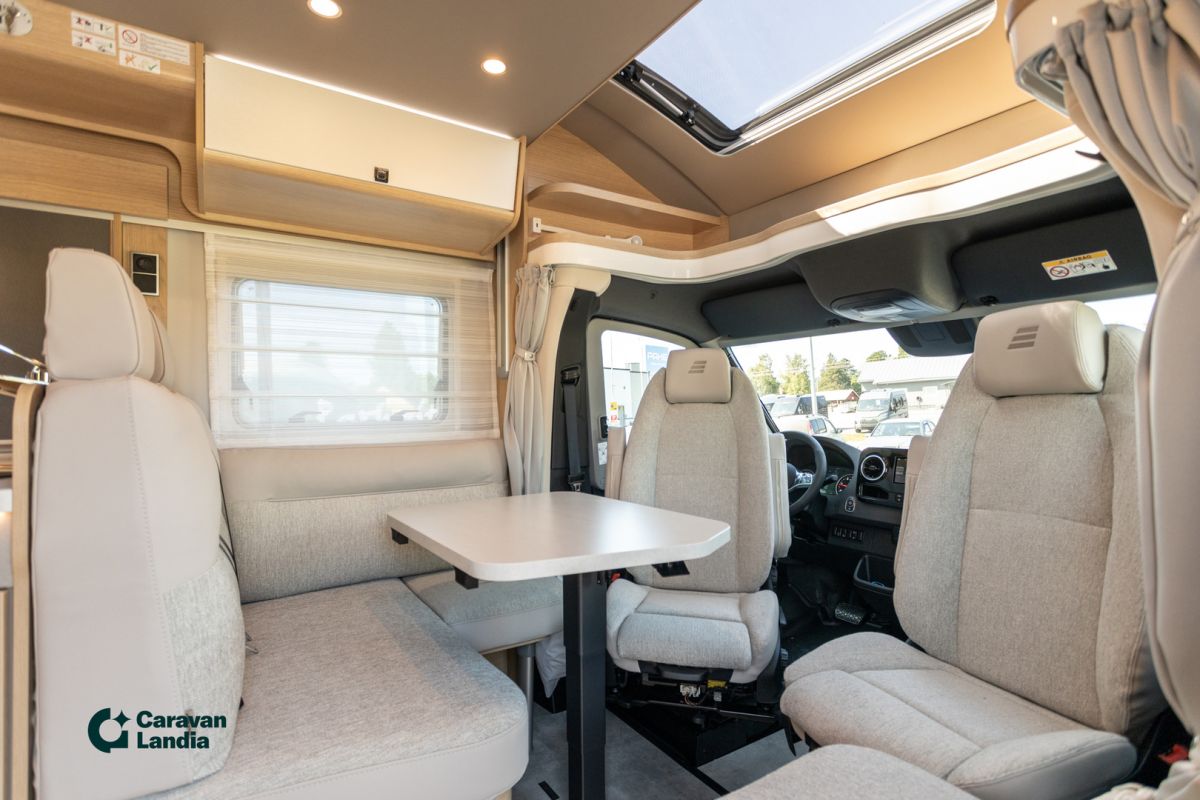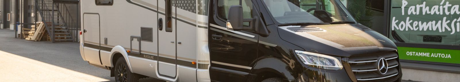 TÄHÄN AJONEUVOON 2,99 % KORKO + UUDEN VARUSTE-EDUT! - Hymer B-ModernComfort T 690 Blackline: Tyylikäs ja kattavasti varusteltu puoli-integroitu matkailuauto laatutietoiselle! Tämä Hymerin B-ModernComfort (BMC) -sarjan T 690 Blackline -malli on suunniteltu tarjoamaan poikkeuksellisen tyylikkään ja mukavan matkakokemuksen. Se on rakennettu Mercedes-Benz Sprinter -alustalle, mikä takaa ensiluokkaisen ajomukavuuden ja vakauden tien päällä. Blackline-erikoisvarustelu korostaa auton modernia ja sporttista ulkonäköä tummilla yksityiskohdilla ja kattavammalla vakiovarustelulla. Vaunun avara pohjaratkaisu tarjoaa mukavat puitteet oleskeluun ja yöpymiseen. Takana on tilava saarekevuode, joka mahdollistaa helpon kulun sängyn molemmilta puolilta ja lisää avaruuden tunnetta makuutilaan. Edessä oleva viihtyisä L-istuinryhmä tarjoaa tilaa rentoutumiseen ja ruokailuun. Hymerin tunnettu laatu, käytännöllinen keittiö, tyylikäs kylpyhuone ja runsaat säilytystilat tekevät arjesta helppoa ja nautinnollista tien päällä. Tämä B-ModernComfort T 690 Blackline on täydellinen valinta sinulle, joka arvostat premium-tason ajoneuvoa, jossa yhdistyvät design, mukavuus ja luotettavuus. Lähde matkaan tyylillä ja koe vapauden tunne tämän upean Hymerin kanssa! Perusajoneuvo ja alusta Mercedes-Benz Sprinter 4,43 t - 417 CDI - 125 kW / 170 hv - Euro VI-E Automaattivaihteisto 9G-TRONIC hold-toiminnolla Ohjaamon musta metalliväri Korin ulkoväri hopea metalli 16'' mustat kevytmetallivanteet All Season -renkailla BlackLine-paketti BlackLine-erikoisteippaukset Kromattu jäähdyttimen ritilä Puskuri, lisäosat ja ritilän kehys korin värisinä Nahkainen ohjauspyörä Aktiivinen etäisyysvaroitin DISTRONIC+ monitoimiratilla Liikennemerkkiavustin Markiisi adapterilla, musta kotelo 450 x 250 cm Mukava L-istuinryhmä Lounge-pehmustein, liikkuva pöytä ja 2 integroitua turvavyötä Vuoteentekomahdollisuus L-istuinryhmästä Mittatilauslakanat takavuoteisiin 4 koristetyynyä Monitasoinen ympäröivä valaistusjärjestelmä säädettävällä valon lämpötilalla Suihkualtaan puinen suojus 230V-, 12V- ja kaksois-USB-pistorasiat (myös keittiön seinäverholla) 10,25” MBUX-multimediajärjestelmä: peruutuskamera, ääniohjaus, kosketusnäyttö, navigointi, älypuhelinintegraatio 32" TV-teline 32" Smart LED-TV, Bluetooth®-yhteensopiva, sähköinen kiinnike, kaukosäädin HYMER Connect -anturipaketti: kaasutaso-, lämpötila- ja kosketusanturit Premium-varustelinja Korkeatehoiset LED-ajovalot Langaton älypuhelimen latausasema Kojetaulun latauspaketti: 2x USB-C ja 1x 12V Täysautomaattinen ilmastointilaite THERMOTRONIC Arktis-paketti Lämmönvaihdin vesikeskuslämmitykseen ja sen esivalmius Lämmitys takatallin lattiassa (kaasu/nestekierto) Takatallissa turkkipeltilattia ja huopaverhoilu Kaksinkertainen eristeväliverho ohjaamon ja asunto-osan väliin Irrotettava jalkatilan eristematto Lisälämmitin kylmäkäynnistystä varten Vesikeskuslämmitys Talvipaketti Istuinlämmitys ja ristiselän tuki etuistuimiin Wet Wiper -järjestelmä (pyyhkijöissä integroidut pesulaitteet) Ohjauspyörän lämmitys Lämpöeristetty ohjaamo Lisävarusteet Lämmitettävä tuulilasi Keskuslukitus kuljettajan, asunto-osan ja tallin oviin Kaukovaloavustin Asunto-osan mukavuudet Komfort-ulko-ovi: ikkuna, pimennysverho, roskakori, tuplalukitus istuinpaikka lannevyöllä (istuinosassa oikealla, selkä menosuuntaan) Alaslaskettava parivuode kylmävaahtopatjalla (sähkötoiminen) Korkeussäädettävä saarekevuode takana Teknologia & energia HYMER-Smart-Battery-järjestelmä 2.0: toinen 80 Ah LFP akku ja lisälaturi (160 Ah) Laajennusmoduuli: kolmas ja neljäs 80 Ah LFP akku (kokonaiskapasiteetti 320 Ah) Sisustus & viimeistely Kalustesävy Grand Oak Tekstiilinahka-/kangasyhdistelmäverhoilu Marquis Mattosarja Laguna, Alv-vähennyskelpoinen