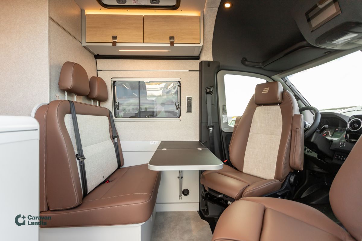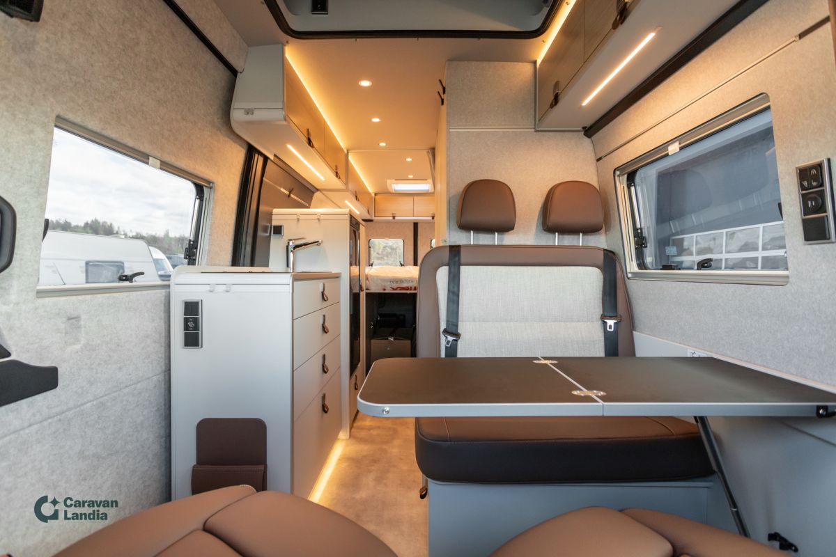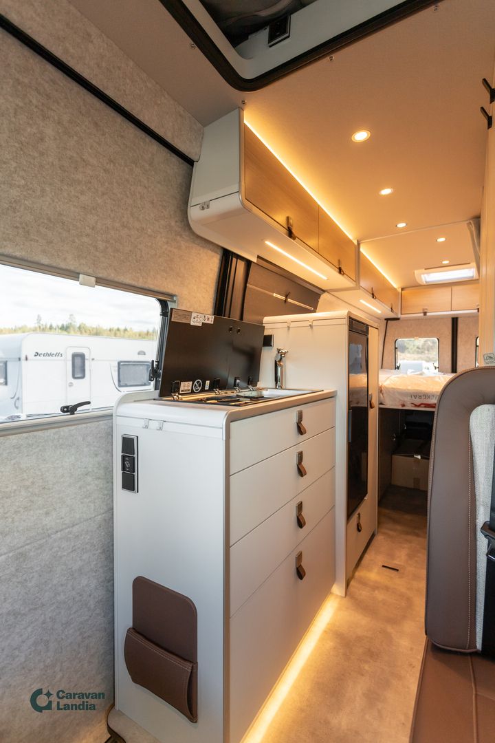 HYMER Premium-linjalla saat Mercedes-Benzin huipputekniikan, arktisen mukavuuden ja modernin designin – täydellinen matkakumppani koko perheelle! Varustelinja Premium Vakionopeudensäädin ja monitoimiratti Sähköinen pysäköintijarru Vahvistettu etuakseli DAB-radio Aktiivinen kaistavahti, huomioavustin Lämpöä eristävä lasi tummennusnauhalla Mercedes-Benzin värimittaristo Akustiikkapaketti Mercedes-Benz Sadetunnistin MBUX 10,25" multimediajärjestelmä (peruutuskamera, puheentunnistus, kosketusnäyttö) 9G-TRONIC automaattivaihteisto (Hold-toiminto) Satelliittinavigaattori ja älypuhelinintegraatio (MBUX) Liikennemerkkiavustin Nahkainen ohjauspyörä (automaattivaihteiseen) DISTRONIC+ aktiivinen etäisyysavustin THERMOTRONIC automaattinen ilmastointi Älypuhelimen langaton lataustaso Kojetaulun latauspaketti (2x USB-C, 12 V) Korkeatehoiset LED-ajovalot Parkkipaketti 360° kameralla Kuolleen kulman avustin Talvipaketti Istuinlämmitys ja ristiseläntuki Wet Wiper -järjestelmä Ohjauspyörän lämmitys Lämpöeristetty ohjaamo Mukavuuspaketti GCS Monitasoinen ympäröivä valaistus (säädettävä värilämpötila) Sisustusmaailma "HOME" (2 tyynyä, kangastasku) Mittatilauksena tehdyt patjalakanat Suihkualtaan korkkipintainen suojus Style-paketti Ajoneuvon värinen etupuskuri ja jäähdyttimen kehys Kromattu jäähdyttimen ritilä Sumuvalot kääntymisvalolla Alusta ja painoversiot Mercedes-Benz Sprinter 419 CDI, 190 hv, Euro VI-E Painoversio 4 100 kg Värit ja ulkonäkö Ohjaamon metalliväri: Tenoriitinharmaa Korin tummat design-hiilikuituteippaukset Nostokatto ajoneuvon värissä (Maxi-parivuode Komfort-vuodejärjestelmällä) Vanteet ja renkaat 16" mustat peltivanteet ja All-Terrain renkaat Lisävarusteet Lämmitettävä tuulilasi Jatkuva neliveto ja LED-takavalot Kaukovaloavustin Sähkötoiminen lukitusapu liukuoveen Vetokoukku irrotettavalla kuulapäällä (max. 2 t) Nestevesikiertoinen lisälämmitin (parkissa) Kaukosäädin lisälämmittimeen Varusteet ulkopuolelle Sähköinen sisäänvedettävä Offroad-askelma Ulkosuihku takana Kori sisältä ISOFIX-turvaistuinkiinnitys Tekniikka ja asennukset 1800 W sähkövastus (6 kW kiertoilmalämmittimeen) Aurinkopaneelit 2 x 95 W, MPPT-säädin ja näyttö Nostokaton 12 V lämmitysmatto Sisustus Kalustesävy: Pearl Grey Verhoilu: Nahka-/kangasyhdistelmä Moreno Mattosarja Laguna, Alv-vähennyskelpoinen