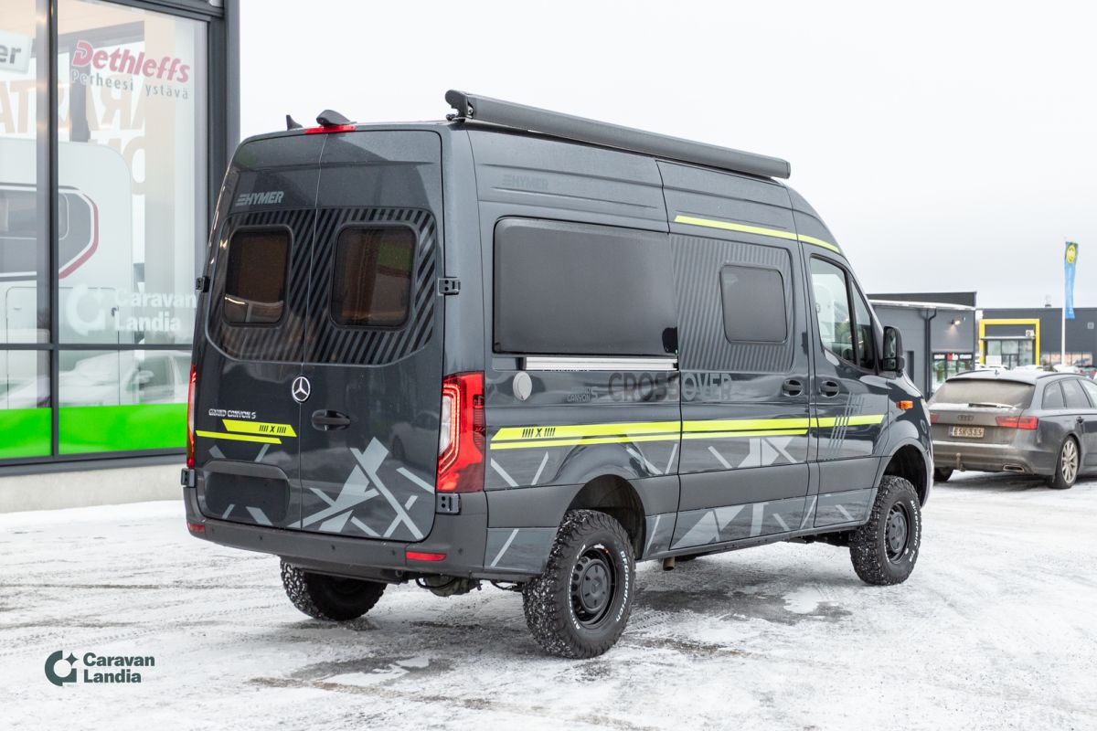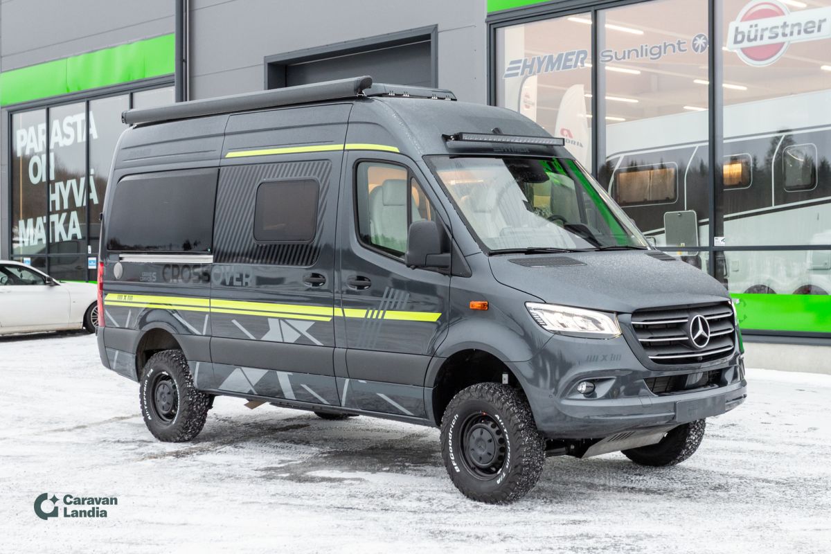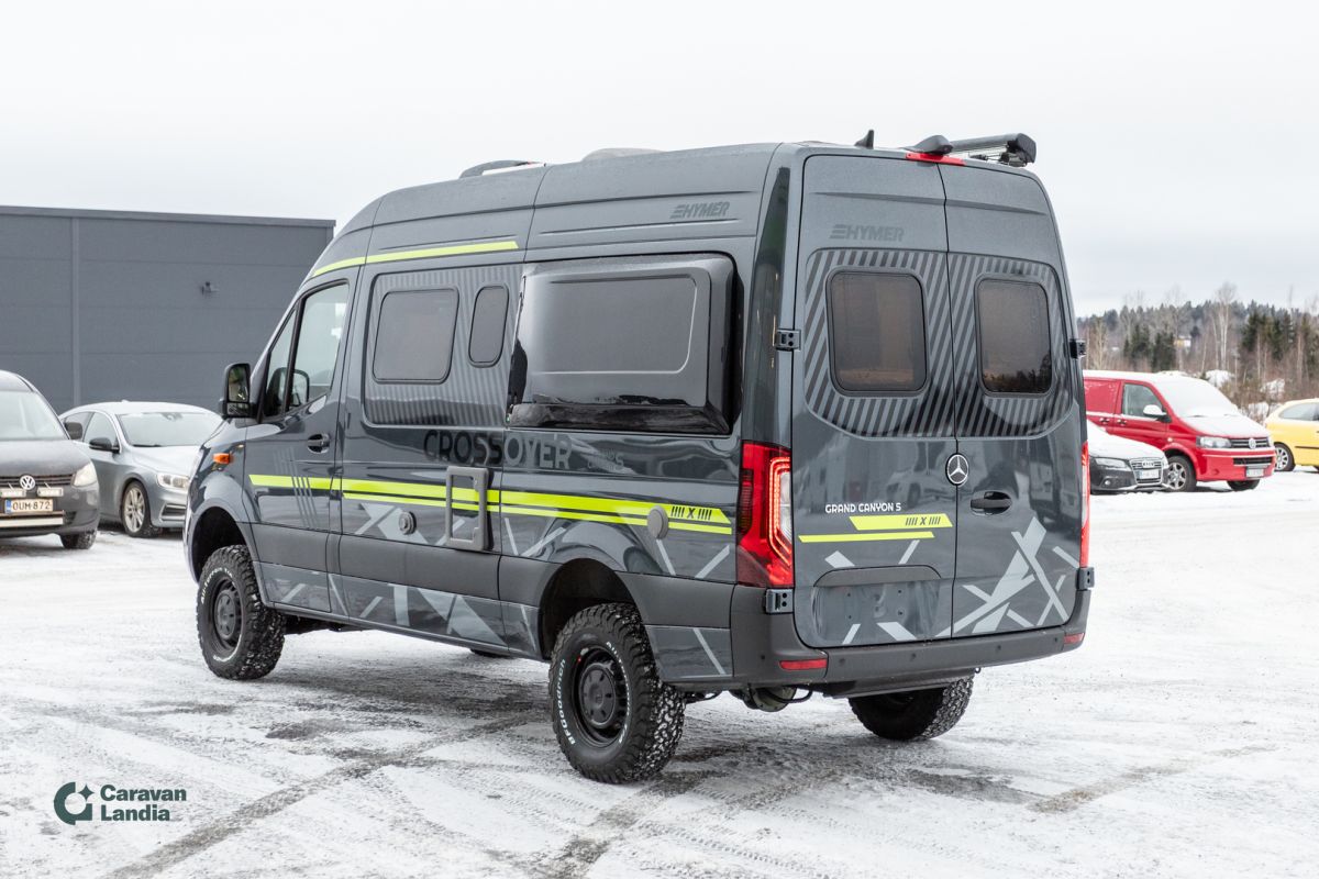Nelivetoinen Grand Canyon S CrossOver – 190 hv automaatti, täysvarusteltu ja ympärivuotiseen seikkailuun ilman kompromisseja. AJO & ALUSTA Mercedes-Benz Sprinter 419 CDI 190 hv, 9G-TRONIC -automaatti Jatkuva neliveto Kokonaismassa 4 100 kg ULKONÄKÖ & ULKOVARUSTEET Tenoriitinharmaa metalliohjaamo + CrossOver-erikoisteippaukset LED-ajovalot ja sumuvalot kääntymisvalolla 44” LED-lisävalopaneeli 16” All-Terrain -renkaat Moottorin alasuoja Sähköinen sisäänvedettävä Offroad-askelma KULJETTAJAN MUKAVUUS & INFOTAINMENT THERMOTRONIC täysautomaatti-ilmastointi Lämmitettävä tuulilasi Nahkainen monitoimiratti MBUX-navigointi ja älypuhelinintegraatio Langaton puhelinlataus + USB-C / 12 V latauspisteet Parkkipaketti 360° kameralla TURVA- JA AJOAVUSTIMET Aktiivinen etäisyysavustin (DISTRONIC+) Kuolleen kulman varoitin Kaukovaloavustin Liikennemerkkiavustin ASUINOSAN MUKAVUUS Ympäröivä tunnelmavalaistus Takavuoteisiin mittatilauslakanat “HOME”-sisustuspaketti (2 tyynyä + kangastasku) Suihkualtaan korkkipintainen suojus Toinen WC-kasetti telineellä 2 taittotuolia + pöytä Työkalusetti (lapio ja kirves) LÄMMITYS & OMAVARAISUUS 6 kW diesel-lämmitys + 10 l boileri + 1 800 W sähkövastus HYMER Smart Battery 2.0 (3 × 80 Ah LFP) Vedensuodatin raikasvesijärjestelmään TALVIPAKETTI Istuinlämmitys ja ristiseläntuki Ohjauspyörän lämmitys Lämpöeristetty ohjaamo Wet Wiper -järjestelmä SISUSTUS Kalustesävy: Ivy Green Verhoilu: Indiana (kangas), Alv-vähennyskelpoinen