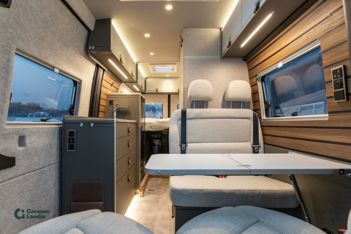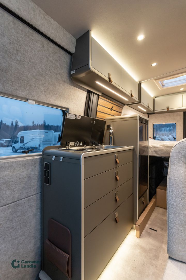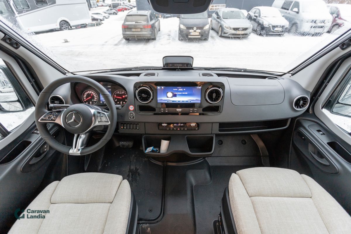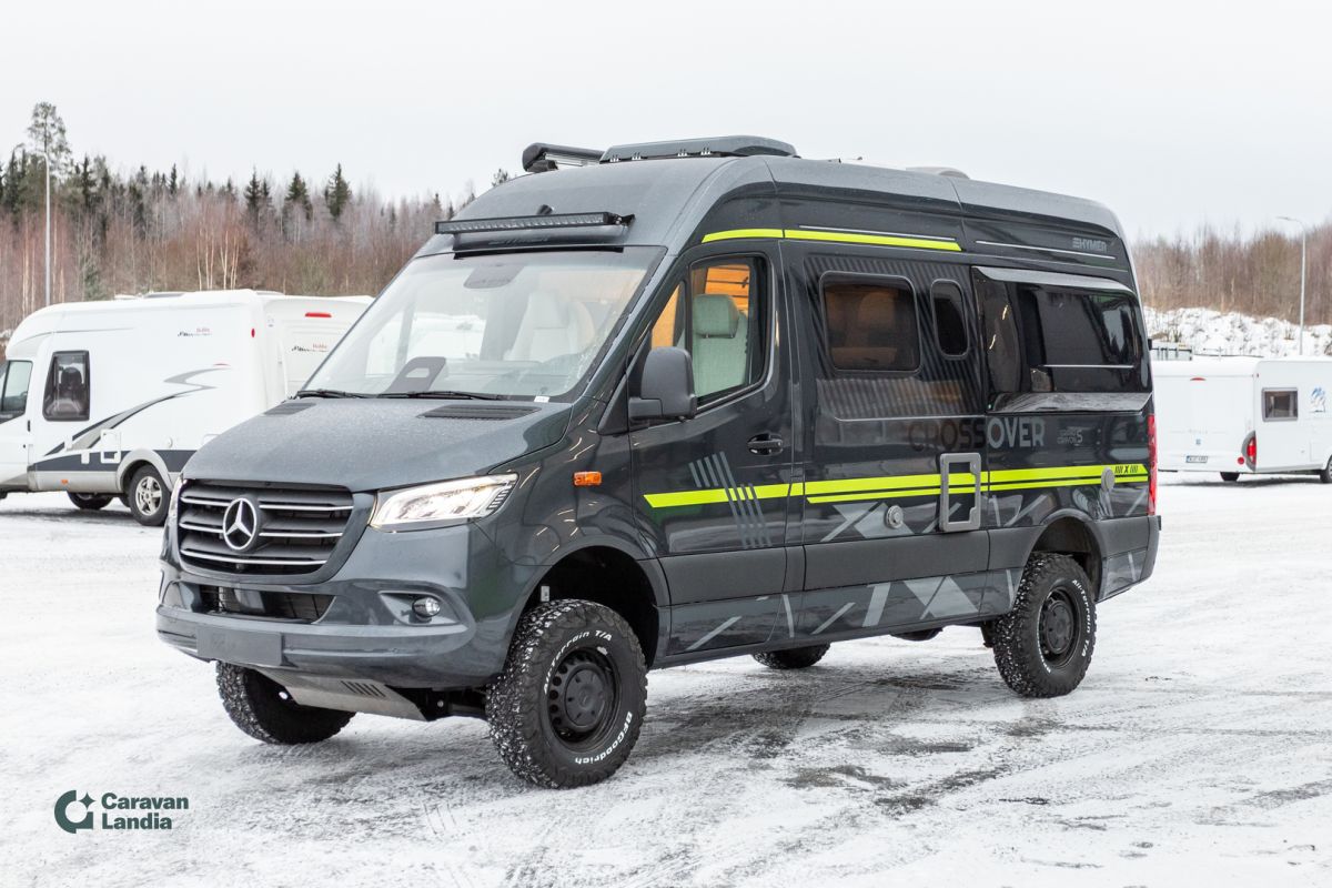 Nelivetoinen Grand Canyon S CrossOver – 190 hv automaatti, täysvarusteltu ja ympärivuotiseen seikkailuun ilman kompromisseja. AJO & ALUSTA Mercedes-Benz Sprinter 419 CDI 190 hv, 9G-TRONIC -automaatti Jatkuva neliveto Kokonaismassa 4 100 kg ULKONÄKÖ & ULKOVARUSTEET Tenoriitinharmaa metalliohjaamo + CrossOver-erikoisteippaukset LED-ajovalot ja sumuvalot kääntymisvalolla 44” LED-lisävalopaneeli 16” All-Terrain -renkaat Moottorin alasuoja Sähköinen sisäänvedettävä Offroad-askelma KULJETTAJAN MUKAVUUS & INFOTAINMENT THERMOTRONIC täysautomaatti-ilmastointi Lämmitettävä tuulilasi Nahkainen monitoimiratti MBUX-navigointi ja älypuhelinintegraatio Langaton puhelinlataus + USB-C / 12 V latauspisteet Parkkipaketti 360° kameralla TURVA- JA AJOAVUSTIMET Aktiivinen etäisyysavustin (DISTRONIC+) Kuolleen kulman varoitin Kaukovaloavustin Liikennemerkkiavustin ASUINOSAN MUKAVUUS Ympäröivä tunnelmavalaistus Takavuoteisiin mittatilauslakanat “HOME”-sisustuspaketti (2 tyynyä + kangastasku) Suihkualtaan korkkipintainen suojus Toinen WC-kasetti telineellä 2 taittotuolia + pöytä Työkalusetti (lapio ja kirves) LÄMMITYS & OMAVARAISUUS 6 kW diesel-lämmitys + 10 l boileri + 1 800 W sähkövastus HYMER Smart Battery 2.0 (3 × 80 Ah LFP) Vedensuodatin raikasvesijärjestelmään TALVIPAKETTI Istuinlämmitys ja ristiseläntuki Ohjauspyörän lämmitys Lämpöeristetty ohjaamo Wet Wiper -järjestelmä SISUSTUS Kalustesävy: Ivy Green Verhoilu: Indiana (kangas), Alv-vähennyskelpoinen