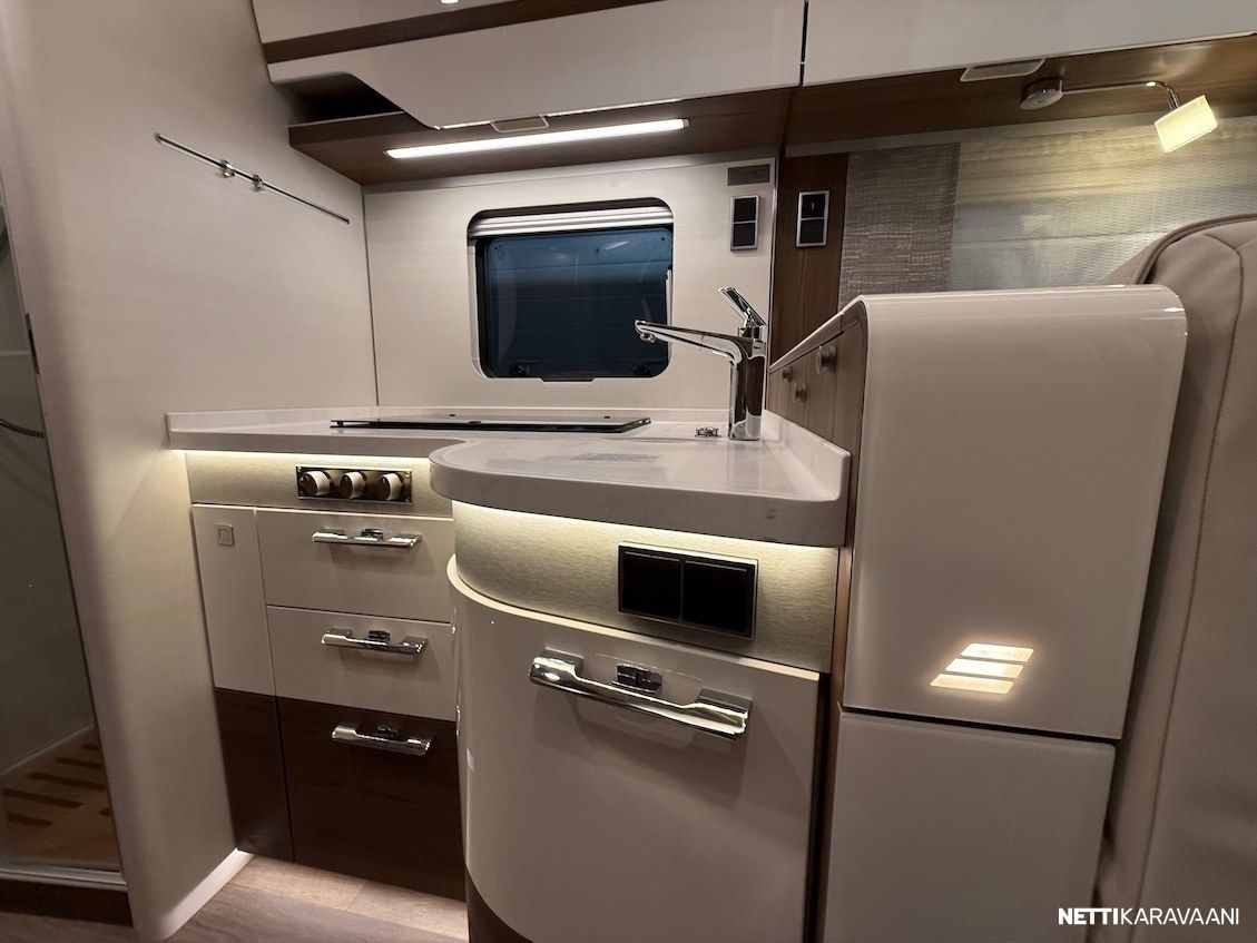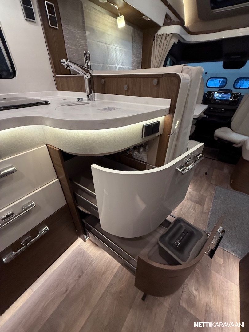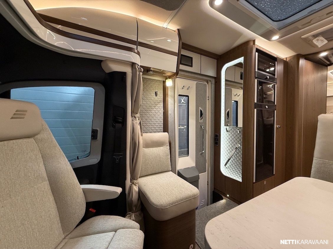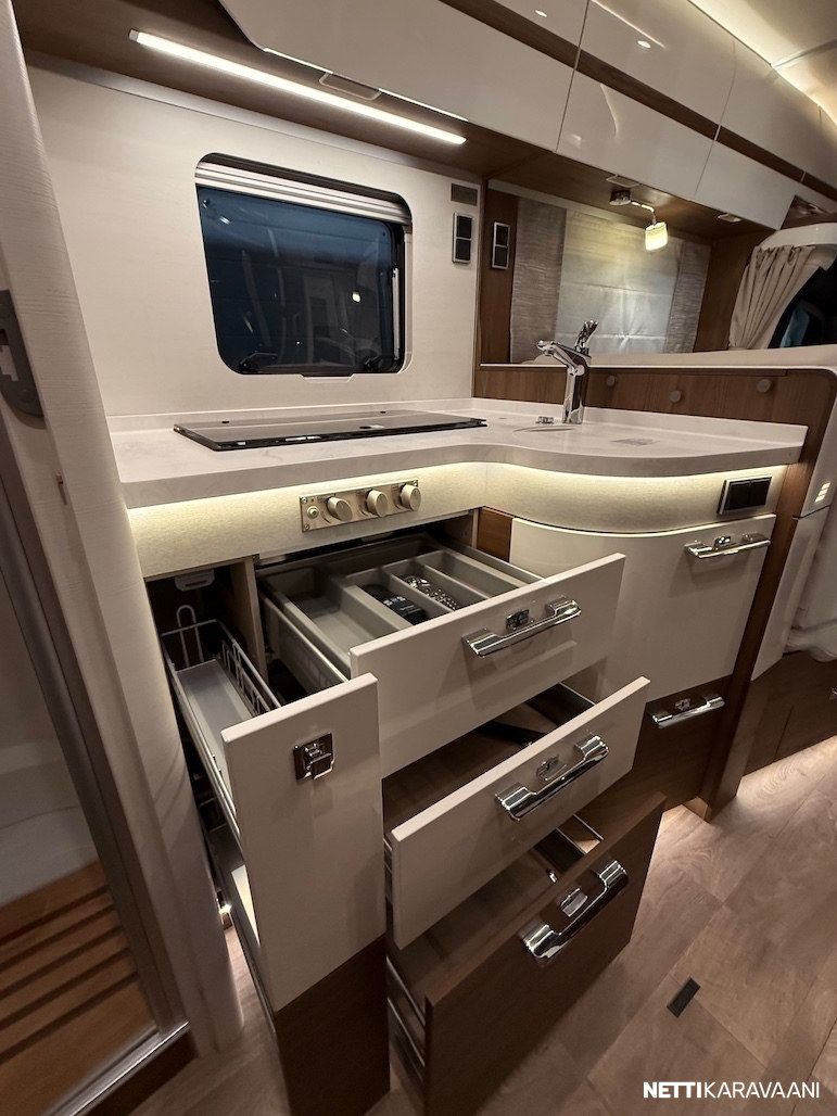 Ajotietokone, Jääkaappi, Kaasu-uuni, Kasetti WC, Kasettiverhot, Keskuslukitus: Kaukosäätöinen, Lattiamatot asunto-osassa, Liesi, Lämminvesiboileri, Markiisi, Navigaattori, Ohjaustehostin, Pakastelokero, Penkinlämmittimet, Pesuallas, Pysäköintikamera, Suihku, Sähkökäyttöiset ikkunat, Sähköpeilit, TV-antenni tai lautasantenni, Vakionopeudensäädin, ABS-jarrut, Airbag, Ajonvakautusjärjestelmä, Luistonesto, Sumuvalot, Alde, Erikoisvanteet, Eristetty harmaavesisäiliö, Kattoluukku, Lattialämmitys, Polttoainekäyttöinen lisälämmitin, Sähköpatruuna, Sähkörappu, Tuplapohja, Turbo