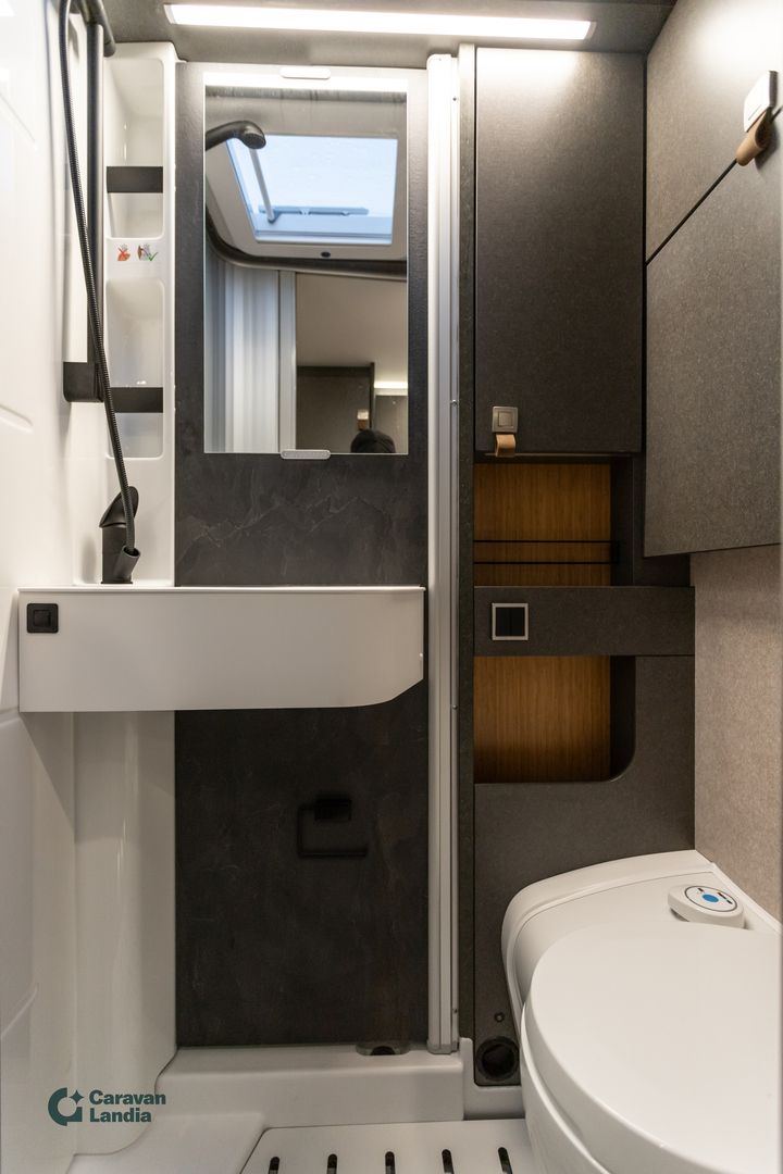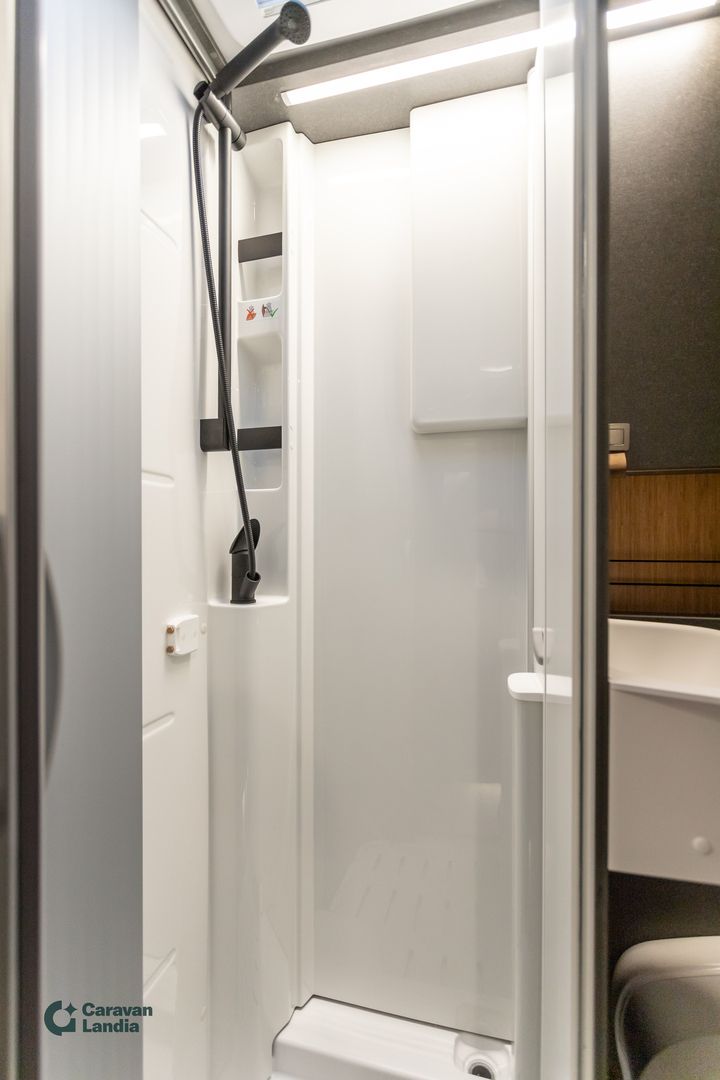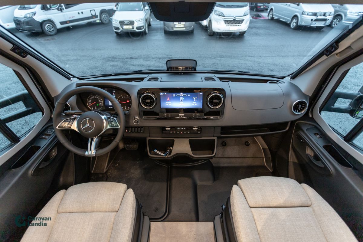 Täyteen varusteltu Hymer CrossOver ympärivuotiseen käyttöön! HYMER ML-T – CrossOver -varustelu Perustiedot Mercedes-Benz Sprinter 4,1 t – 419 CDI – 190 hv Neliveto, jatkuva ja mukautuva voimanjako Automaattivaihteisto 9G-TRONIC (Hold-toiminnolla) Ohjaamon tenoriitinharmaa metalliväri Hopeanvärinen metallikori Ulkonäkö & ulkovarusteet Kromattu jäähdyttimen ritilä Ajoneuvon väriset puskurit ja kehykset Crossover-erikoisteippaukset Lämmitettävä tuulilasi 44” LED-lisävalopaneeli ohjaamon yllä Korkeatehoiset LED-ajovalot Sumuvalot kääntymisvalolla Kattokaiteet ja takatikkaat Markiisi LED-himmennettävällä valaistuksella (400 × 250 cm) Moottorin alasuoja Etupyöränkaarien jatkeet Komfort-ulko-ovi ikkunalla, pimennyksellä ja roskakorilla Ulkosuihku tallissa 16” mustat peltivanteet + All-Terrain -renkaat Tekniikka & avustinjärjestelmät Satelliittinavigointi ja älypuhelinintegraatio Mercedes-Benz MBUX:iin Kojetaulun latauspaketti (USB-C + 12 V) Langattomalla latauksella varustettu älypuhelintaso Täysautomaattinen THERMOTRONIC-ilmastointi Aktiivinen etäisyysavustin DISTRONIC+ Kaukovaloavustin Liikennemerkkiavustin Diesel-lämminilmalämmitys 6 kW + 10 L lämminvesiboileri + 1800 W sähkövastus Wet Wiper -järjestelmä (sisältyy talvipakettiin) Tallin ja sisätilojen käytännöllisyys Takatallissa turkkipeltilattia ja huopaverhoilu Työkalusetti (taittuva lapio ja kirves) Toinen WC-kasetti ja teline 3 × 230 V + 1 × 12 V lisäpistorasiat Vedensuodatin raikasvesijärjestelmään Asuintila & mukavuus Oleskelutila Mukava L-istuinryhmä Lounge-pehmustein Pöytä liikuteltavissa pitkittäin ja poikittain 2 integroitua 3-pistevyötä Vuoteentekomahdollisuus (lisäpehmusteet ja laskeutuva pöytä) Makuutila Komfort-vuodejärjestelmä: lautasjouset + monivyöhykepatjat Mittatilauksena tehdyt lakanat Lisäpatja erillisvuoteiden väliin + integroitu porras Valaistus Tunnelmavalaistus Valaistuspaketti (riippuvalaisin + lukuvalo) 4 koristetyynyä Omavaraisuus & sähköjärjestelmä HYMER Smart-Battery 2.0 (3 × 80 Ah LFP) Aurinkopaneelit: 2 × 95 W MPPT-säätimellä 1800 W invertteri (automaattinen verkkovirran priorisointi) Talvipaketti (sisältää) Istuinlämmitys + ristiseläntuki Ohjauspyörän lämmitys Lämpöeristetty ohjaamo Sähköinen lämminilmapuhallus Wet Wiper -järjestelmä Sisustus Kalustesävy: Native Bamboo Verhoilu: Kangasyhdistelmä Indiana, Alv-vähennyskelpoinen