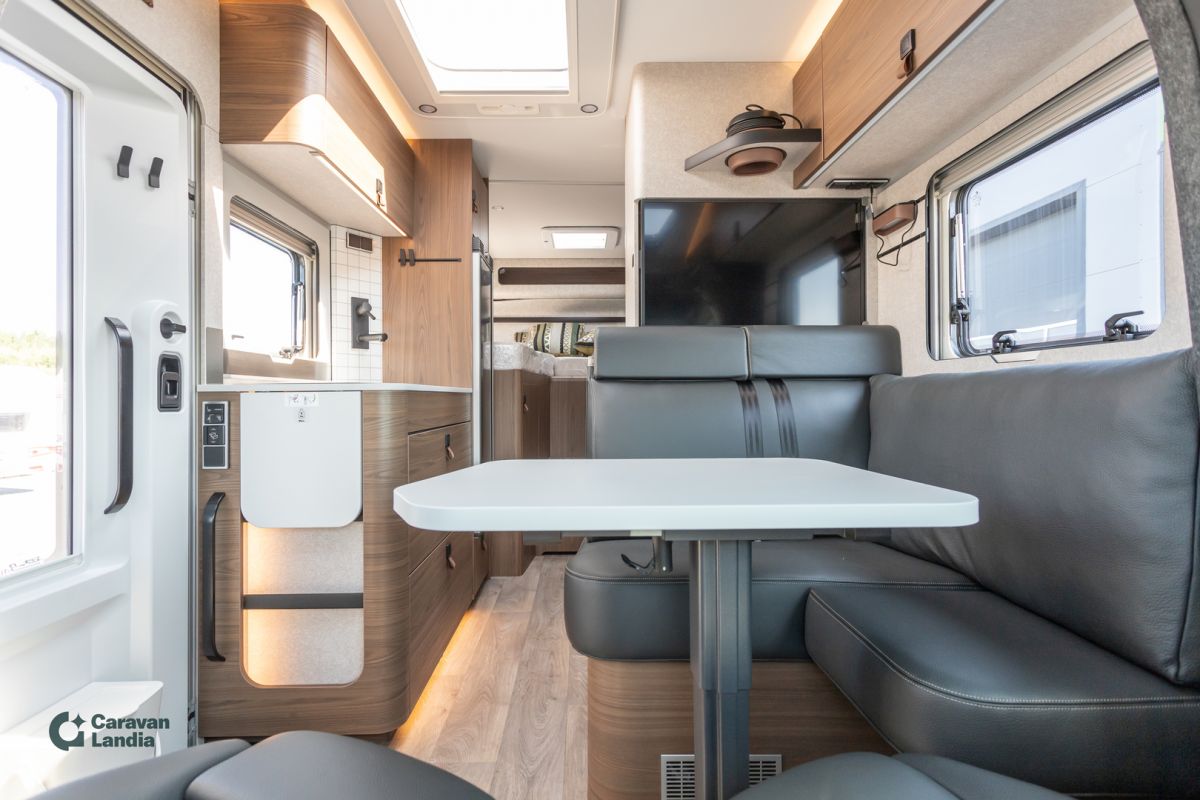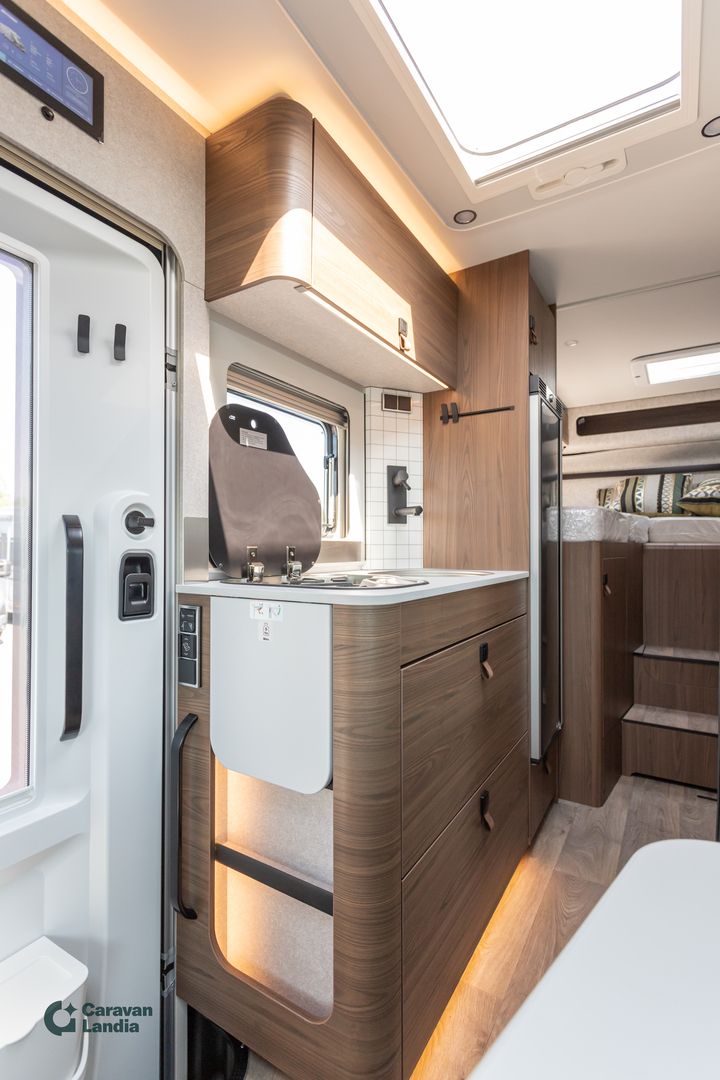 Huipputyylikäs Hymer miellyttävin varustein heti toimitukseen. Varustelinja Plus Automaattivaihteisto 9G-TRONIC Hold-toiminnolla Vahvistettu etuakseli Lämpöä eristävä lasi tummennusnauhalla Akustiikkapaketti Mercedes-Benz Sähköinen pysäköintijarru Puoliautomaattinen ilmastointi TEMPMATIC Mittaristo värinäytöllä Nahkainen ohjauspyörä ja monitoimiratti Vakionopeudensäädin Aktiivinen etäisyysvaroitin DISTRONIC+ Aktiivinen kaistavahti ja huomioavustin Sadetunnistin Liikennemerkkiavustin DAB-radio Satelliittinavigointi ja älypuhelinintegraatio (MBUX) 10,25” MBUX-järjestelmä: peruutuskamera, puheentunnistus, kosketusnäyttö Asumismukavuuspaketti Lautasjouset takavuoteissa Mittatilauslakanat takavuoteisiin Huopaverhoilu takatallissa Irrotettava suihkualtaan suojaosa tasaiselle lattialle 4 koristetyynyä Ympäröivä monitasoinen valaistusjärjestelmä, säätö valon lämpötilalla Valaistuspaketti (riippuvalaisin ja lukuvalo) Useita pistorasioita (230V / 12V) Talvipaketti Istuinlämmitys ja ristiseläntuki etuistuimiin Sähköinen lämminilmapuhallus Wet Wiper -järjestelmä Ohjauspyörän lämmitys Lämpöeristetty ohjaamo Style-paketti Kromattu jäähdyttimen ritilä Puskurin ja ritilän kehys ajoneuvon värisenä Sumuvalot kääntymisvalolla Alusta ja ulkovärit Mercedes-Benz Sprinter 3,5 t - 419 CDI - 190 hv - Euro VI-E Kokonaismassan korotus 4.100 kg Ohjaamon väri: tenoriitinharmaa metalli Korin väri: hopea metalli Renkaat ja vanteet 16" mustat peltivanteet Maastorenkaat (All-Terrain) Lisävarusteet Neliveto mukautuvalla voimanjaolla Kaukovaloavustin Alamäkiavustin (Offroad-tekniikka) 16" maastokuvioinen vararengas takaseinätelineellä Moottorin ja vesisäiliön alasuoja Kattokaiteet, tikkaat ja turkkipeltikatto Turvalukko asunto-osan oveen Komfort-ulko-ovi ikkunalla, pimennysverholla ja roskakorilla Jatkettu alusta Ulkosuihku takatallissa Sisätila, makuu- ja oleskelutilat Lisäpatja erillisvuoteiden väliin ja porras L-istuinryhmä Lounge-pehmustein, liikkuva pöytä, 2 x 3-pistevyö Vuoteentekomahdollisuus L-istuinryhmästä Valaistuspaketti Takavuoteiden varusteet kuten lautasjouset ja mittatilauslakanat Ympäröivä valaistusjärjestelmä 4 koristetyynyä Pesutilat Irrotettava suoja suihkualtaaseen Tekniikka ja kiinteät varusteet 1800 W sähkövastus kiertoilmalämmittimeen Pistorasiat (230V ja 12V) Kaasun ulosotto sulkuhanalla Multimedia 32" TV-teline MBUX-järjestelmä navigoinnilla ja älypuhelinintegraatiolla Sisustus Kalustesävy: Velvet Ash Nahkaverhoilu: Grigio Mattosarja Laguna, Alv-vähennyskelpoinen