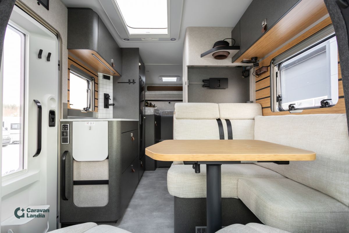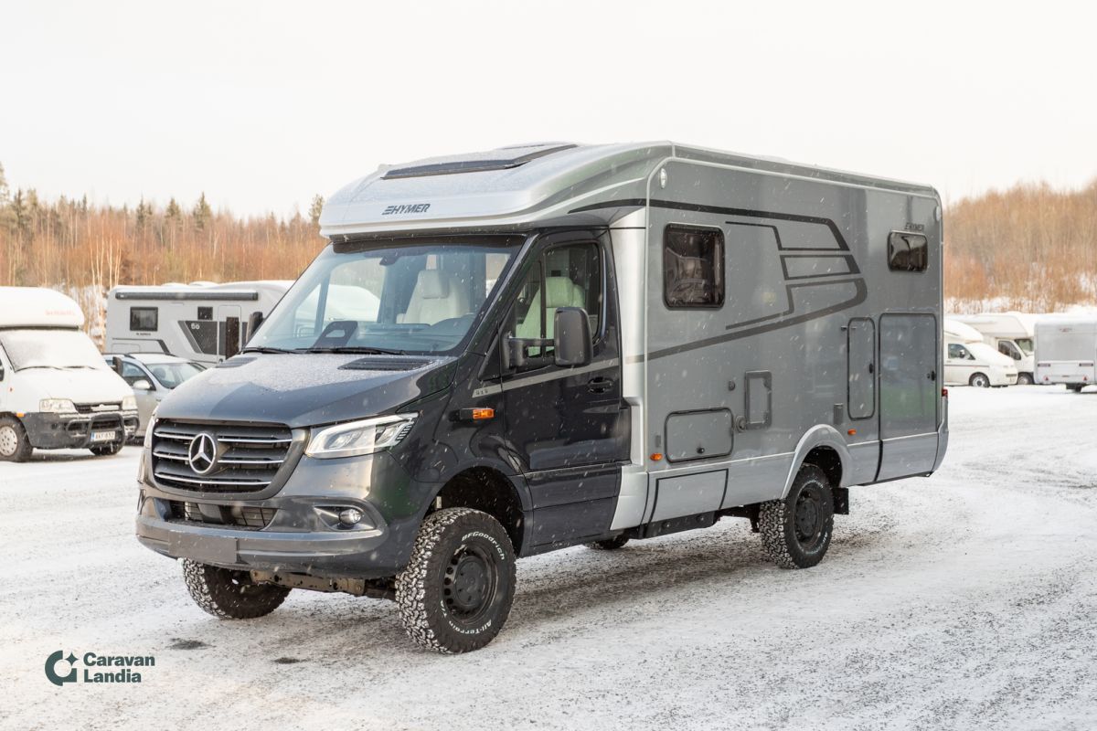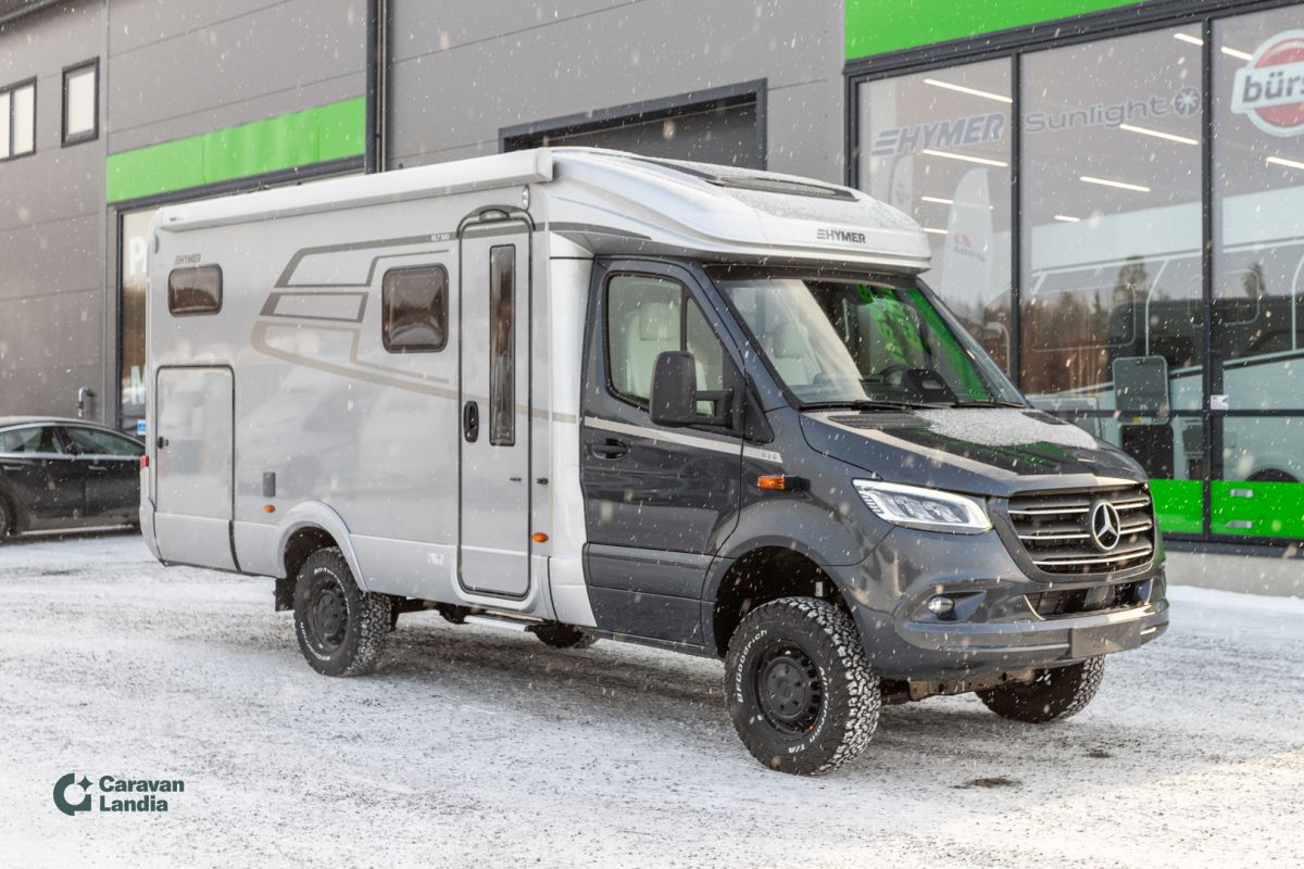 Upea, asiakkaidemme suosikki jo pitkään! Nelivetoinen Hymer, joka palvelee sinua kaupunki reiteistä aina vuoristoille saakka! TULOSSA PIAN Ajoneuvo & ajo-ominaisuudet Automaattivaihteisto 9G-TRONIC (Hold-toiminto) Korkeatehoiset LED-ajovalot Vahvistettu etuakseli Lämpöä eristävä lasi, tuulilasin tummennusnauha Sähköinen pysäköintijarru DAB-radio 10,25” MBUX-multimediajärjestelmä peruutuskameralla, puheentunnistuksella ja kosketusnäytöllä Satelliittinavigointi & älypuhelinintegraatio MBUX:iin Vakionopeudensäädin Monitoimiratti Mercedes-Benzin mittaristo värinäytöllä Akustiikkapaketti Mercedes-Benz Alamäkiavustin Wet Wiper -järjestelmä Sadetunnistin Turvavarusteet & kuljettajan avustimet DISTRONIC+ aktiivinen etäisyysavustin Aktiivinen kaistavahti Huomioavustin Liikennemerkkiavustin Mukavuus Täysautomaattinen THERMOTRONIC-ilmastointi Älypuhelimelle langaton lataustaso Kojetaulun latauspaketti (USB-C + 12V) Nahkainen ohjauspyörä (automaattivaihteiseen) Asumismukavuuspaketti Makuutila Lautasjousitetut takavuoteet Mittatilauslakanat takavuoteisiin Lisäpatja erillisvuoteiden väliin + integroitu porras Sisätila & valaistus Ympäröivä monitasoinen valaistusjärjestelmä Valaistuspaketti (riippuvalaisin + lukuvalo) 4 koristetyynyä Lisäpistorasiat: 3 × 230 V + 1 × 12 V Tavaratila & pesutila Takatallin huopaverhoilu Suihkualtaan tasoittava irrotettava suoja Vapaana-paketti – Litium XL Sähköjärjestelmä HYMER Smart-Battery 2.0 – laajennus: Toinen LFP-akku (yht. 160 Ah) ja 4. LFP-akut (kokonaiskapasiteetti 320 Ah) Invertteri 12 V / 230 V, 1800 W (automaattinen verkkovirran priorisointi) Talvipaketti Lämmitys & ergonomia Istuinlämmitys + ristiseläntuki Ohjauspyörän lämmitys Sähköinen lämminilmapuhallus Lämpöeristetty ohjaamo Wet Wiper -järjestelmä Style-paketti Ulkonäkö Kromattu jäähdyttimen ritilä Ajoneuvon väriset puskurit ja kehykset Sumuvalot kääntymisvalolla Ulkovärit & kori Ohjaamon tenoriitinharmaa metalliväri Korin hopea metalliväri Komfort-ovi ikkunalla, pimennyksellä ja roskakorilla Markiisi LED-valaistuksella (hopea kotelo) Vanteet & renkaat 16” mustat peltivanteet All-Terrain -maastorenkaat Lisävarusteet & tekniikka Keskuslukitus (kuljettaja, asuinosa, talli) 1800 W sähkövastus lämmitysjärjestelmään HYMER Smart-Battery 2.0 -akuston laajennusmoduulit 32” TV-teline Sisustus Kalustesävy: Native Bamboo Verhoilu: Kangasyhdistelmä Indiana, Alv-vähennyskelpoinen