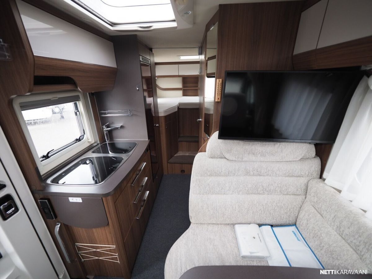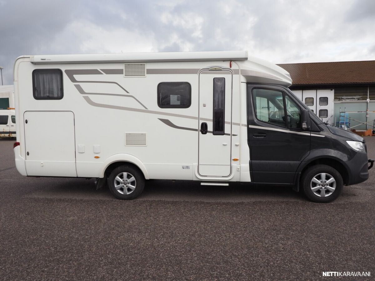 Ajotietokone, Jääkaappi, Kasetti WC, Kasettiverhot, Keskuslukitus: Kaukosäätöinen, Lattiamatot asunto-osassa, Liesi, Lämminvesiboileri, Markiisi, Navigaattori, Ohjaustehostin, Pakastelokero, Pesuallas, Pysäköintikamera, Suihku, Sähkökäyttöiset ikkunat, TV-antenni tai lautasantenni, Vakionopeudensäädin, ABS-jarrut, Airbag, Käynnistyksenesto, Aurinkopaneeli, Erikoisvanteet, Eristetty harmaavesisäiliö, Huoltokirja, Kattoluukku, Sähköpatruuna, Sähkörappu, Trumatic, Turbo, Vetokoukku
