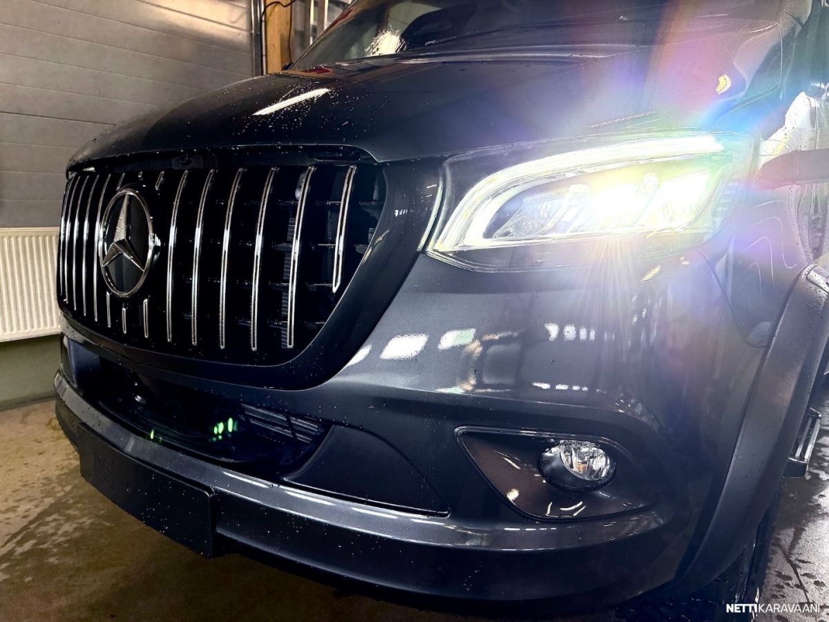 Autossa tehdasvarustelun lisäksi tyylikäs AMG -maski sekä mustat ohjaamon astinlaudat!