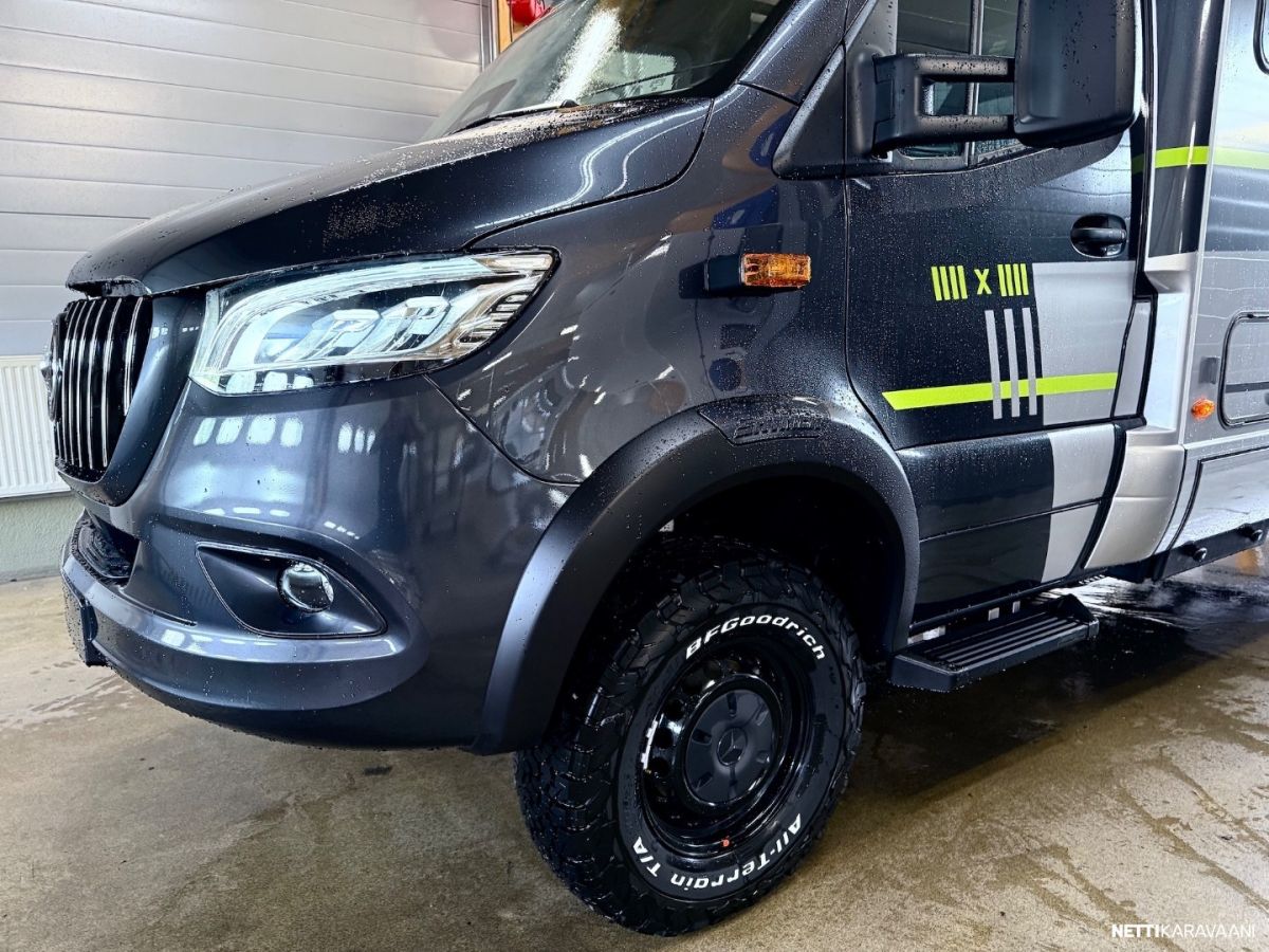 Nopeusrajoitus: 100 km/h Vaihteisto: Automaatti Polttoaine: Diesel Vetotapa: Neliveto Leveys: 222 cm Pituus: 689 cm Matkustajat: 4 Kokonaismassa: 4 100 kg Makuupaikat: 4 Ajokortti: C Lämmitys: Ilmakeskuslämmitys