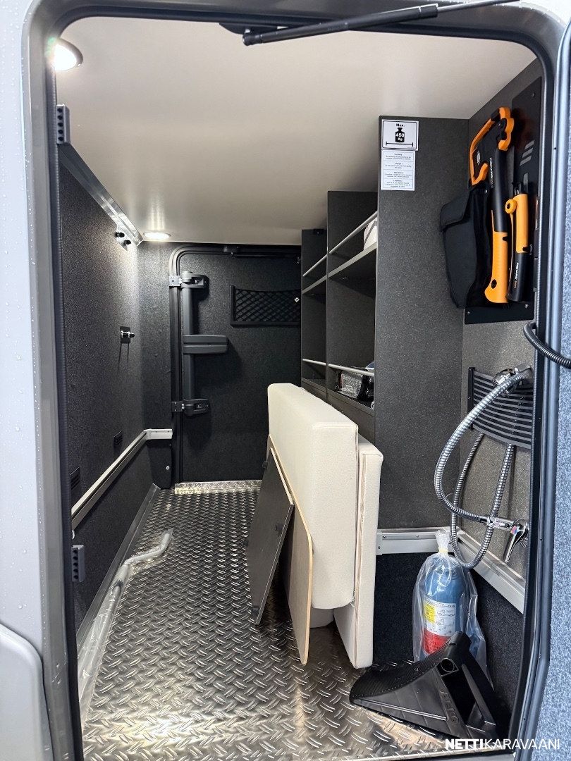 Ajotietokone, Jääkaappi, Kasetti WC, Kasettiverhot, Keskuslukitus: Kaukosäätöinen, Liesi, Lämminvesiboileri, Markiisi, Nahkasisusta, Navigaattori, Ohjaustehostin, Pakastelokero, Penkinlämmittimet, Pesuallas, Pysäköintikamera, Suihku, Sähkökäyttöiset ikkunat, Sähköpeilit, TV-antenni tai lautasantenni, Vakionopeudensäädin, ABS-jarrut, Airbag, Ajonvakautusjärjestelmä, Luistonesto, Sumuvalot, Aurinkopaneeli, Erikoisvanteet, Eristetty harmaavesisäiliö, Kattokaiteet/tikkaat, Kattoluukku, Sähköpatruuna, Sähkörappu, Trumatic, Turbo
