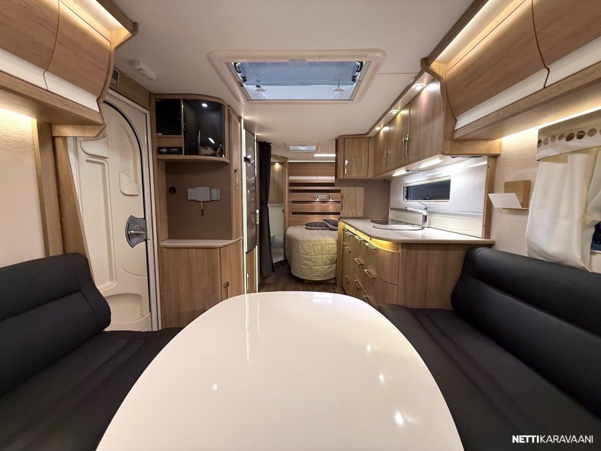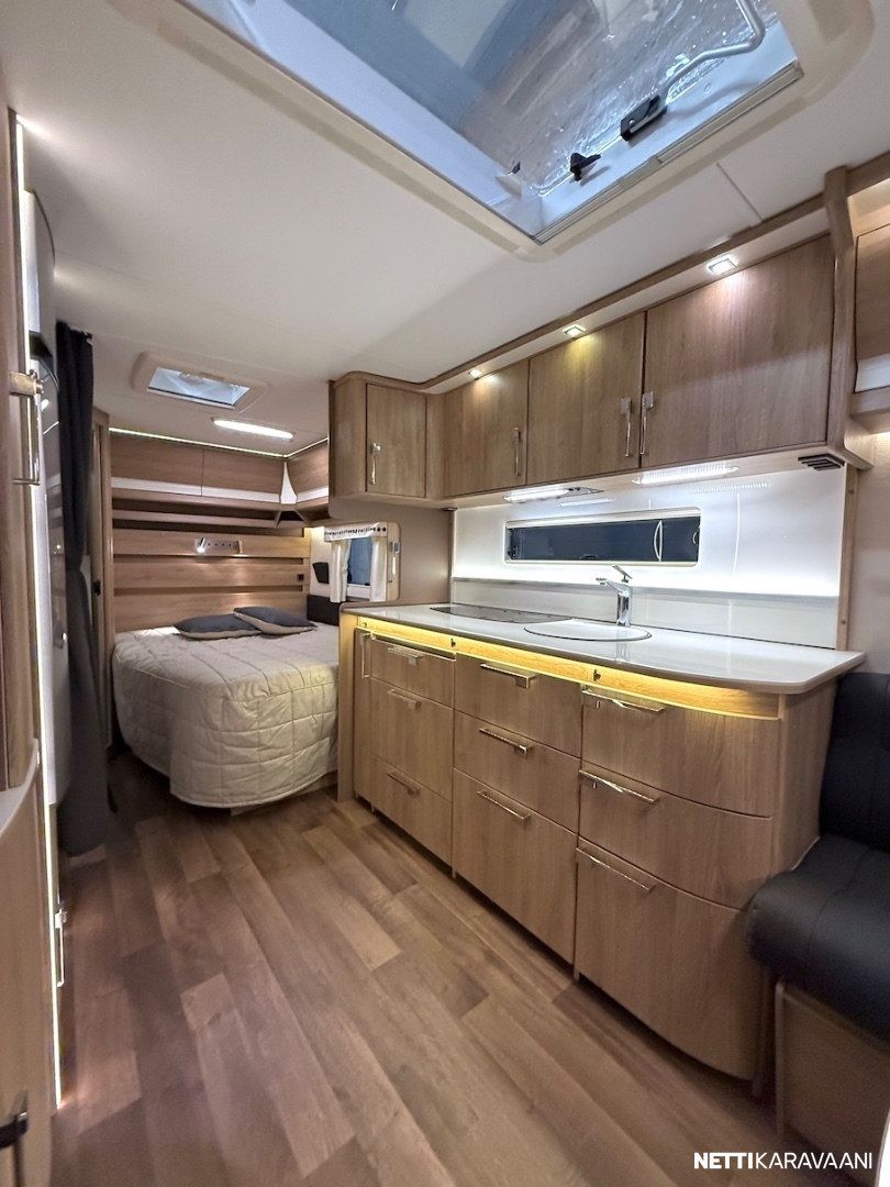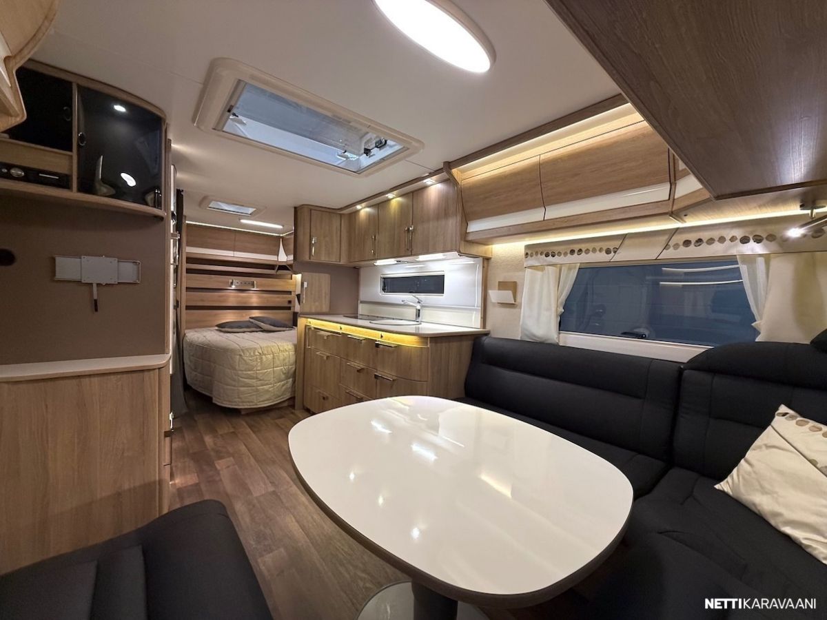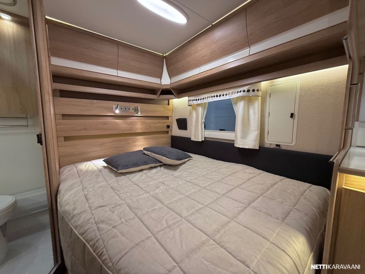 Alde -nestekeskuslämmitys, nestekiertoinen lattialämmitys, vesijärjestelmät sisällä lämpimässä, EcoPrim Foam -eristys, suuri jääkaappi erillisellä pakastimella, mikrouuni, suuri Heki -kattoikkuna, hyttysverkko-ovi, alumiinivanteet, kitkavetopää, liesituuletin, TV-antenni ja TV-teline, suksiboksi, kWh-mittari, radio ja kaiuttimet, LED-valaistus ja epäsuora tunnelmavalaistus.